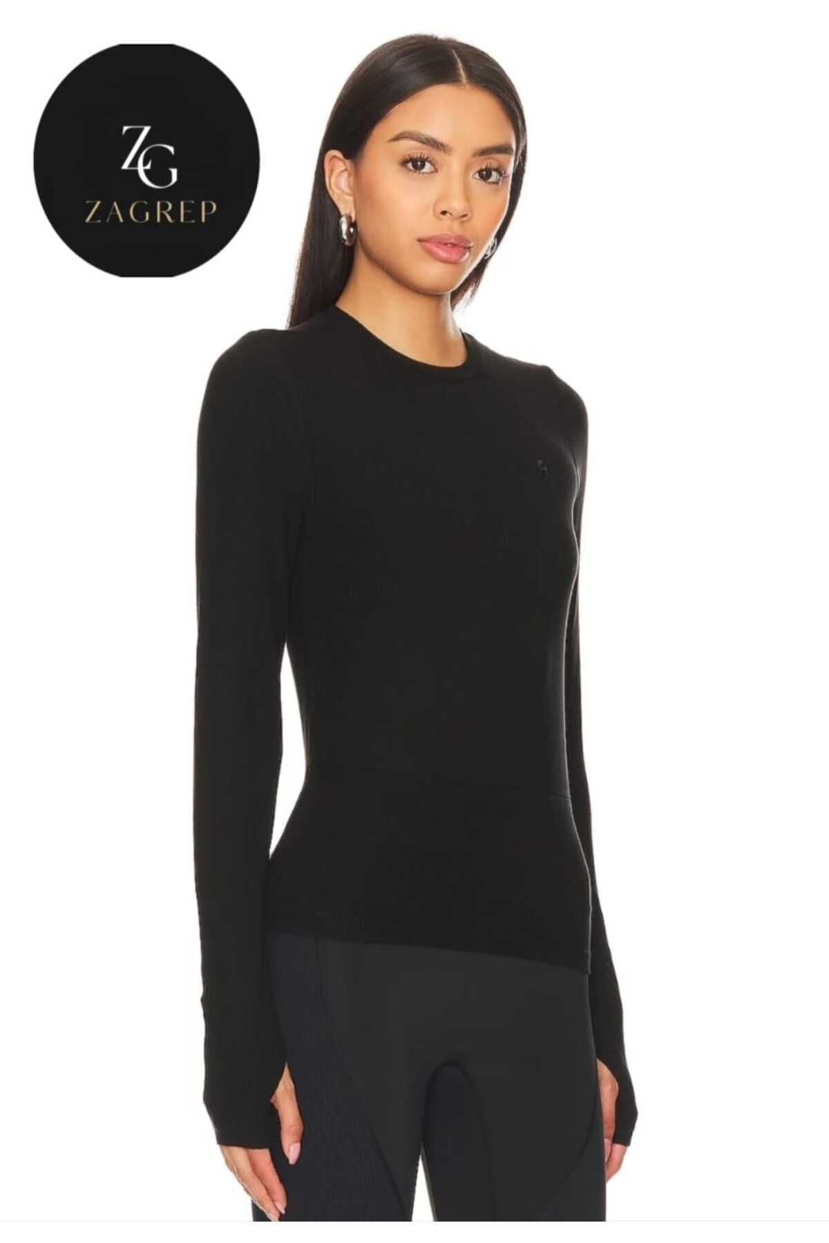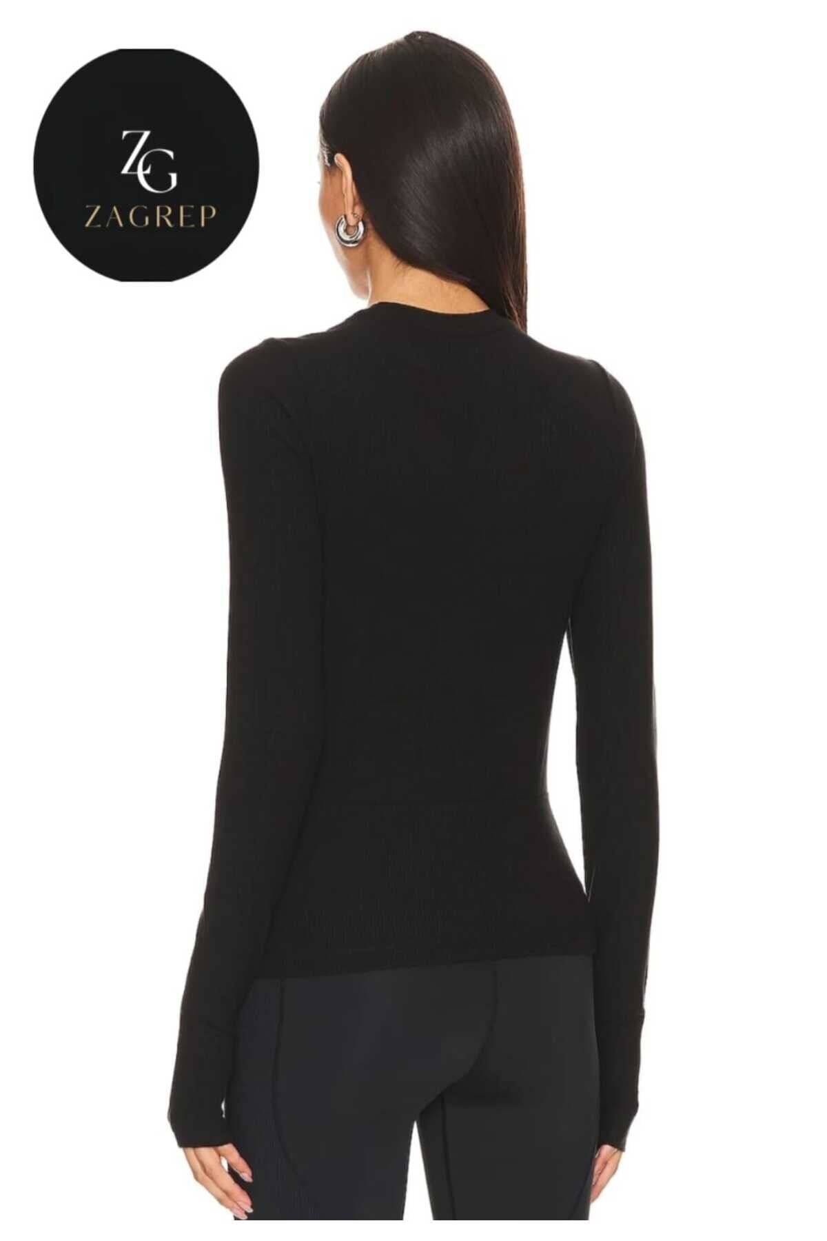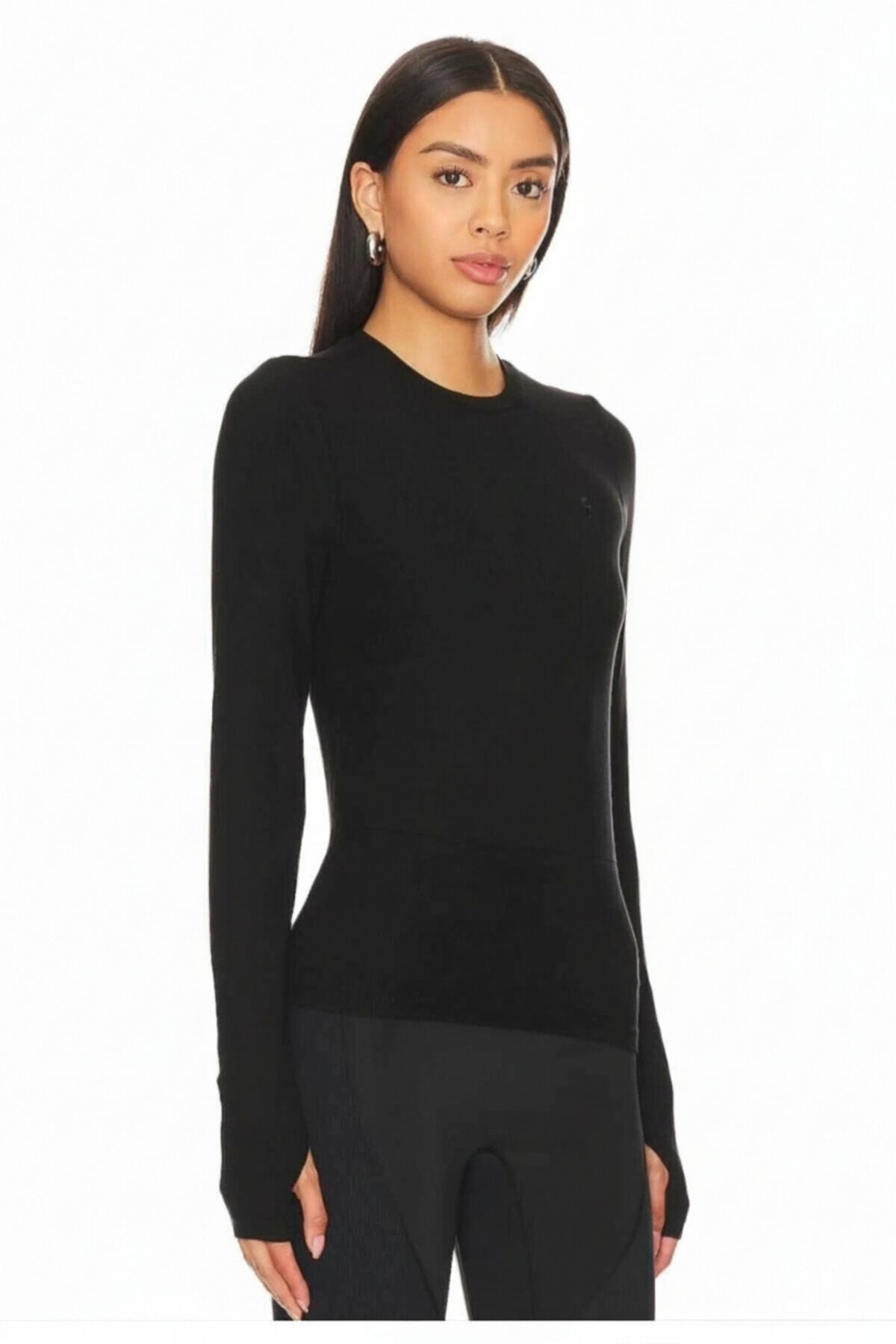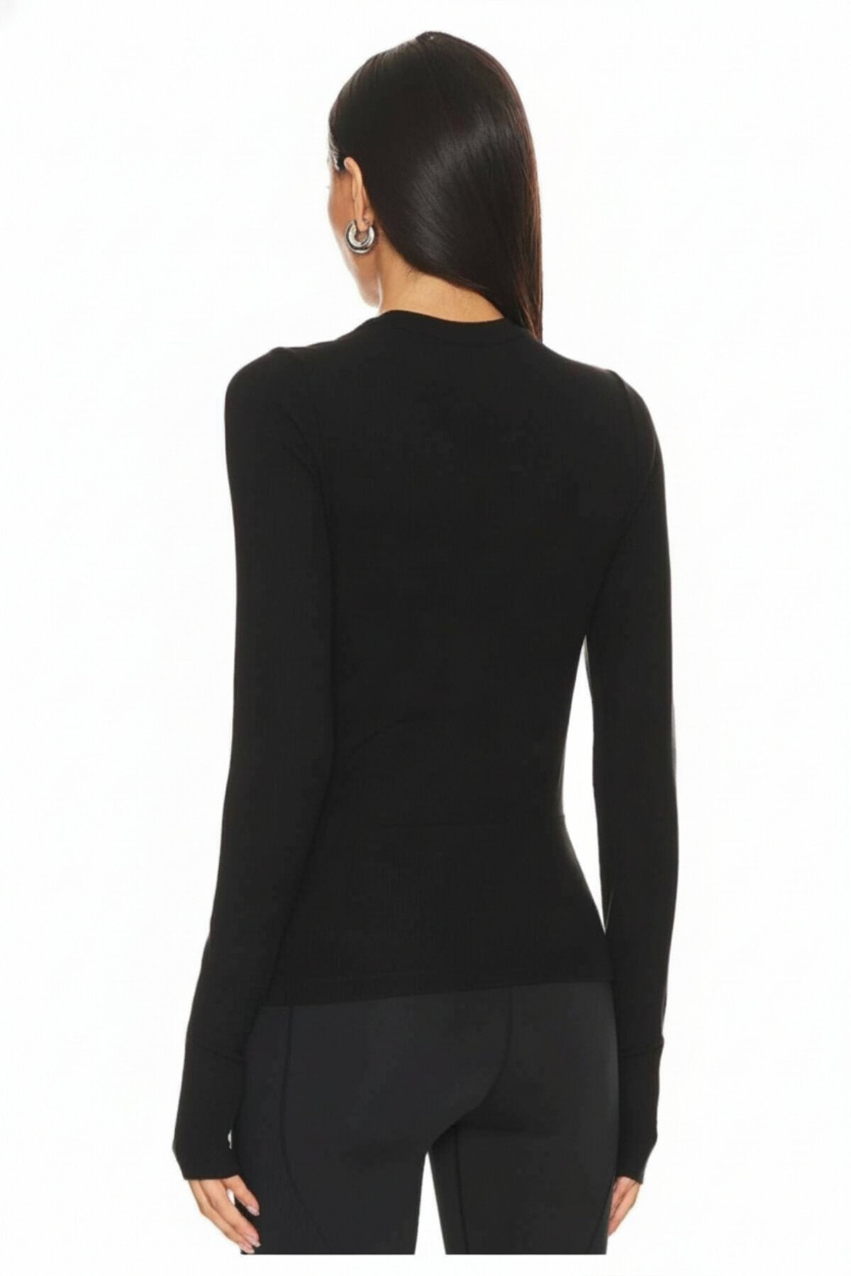 Double-Layered Thumbhole Crew Neck Crop Top - Black