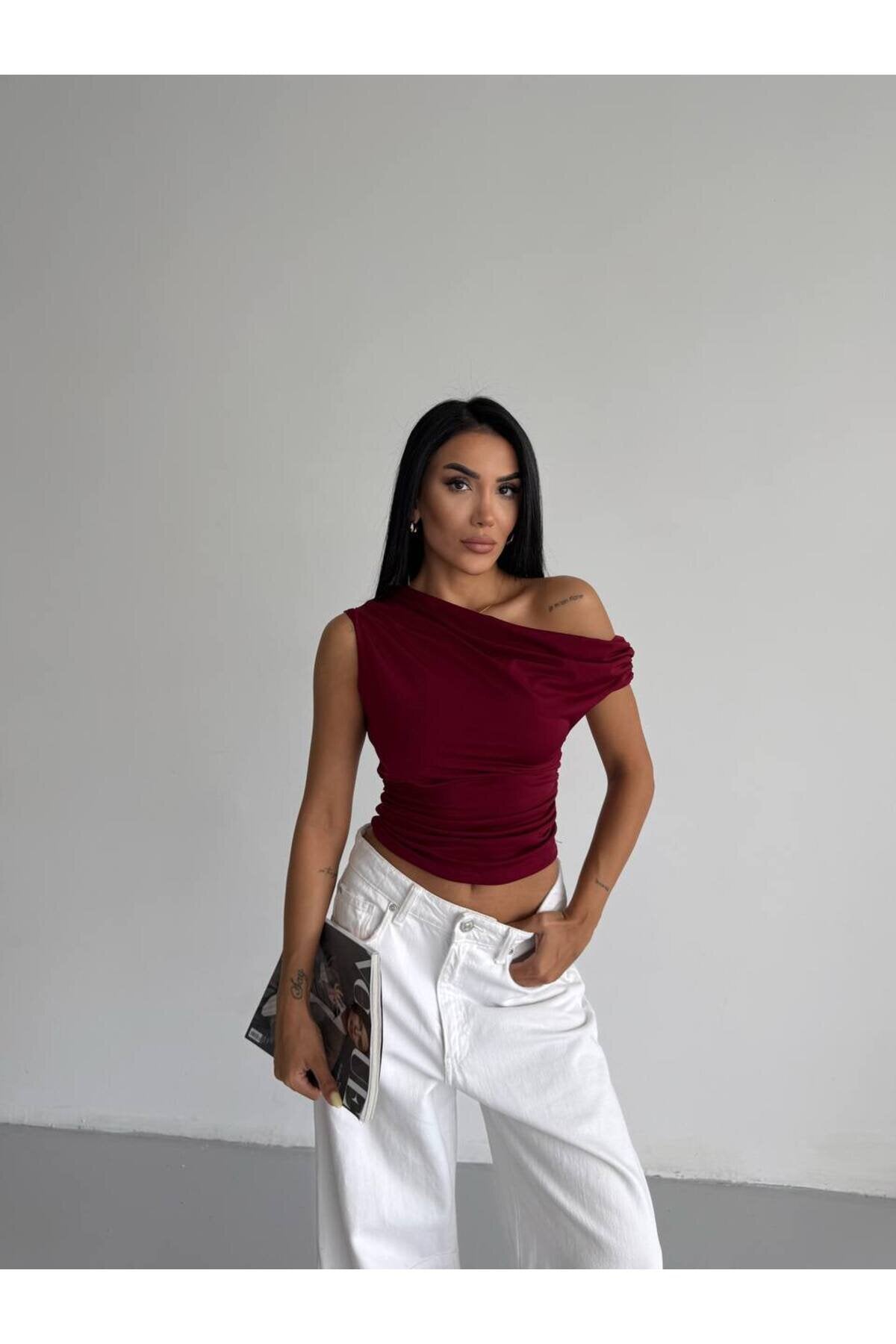 - A drop-shoulder crop blouse with a comfortable fit, ideal for daily wear.