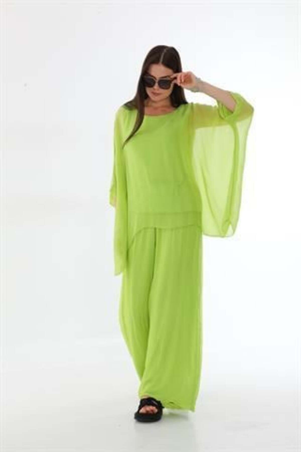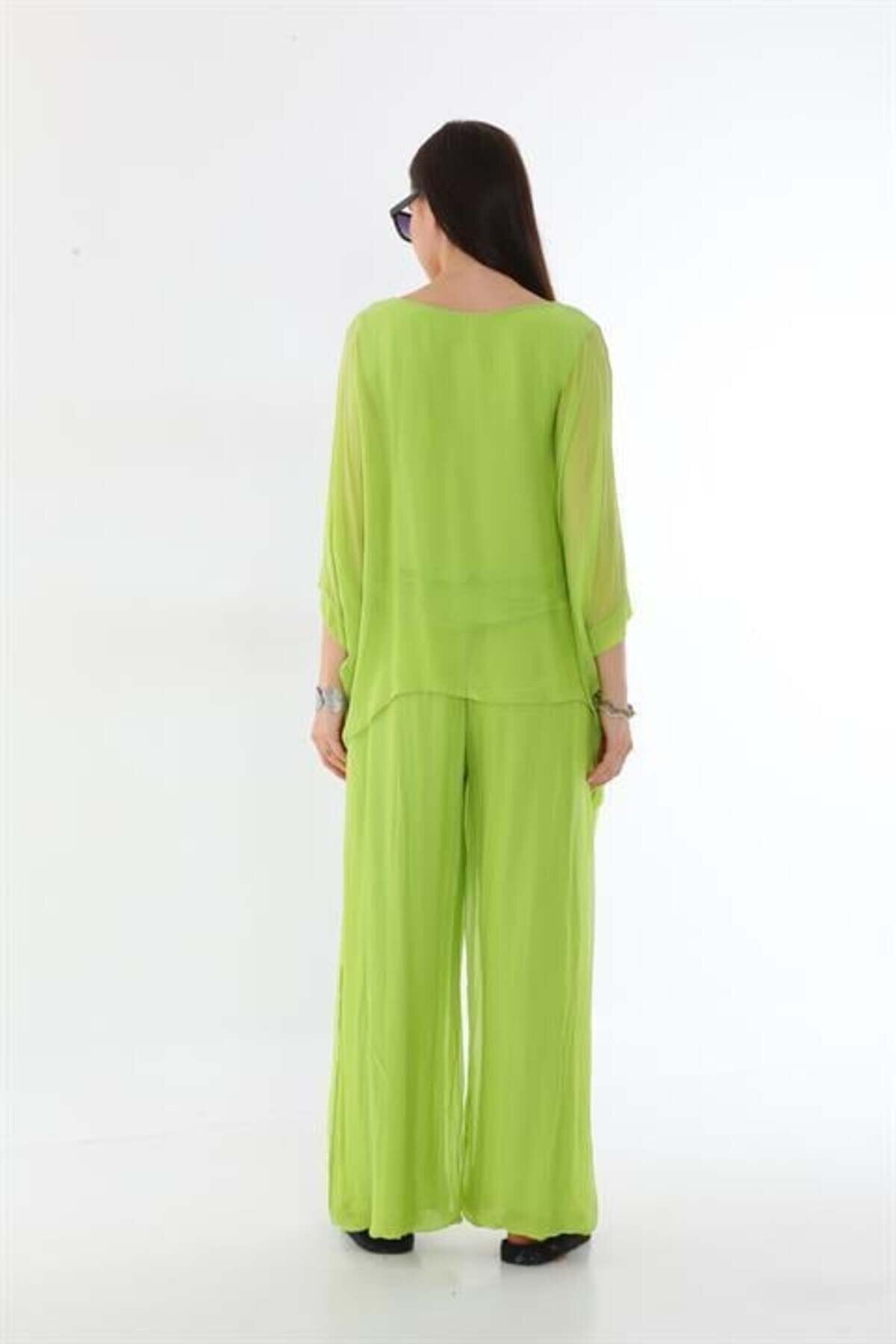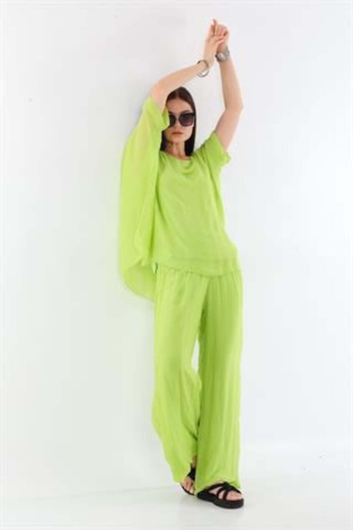 Italian Batwing Sleeve Silk Blouse - Pistachio Green