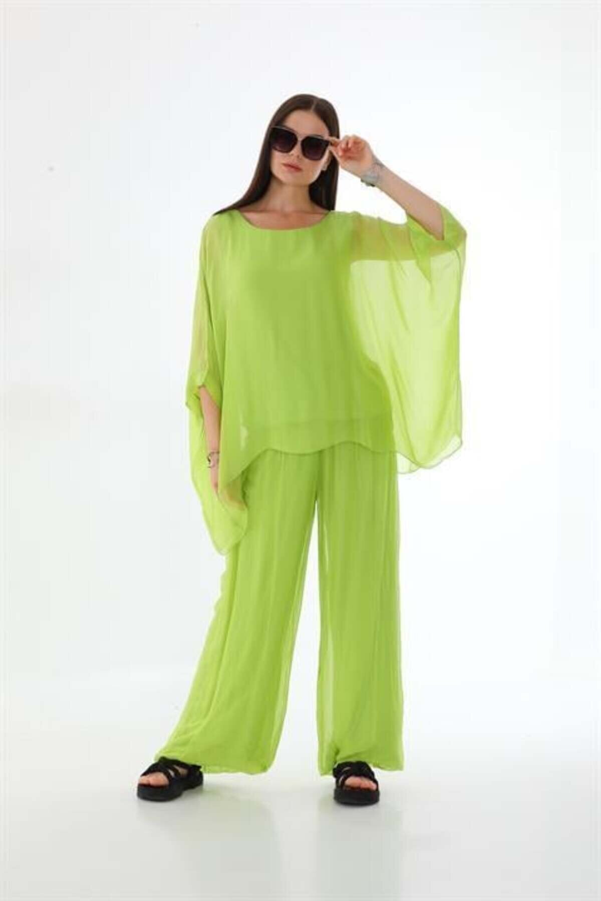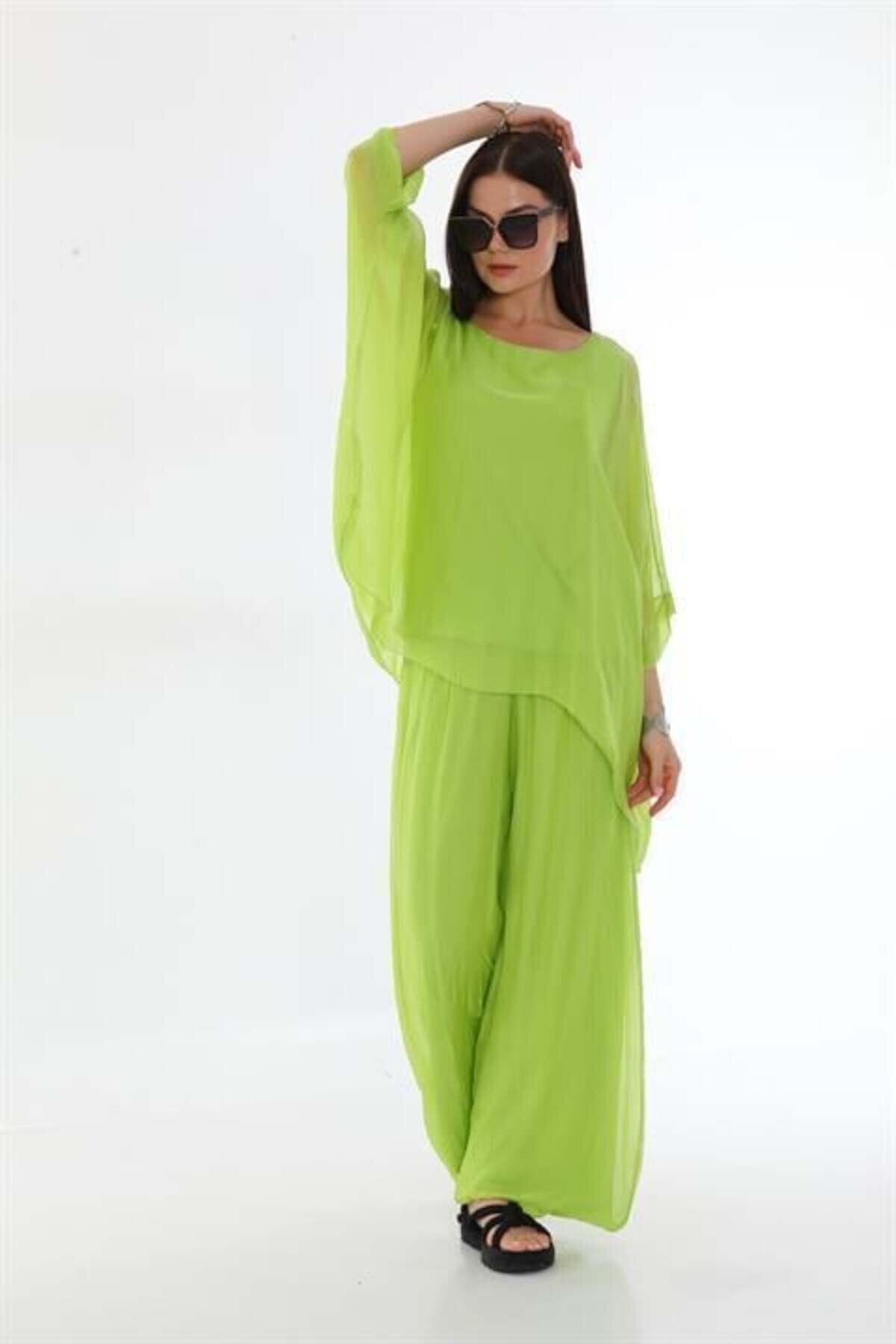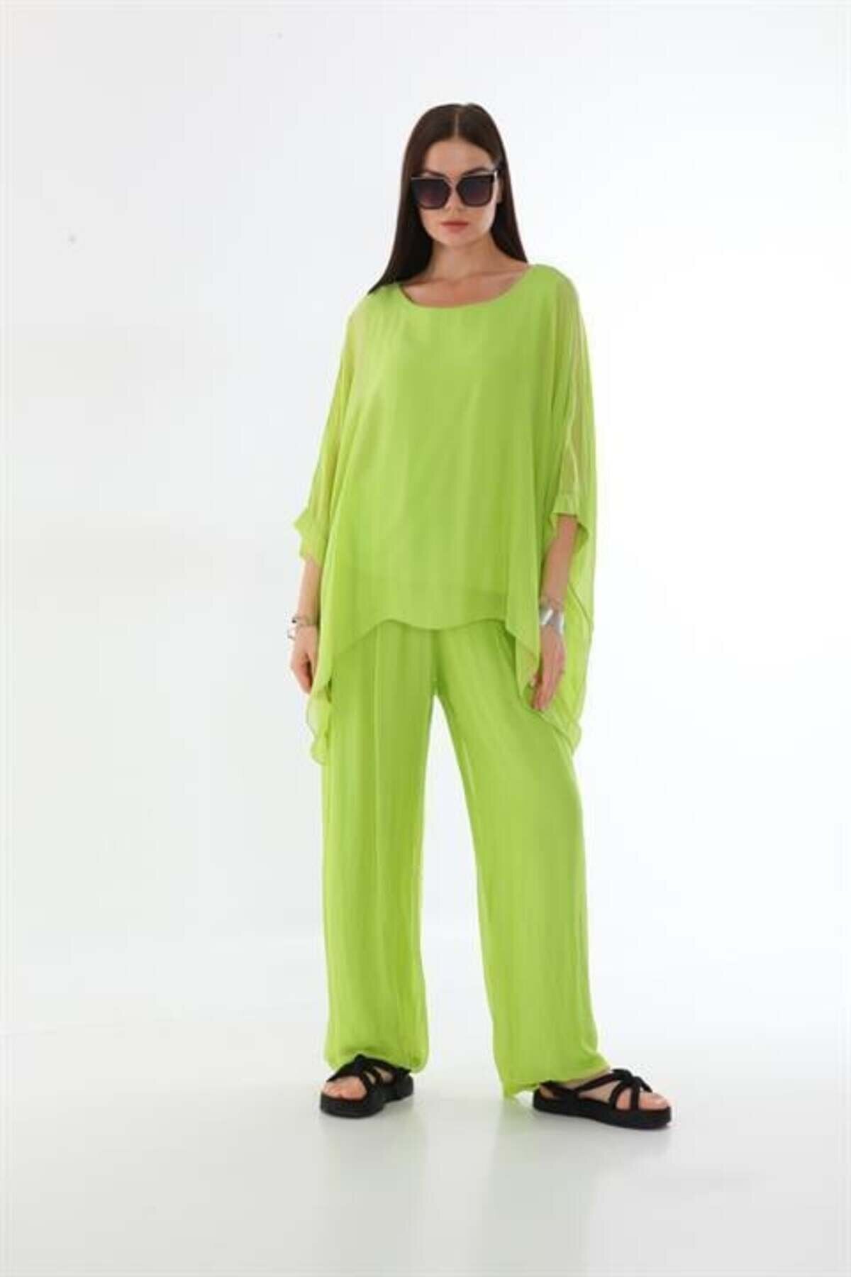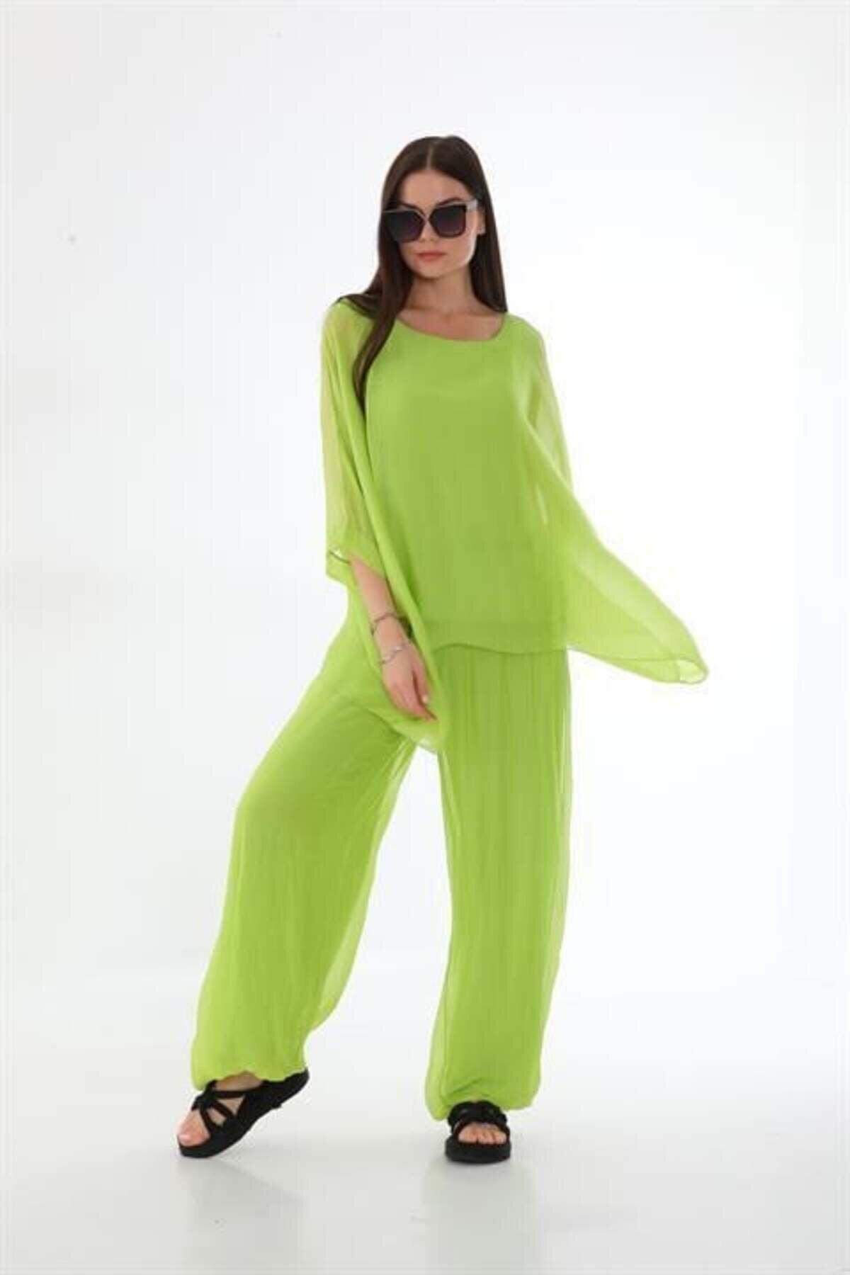 Italian Batwing Sleeve Silk Blouse - Pistachio Green