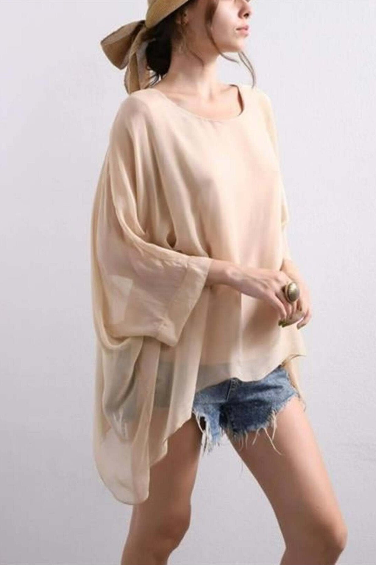 Pattern: Solid, Fit: Oversize, Neck Type: Crew Neck, Fabric Type: Woven, Material: Silk, Sleeve Type: Batwing Sleeve, Color: Multi-color, Pockets: No Pockets, Product Type: Plain, Thickness: Medium, Lining: Unlined, Length: Standard, Collection: Basic, Sleeve Length: Long, Occasion: Day / Night, Silhouette: Basic, Weave Type: Chiffon, Additional Feature: No Additional Features, Persona: Cool & Comfort, Belt/Sash: No Belt, Print/Embroidery: No Print, Closure Type: No Closure, Sustainability Detail: Organic, Package Content: Single Item, Origin: TR, Box Status: No Box