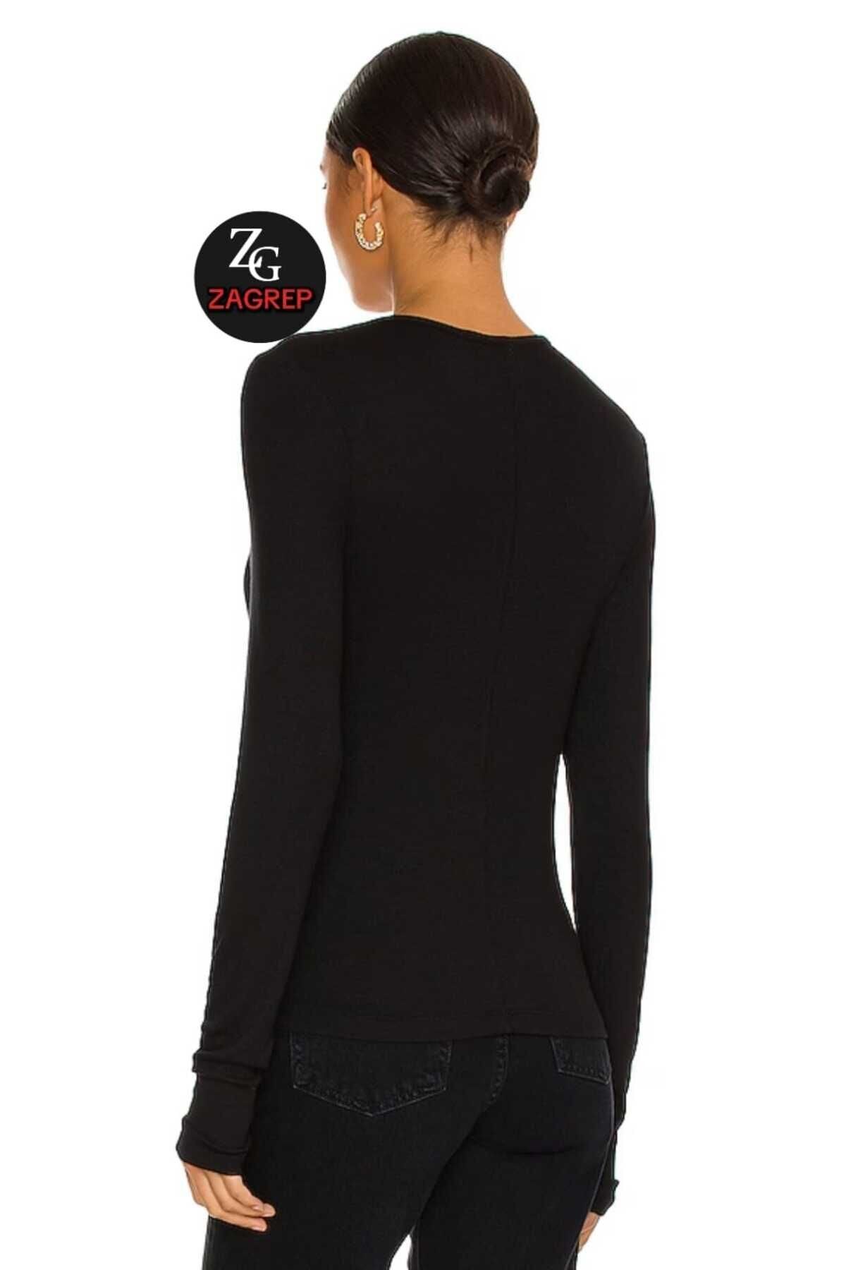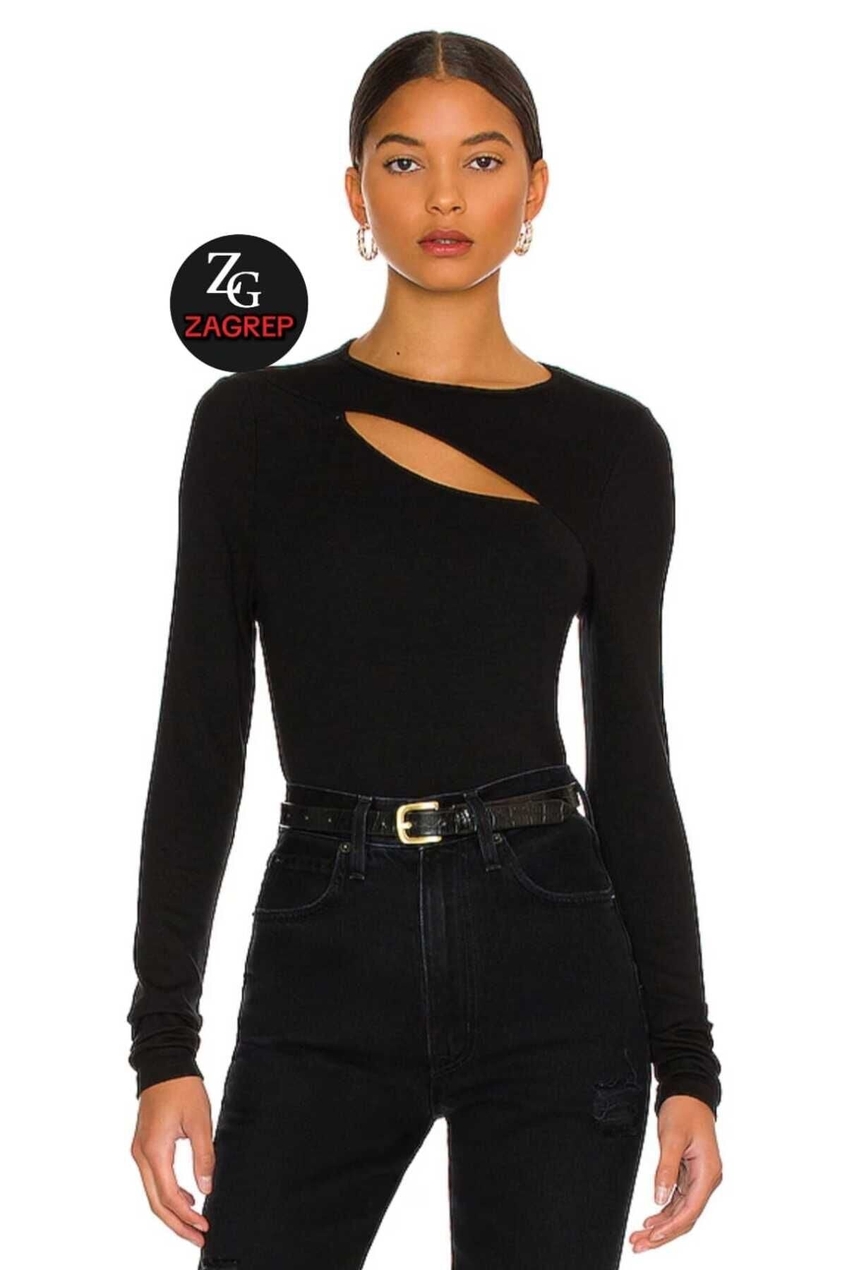 Long Sleeve Opaque Silk Jersey Front Cut-out Blouse - Black