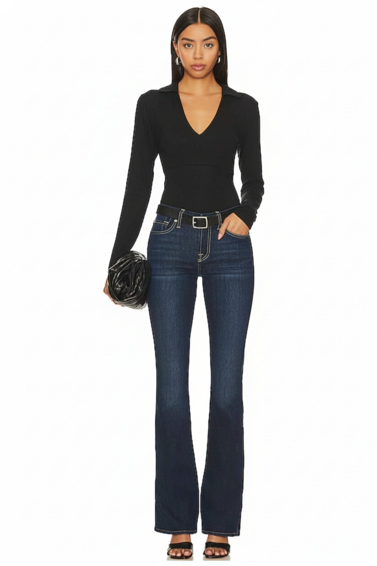 Not See-Through Polo Collar V-Neck Blouse - Black