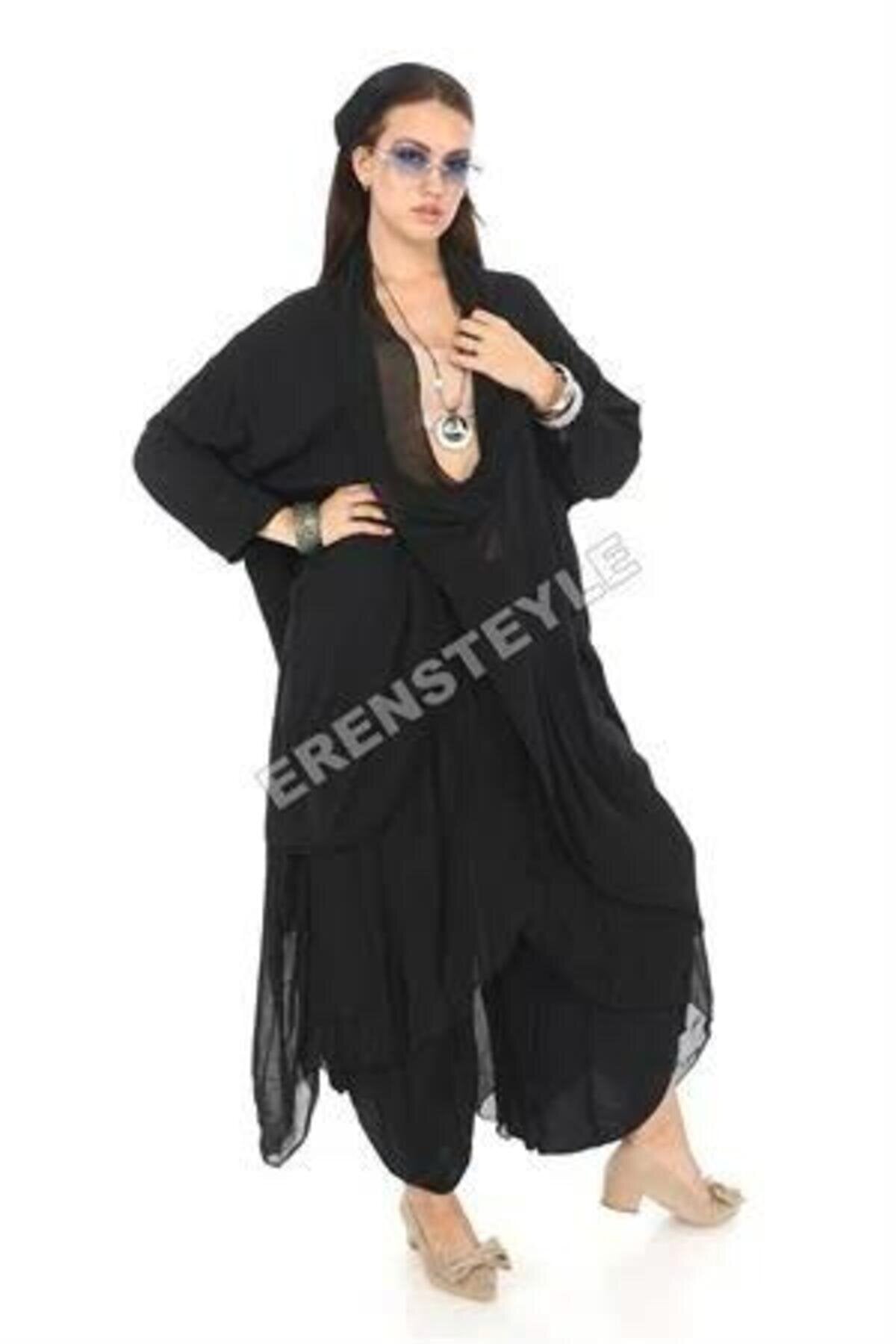 Oversize Plus Size Italian Silk Detail Blouse - Black