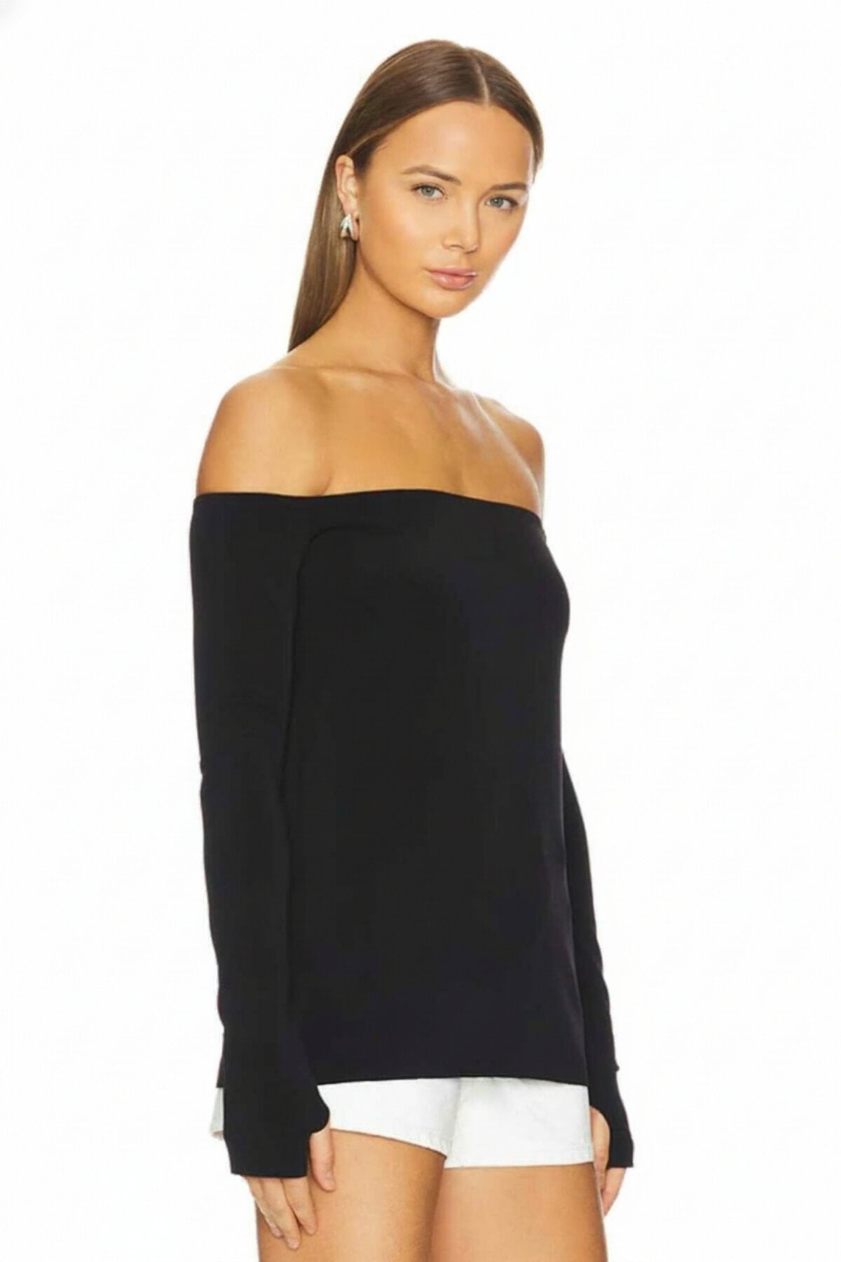This black blouse redefines modern elegance with its striking off-shoulder silhouette and luxurious fabric. Designed for the discerning woman, it perfectly balances comfort with a high-fashion sensibility, making a subtle yet powerful statement.