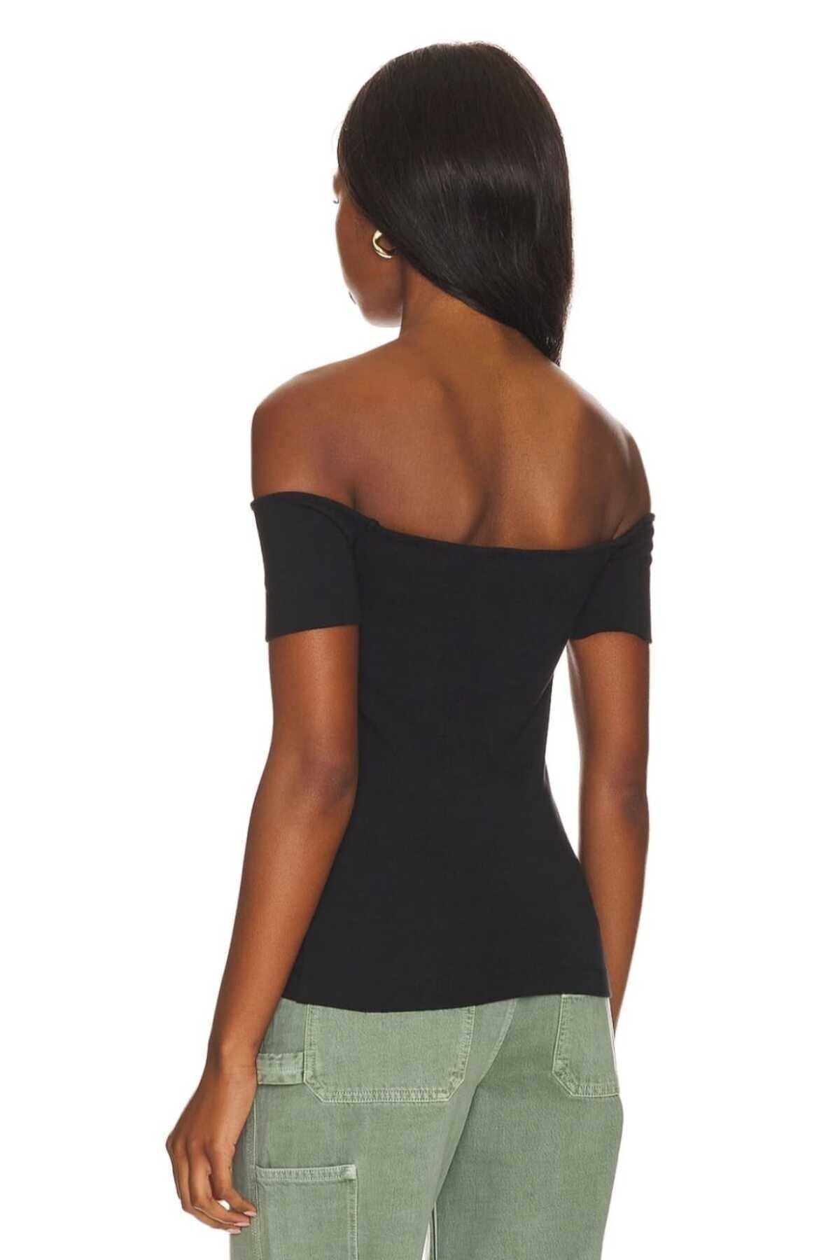 Strapless Short Sleeve Silk Jersey Opaque Blouse - Black