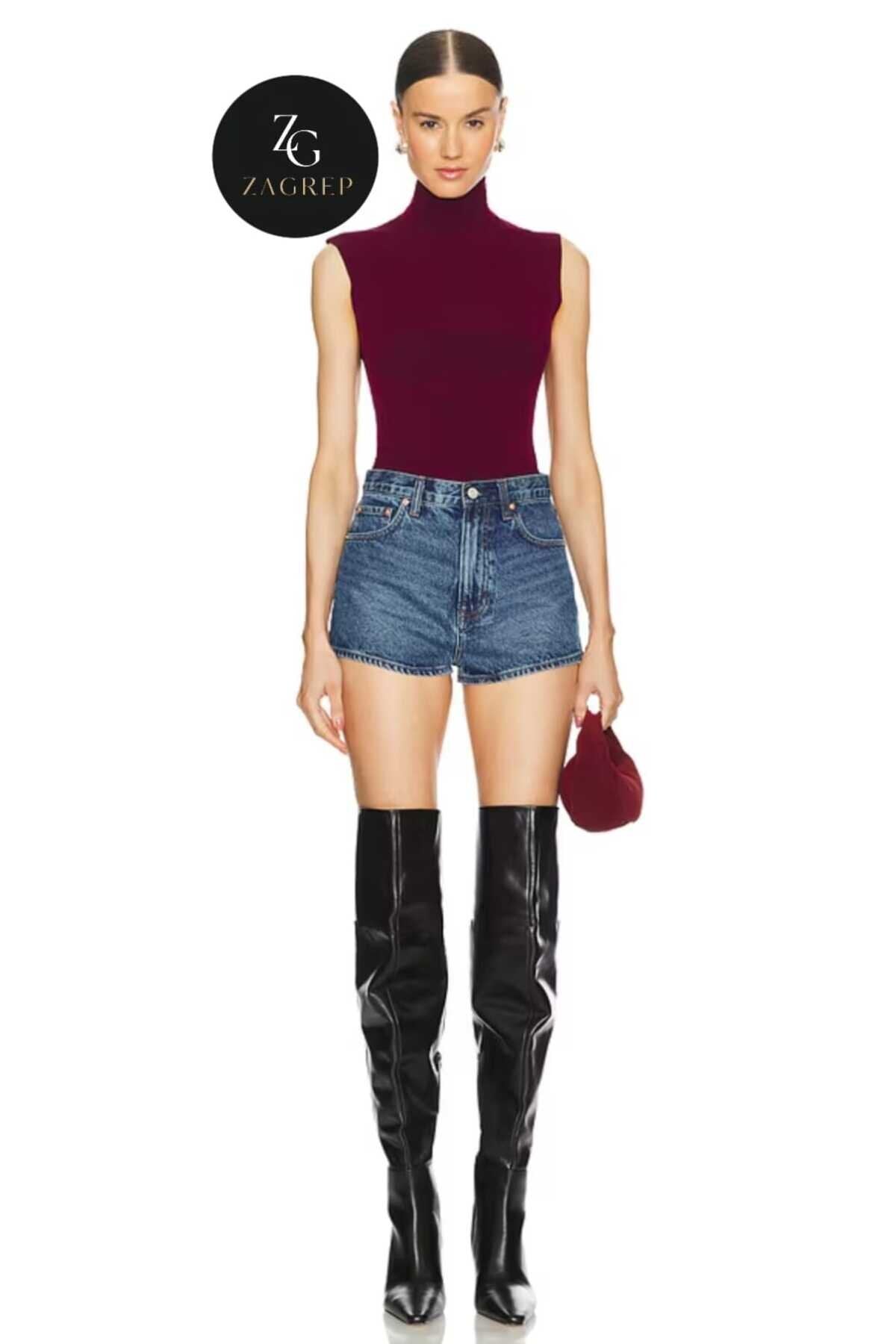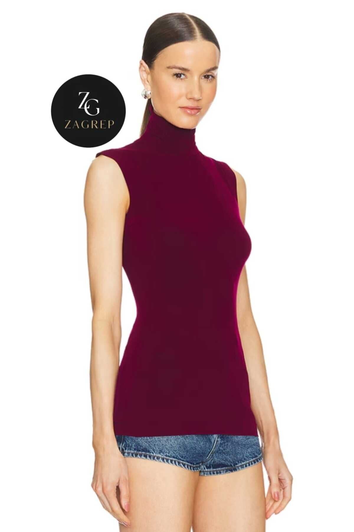 Turtleneck Silk Jersey Opaque Blouse - Burgundy