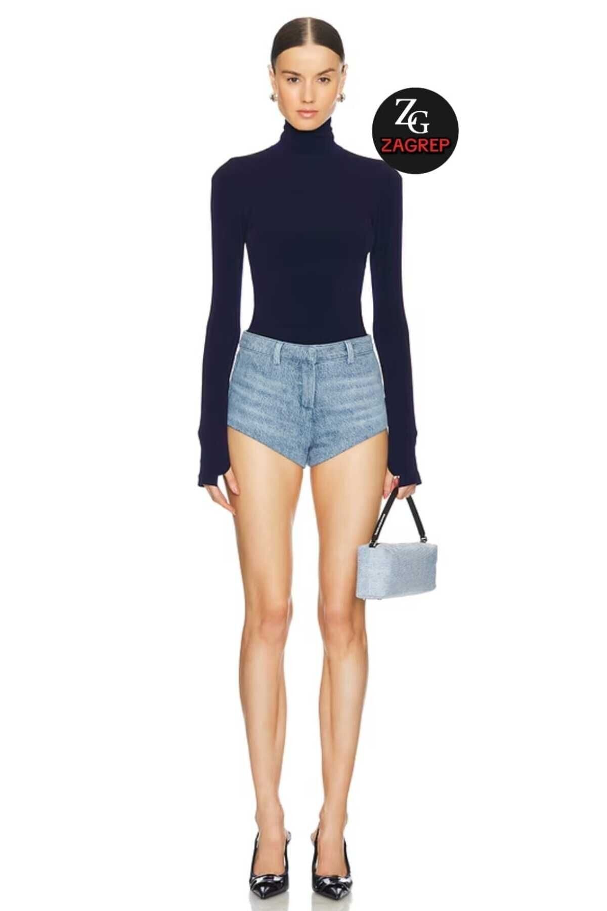 Turtleneck Silk Jersey Thumbhole Blouse - Navy Blue