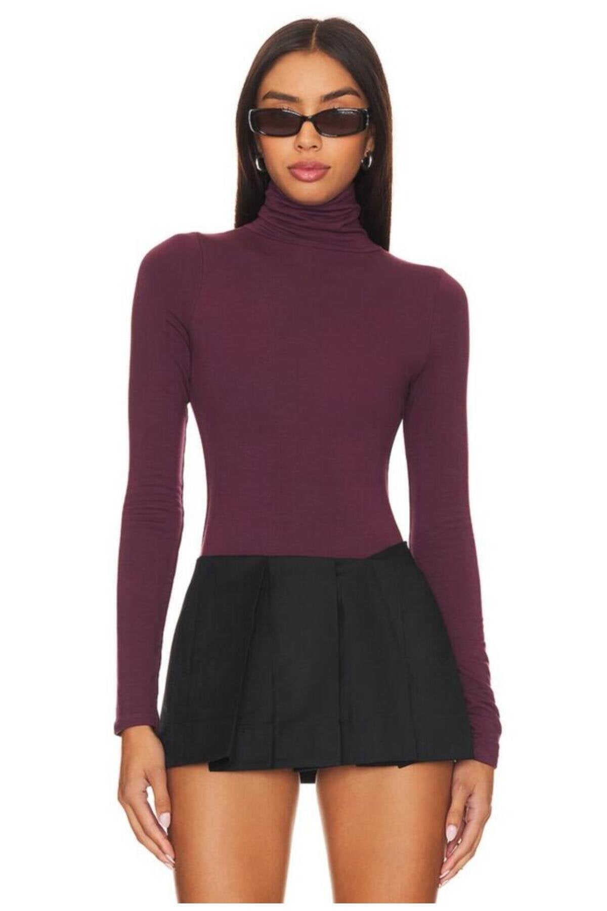 Double Layer Non-See-Through Turtleneck Bodysuit - Maroon