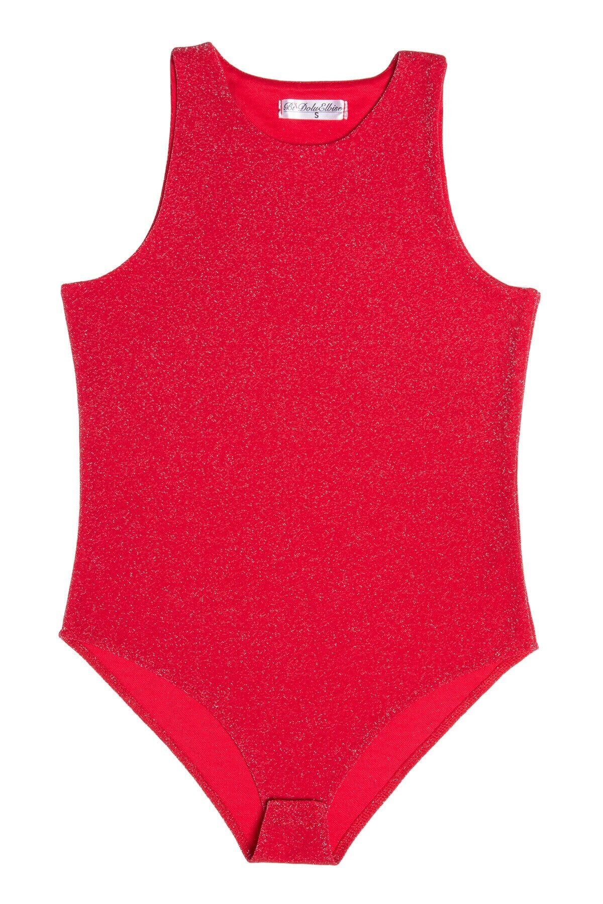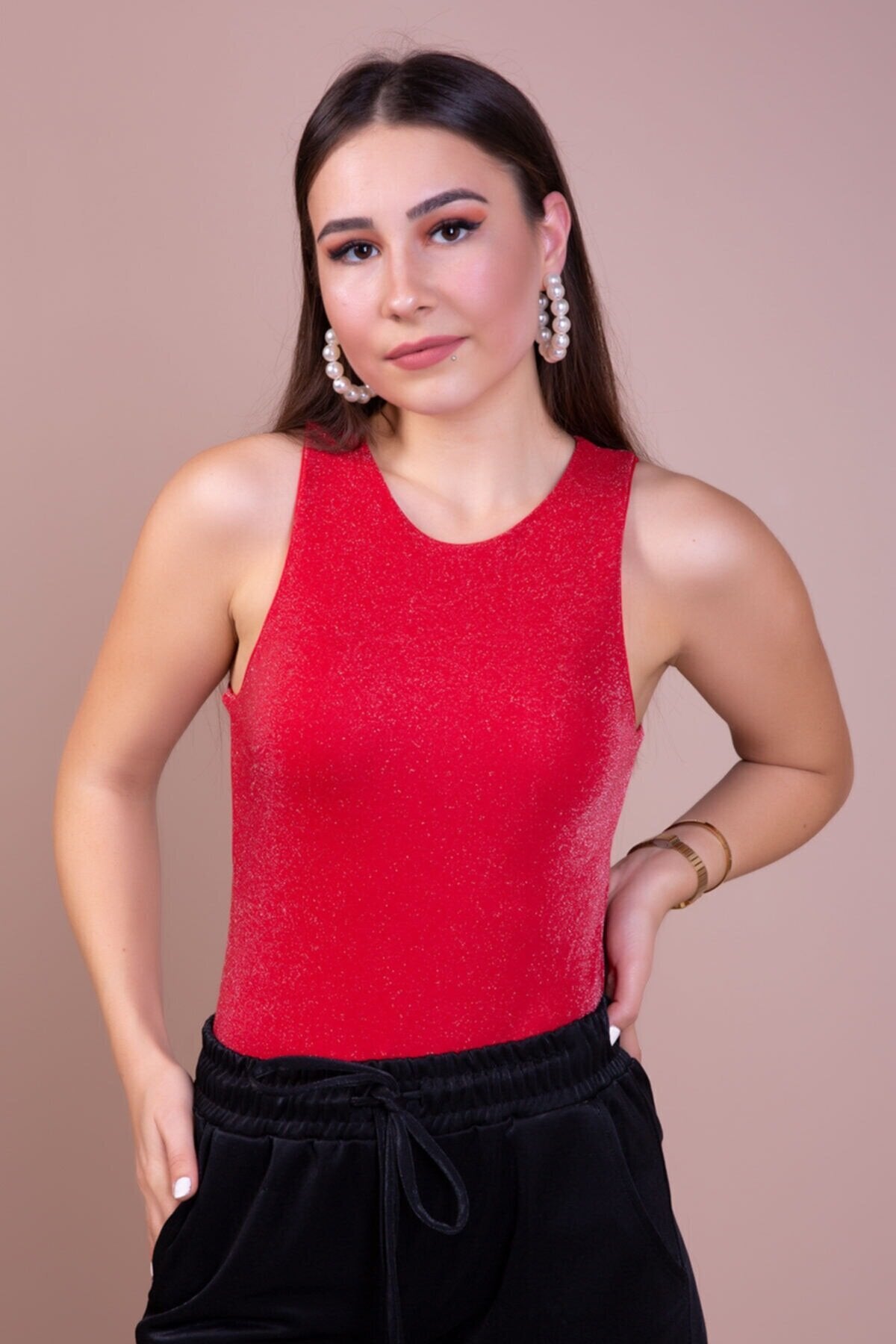 Knitted Shimmery Snap-Button Bodysuit - Red