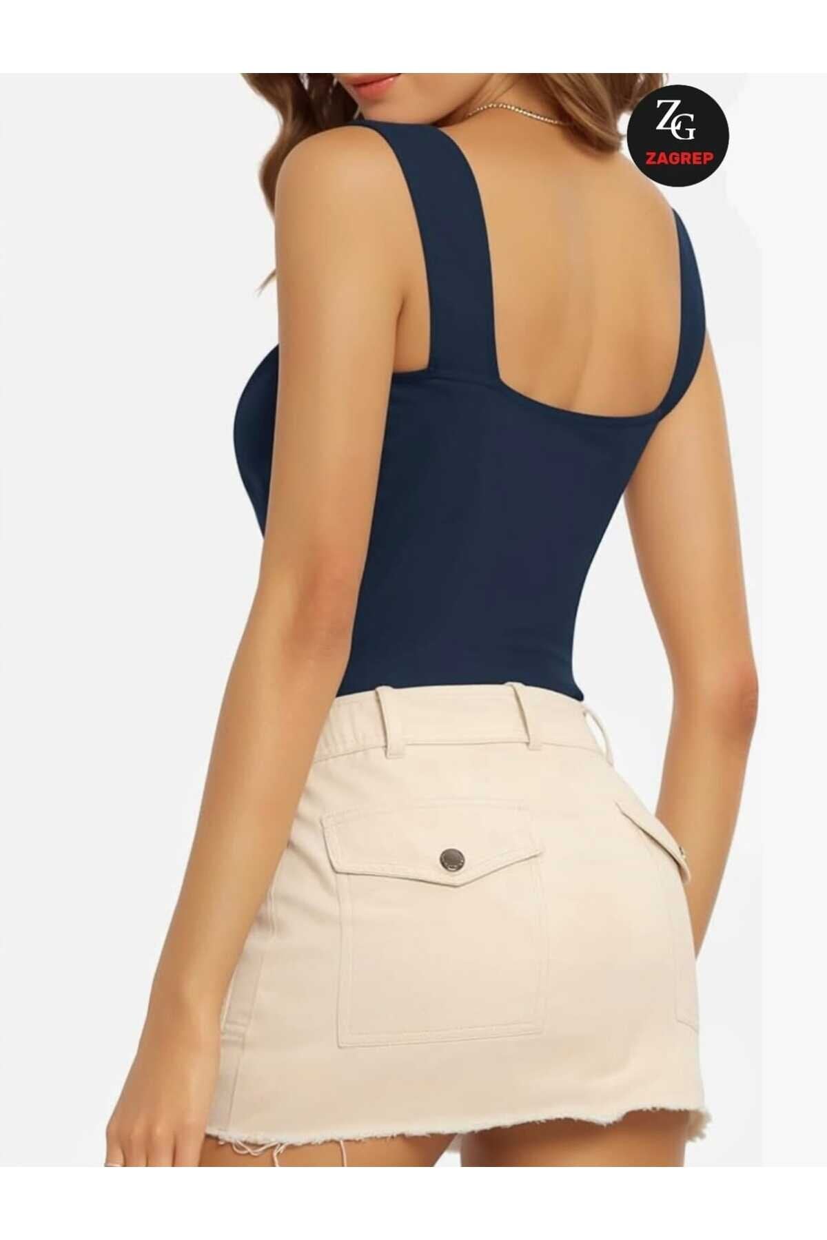 Pattern: Plain, Neckline: Square Neck, Material: Cotton Polyester, Fabric Type: Woven, Sleeve Style: Strappy, Color: Navy Blue, Product Detail: Snap-buttoned, Pocket: Hidden, Fit: Slim, Product Type: Basic, Collection: Design, Package Contents: 1+ item(s), Sleeve Length: Strappy, Additional Feature: Snap closure at bottom, Sustainability Detail: Yes, Persona: Sexy, Weave Type: Sandy, Occasion: Day / Night, Length: Midi, Silhouette: Slim, Bottom Silhouette: Slip, Cup: Cupless, Season: All Seasons, Origin: Turkey, Packaging: Boxed.