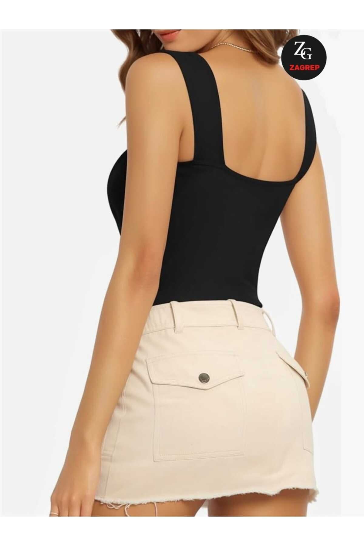 Pattern: Plain, Neckline: Square Neck, Material: Cotton Polyester, Fabric Type: Woven, Sleeve Type: Strappy, Color: Black, Product Detail: Snap Closure, Pocket: Hidden, Fit: Slim, Product Type: Plain, Collection: Design, Package Contents: 1+, Sleeve Length: Strappy, Additional Feature: Bottom Snap Closure, Sustainability Detail: Yes, Persona: Sexy, Weave Type: Sandy, Occasion: Day / Night, Length: Midi, Silhouette: Slim, Bottom Silhouette: Slip, Cup: Cupless, Season: All Seasons, Origin: TR, Packaging: Boxed