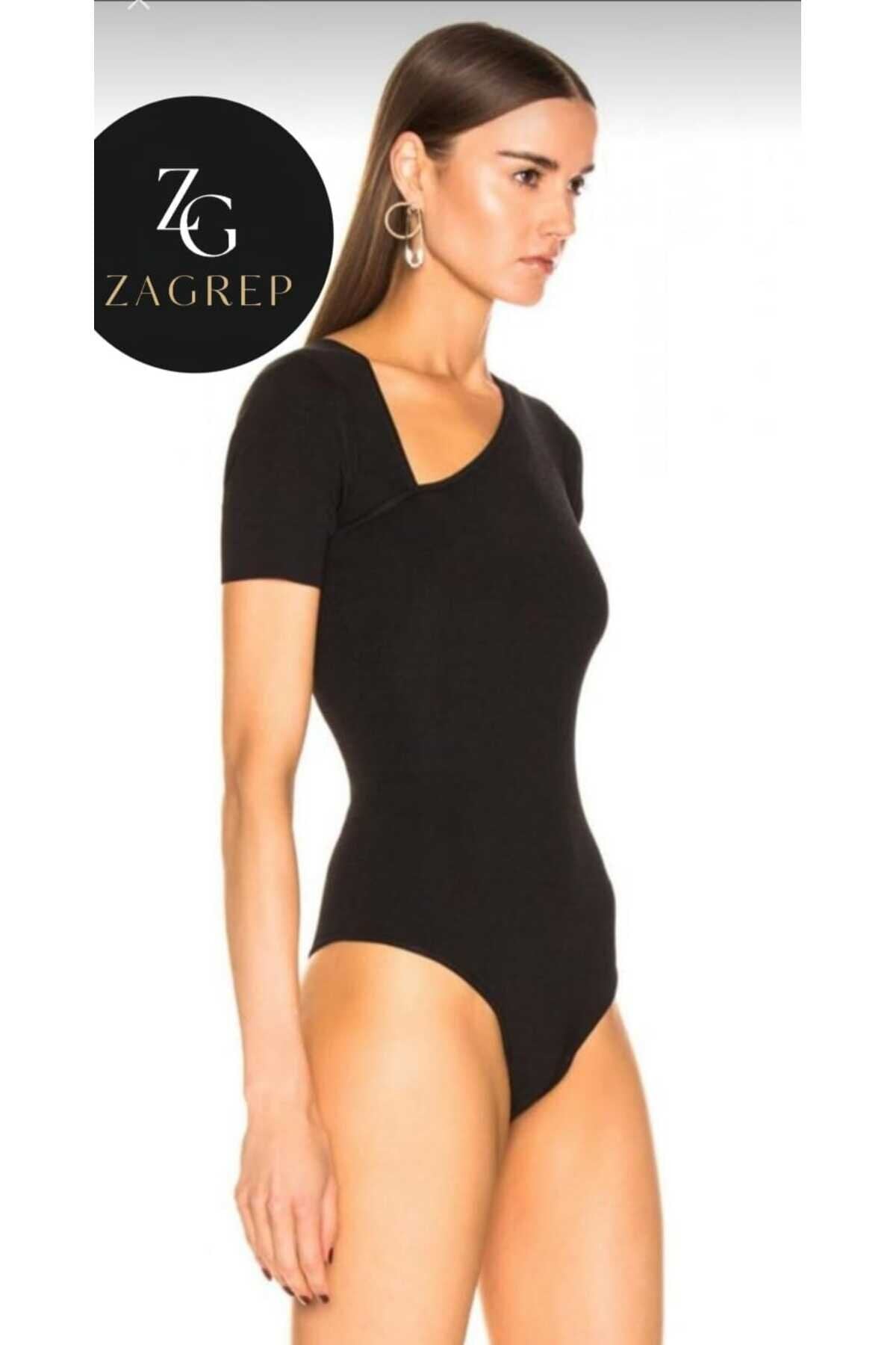 Pattern: Solid, Neckline: Asymmetrical, Material: Cotton Polyester, Fabric Type: Woven, Sleeve Type: Short Sleeve, Color: Black, Product Detail: Lined, Fit: Slim Fit, Product Type: Plain, Collection: Design, Package Contents: Single, Sleeve Length: Short, Additional Feature: Bottom Snap Closure, Sustainability Detail: Yes, Persona: Sexy, Weave Type: Jersey, Occasion: Chic/Evening, Length: Midi, Silhouette: Slim, Bottom Silhouette: Slip, Cup: Unpadded