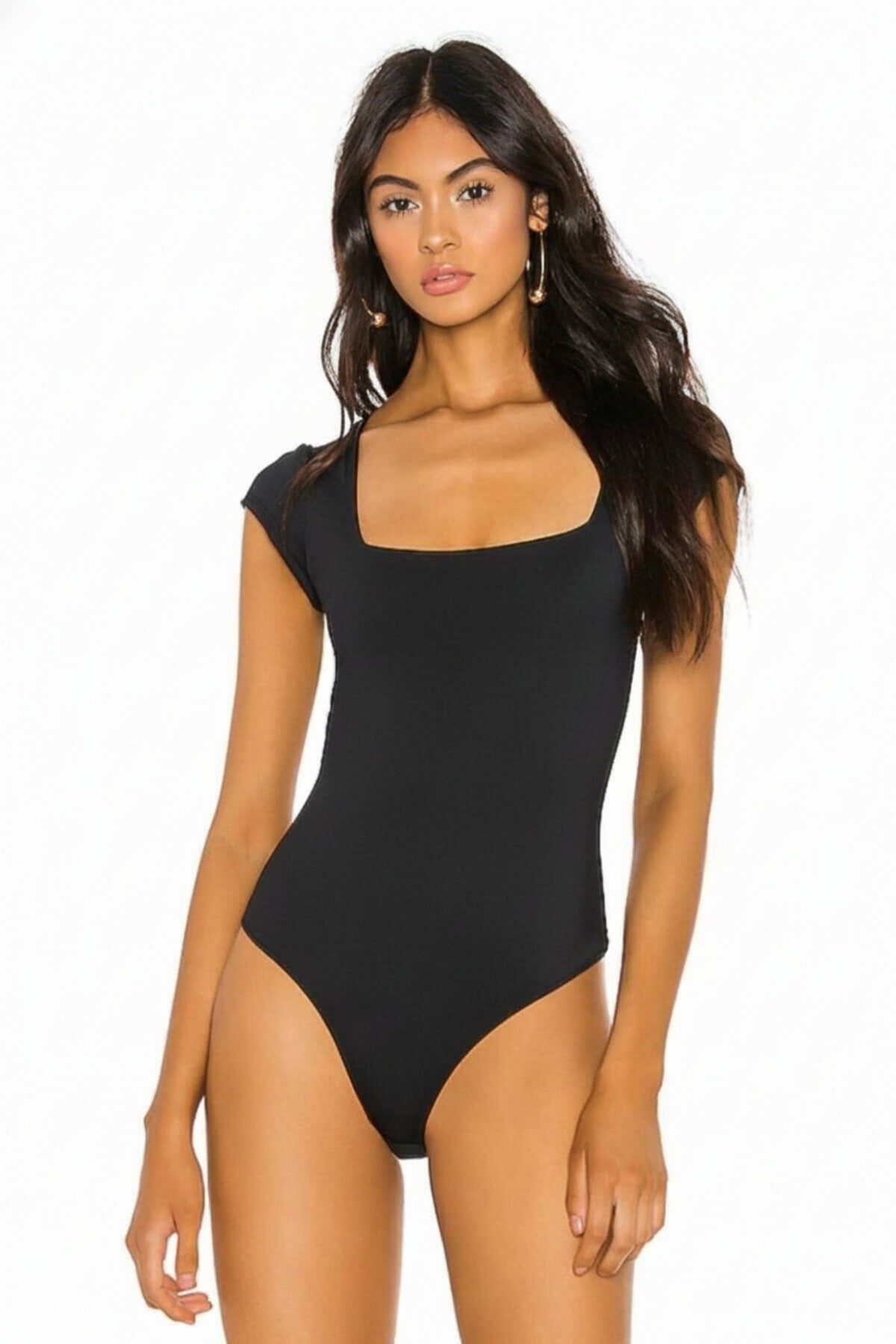 Pattern: Plain, Neckline Type: Square Neck, Material: Cotton Polyester, Fabric Type: Woven, Sleeve Type: Short Sleeve, Color: Black, Product Detail: Snap Closure, Pocket: Faux, Fit: Slim Fit, Product Type: Plain, Collection: Design, Package Contents: 1+, Sleeve Length: Short, Additional Feature: Bottom Snap Closure, Sustainability Detail: Yes, Persona: Sexy, Weave Type: Jersey, Occasion: Chic/Evening, Length: Short, Silhouette: Slim, Bottom Silhouette: Slip, Cup: No Cups, Season: All Seasons, Origin: TR, Box Condition: Boxed, Closure Type: Snap Closure