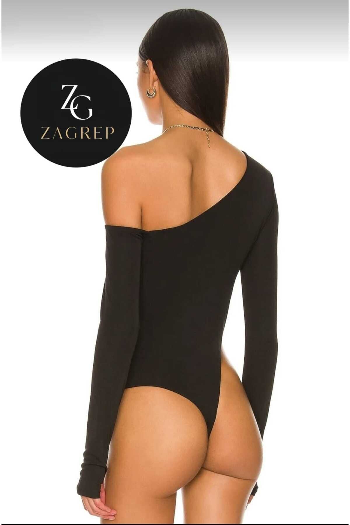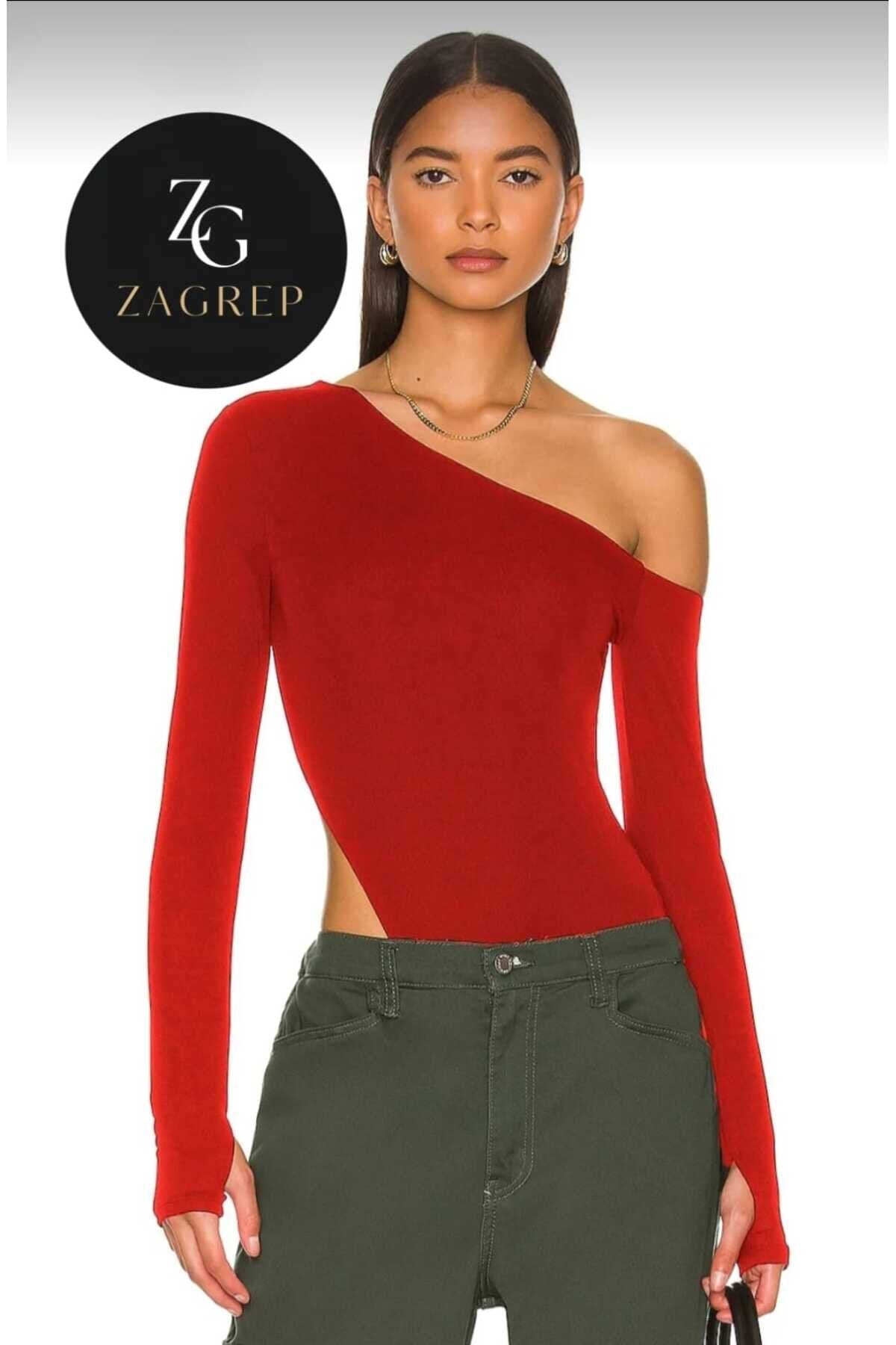 Silk Jersey Non-See-Through Thumb-Hole Collar Detail Bodysuit - Red