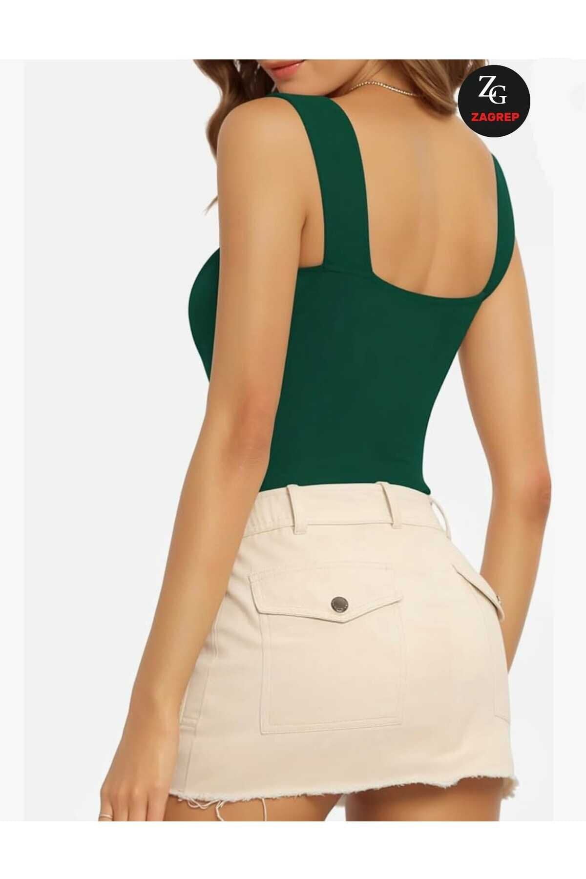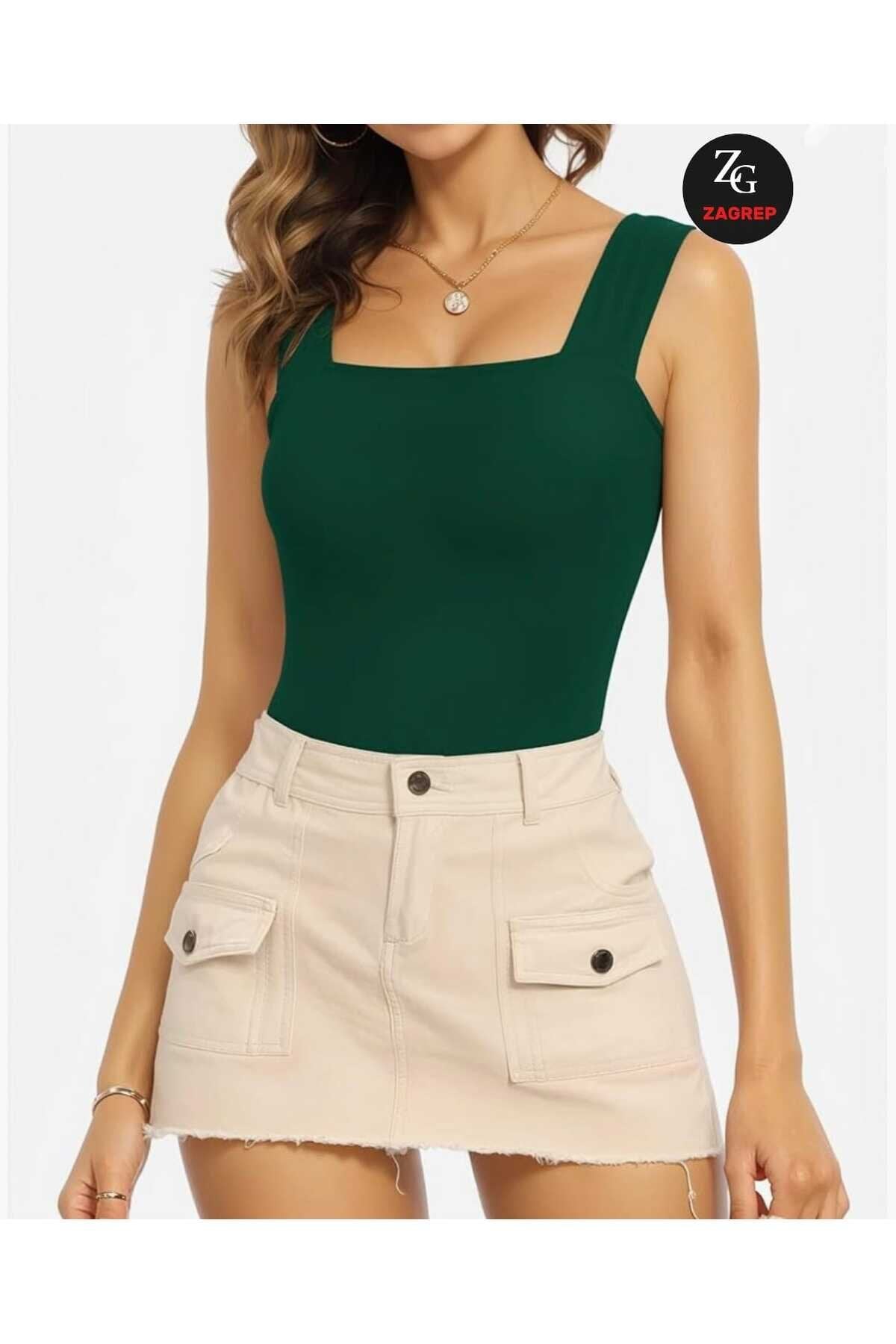 Silk Jersey Wide Strap Square Neck Bodysuit - Emerald Green