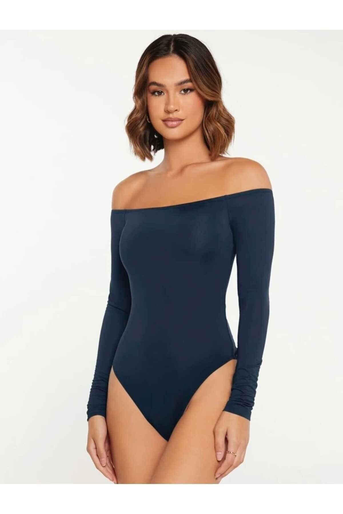 Strapless Silk Jersey Non-See-Through Bodysuit - Navy Blue