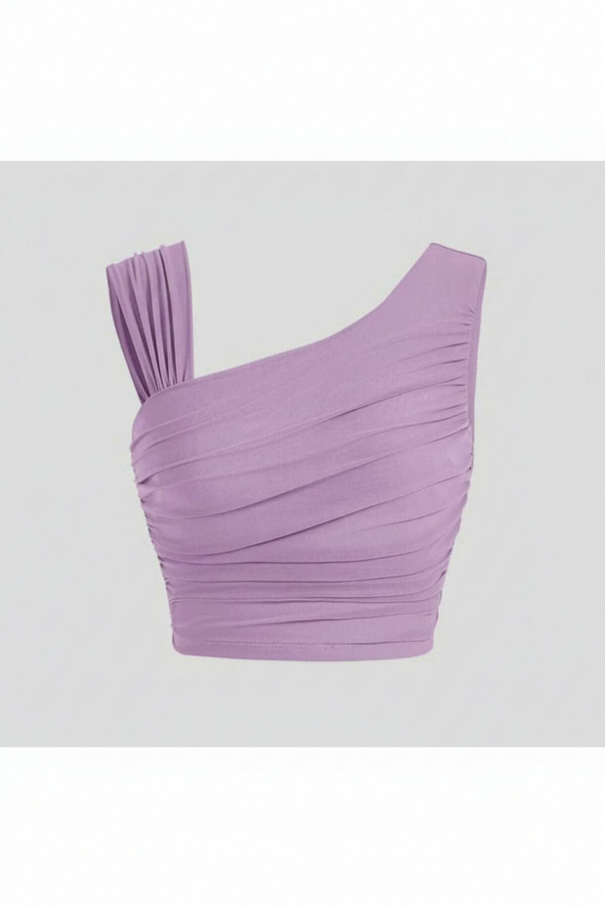 Material: Cotton Polyester, Neckline Type: Asymmetrical Neck, Pattern: Plain, Fabric Type: Woven, Color: Purple, Product Detail: Lined, Sleeve Length: Sleeveless, Fit: Slim, Product Type: Plain, Sleeve Type: Sleeveless, Cup: Unpadded, Collection: Design, Silhouette: Crop, Length: Crop, Occasion: Day / Night, Additional Feature: Opaque, Sustainability Detail: Yes, Package Contents: 1+, Persona: Sexy, Weave Type: Jersey, Closure Type: Hook-and-eye, Box Status: No Box