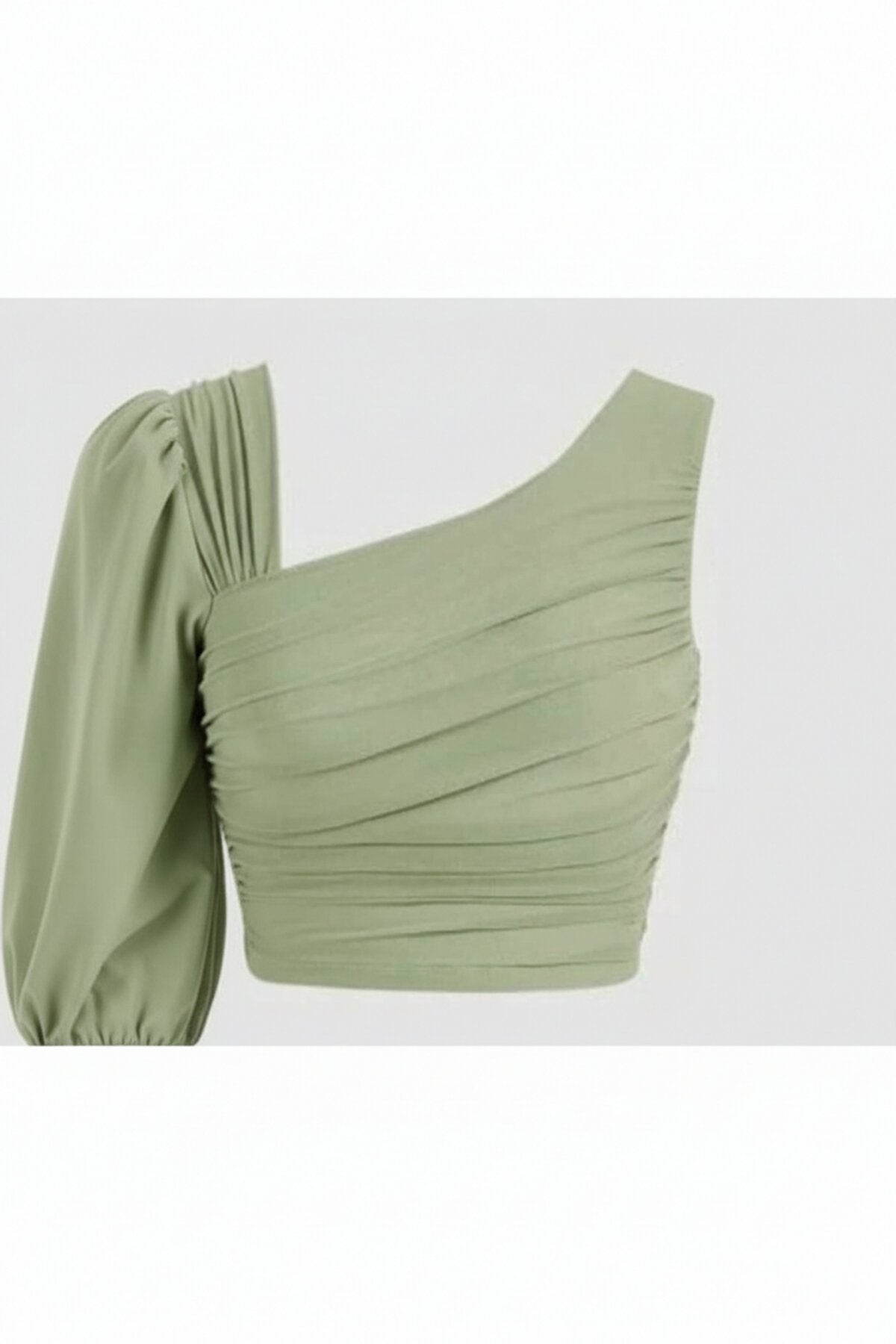 Opaque Jersey Draped Shoulder Bustier - Sage Green