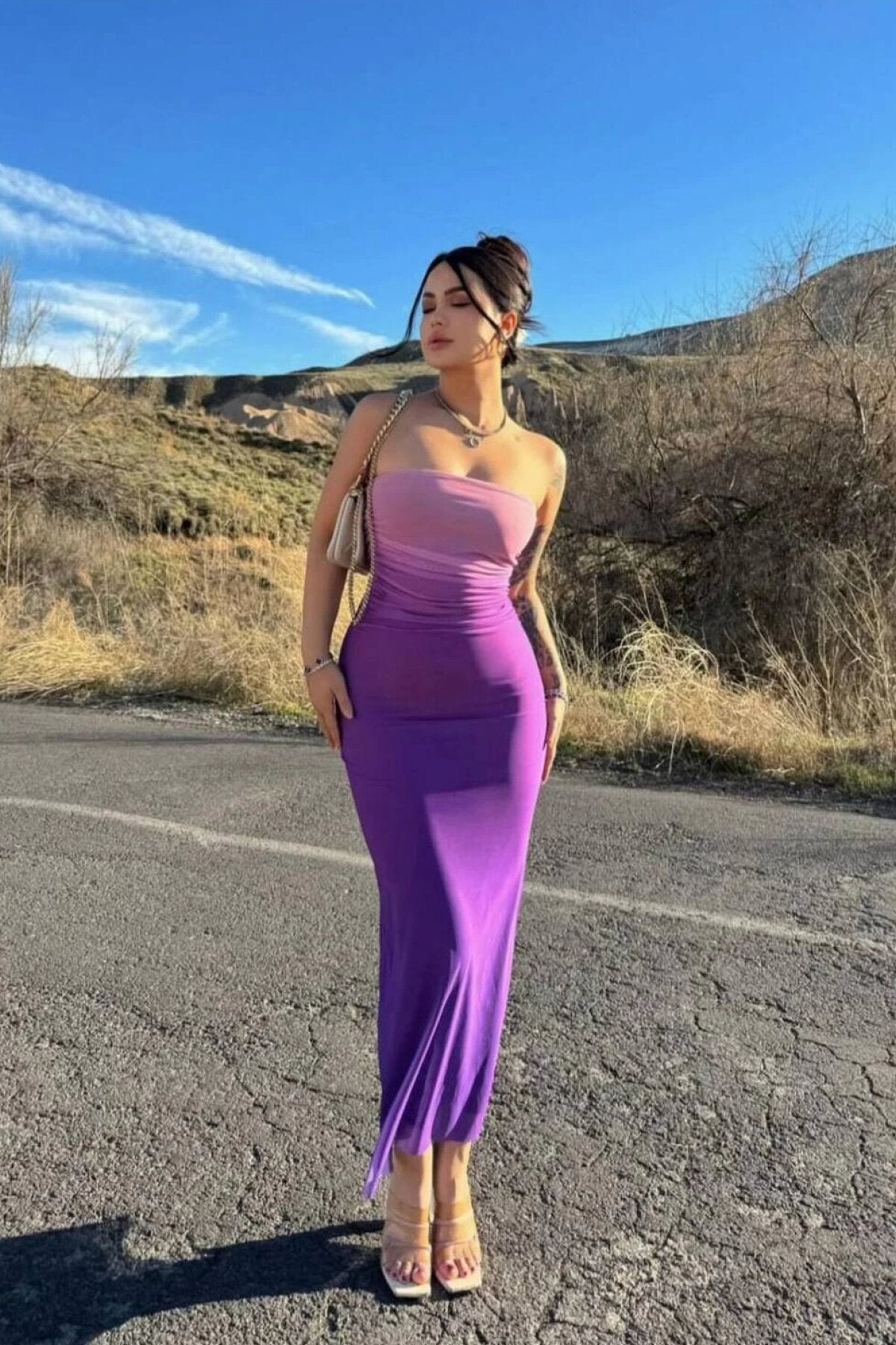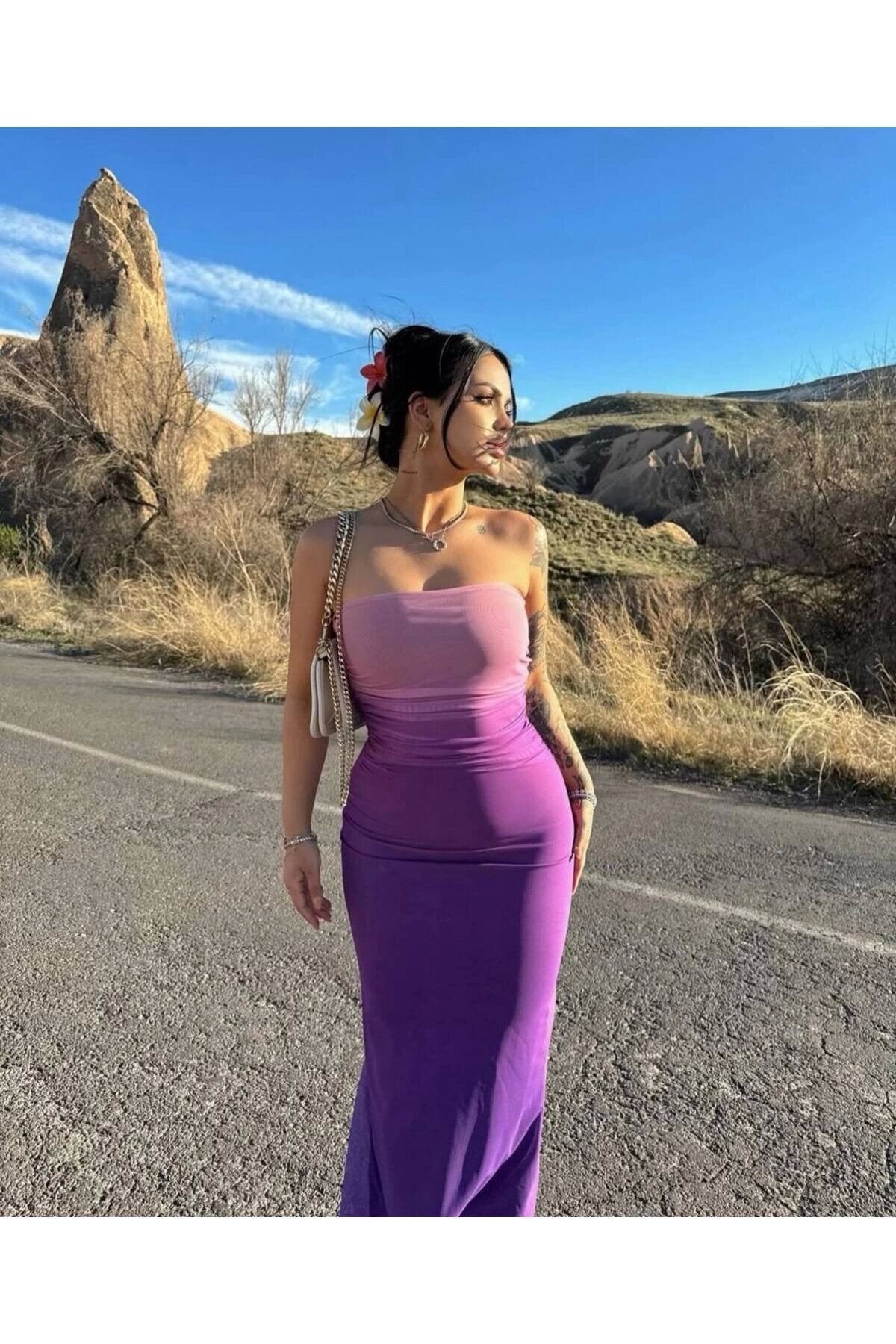 Long Fitted Strapless Tulle Lined Dress - Pink