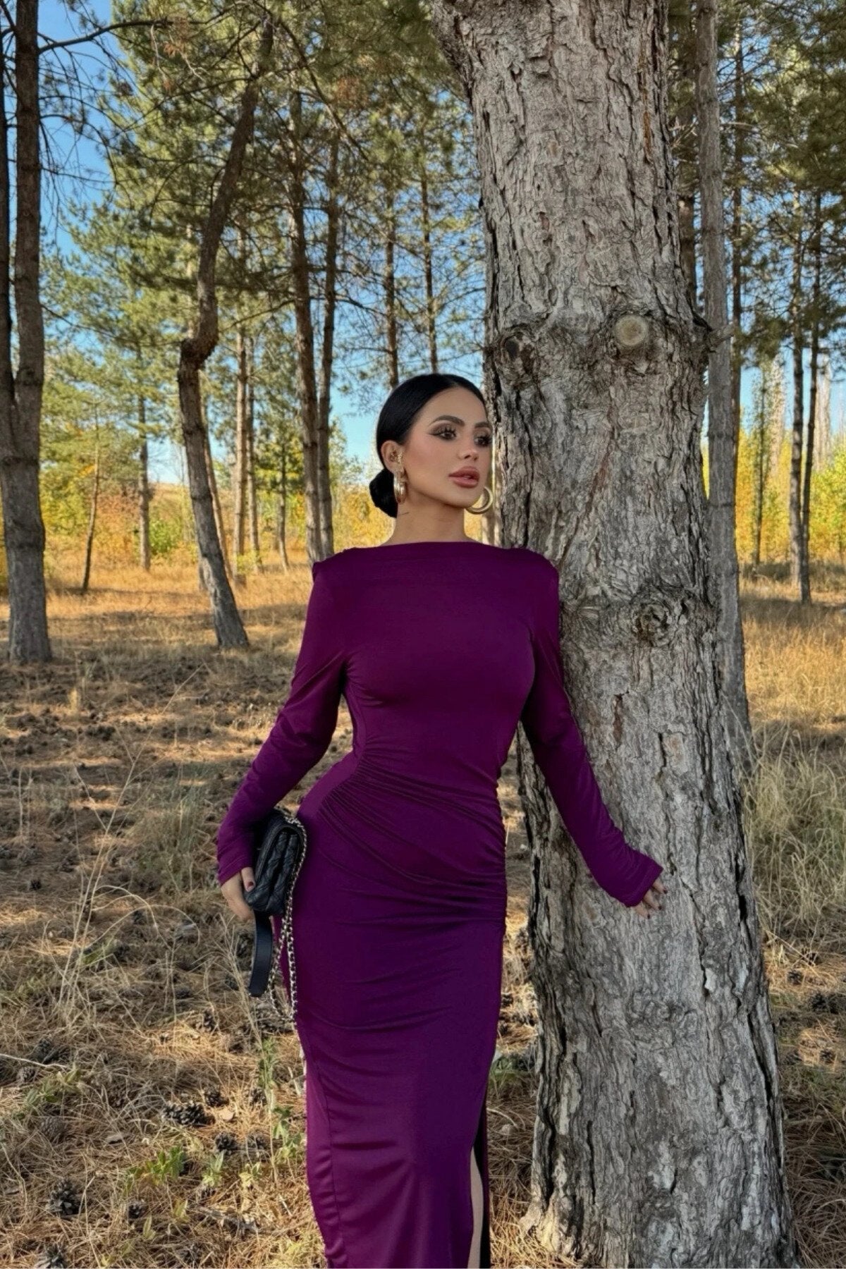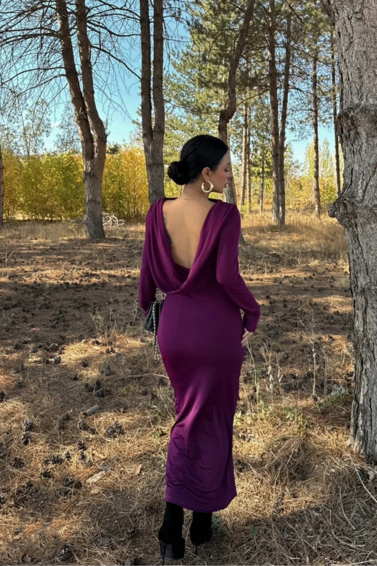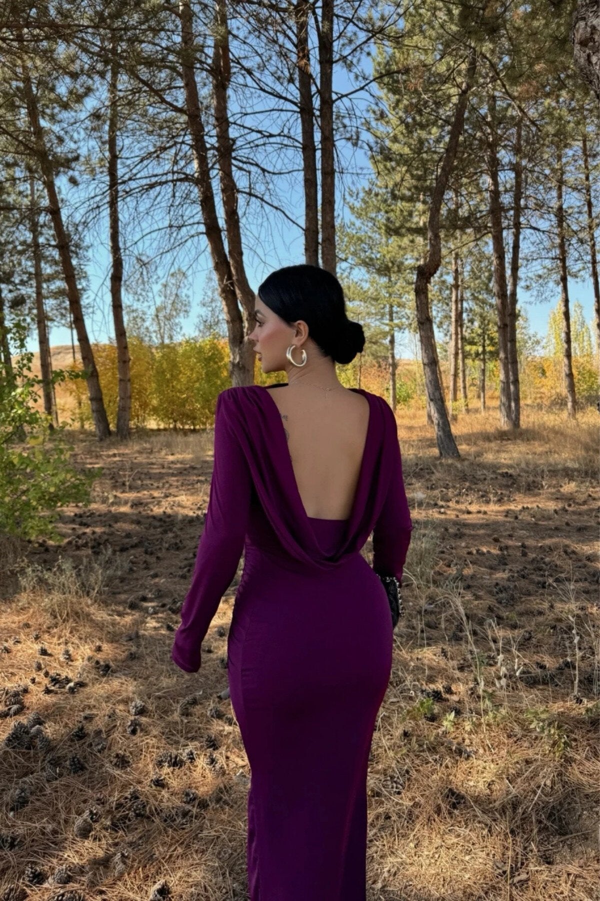Fabric Type: Woven, Material: Cotton Polyester, Sleeve Type: Long Sleeve, Pattern: Plain, Fit: Mermaid, Color: Burgundy, Neckline: Crew Neck, Closure Type: No Closure, Sleeve Length: Long, Product Detail: Open Back, Pockets: No Pockets, Collection: Design, Thickness: Medium, Lining: Unlined, Length: Long, Persona: Sexy, Silhouette: Mermaid, Occasion: Elegant/Evening, Weave Type: Sandy, Additional Feature: Slit, Print/Embroidery Technique: No Print, Belt: No Belt, Sustainability Detail: Yes, Package Contents: Single Item, Cups: No Cups, Season: Winter, Origin: Turkey, Box Status: No Box