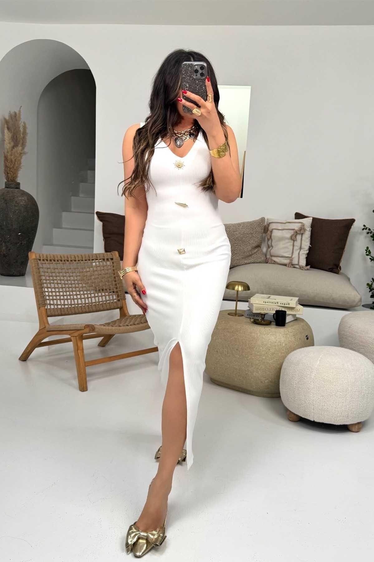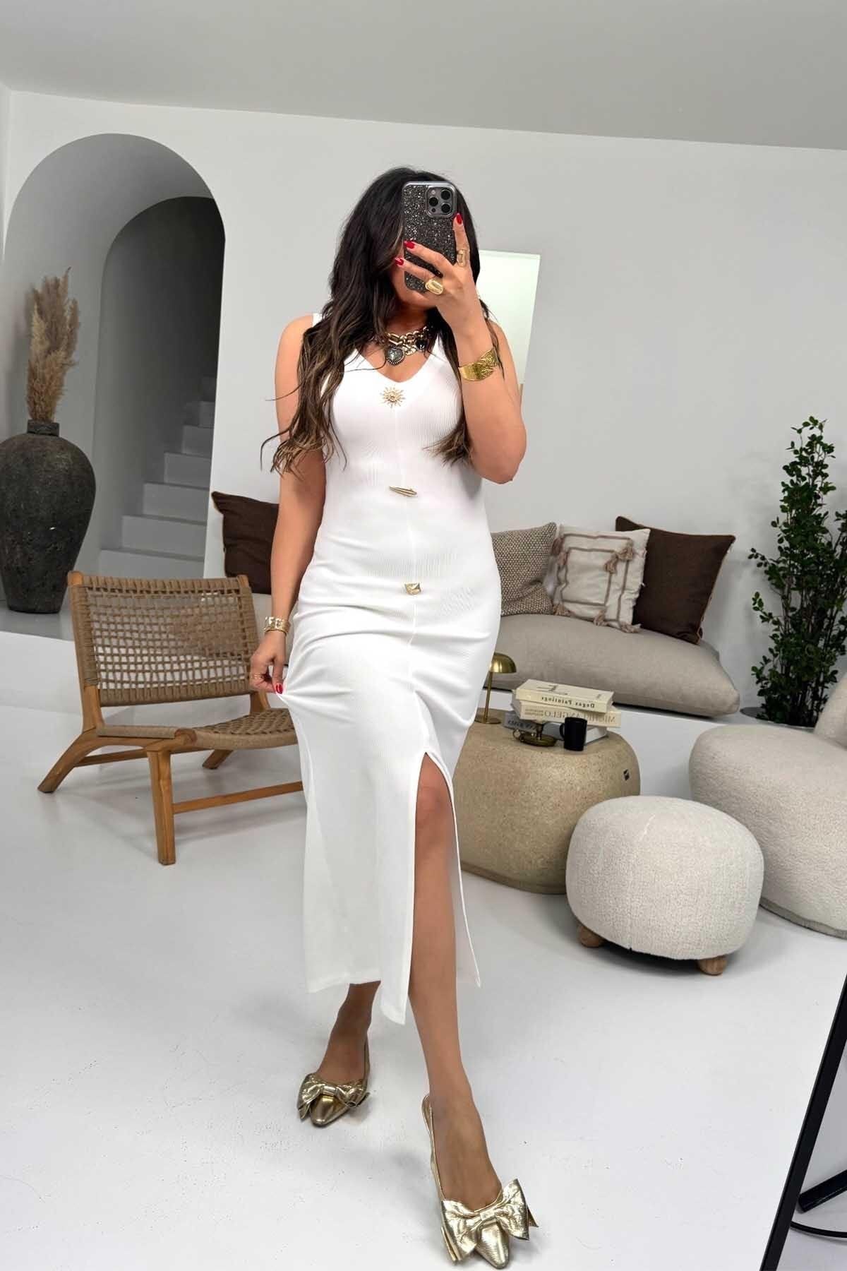 Long Ottoman Fabric Sun-Detail Dress - Ecru