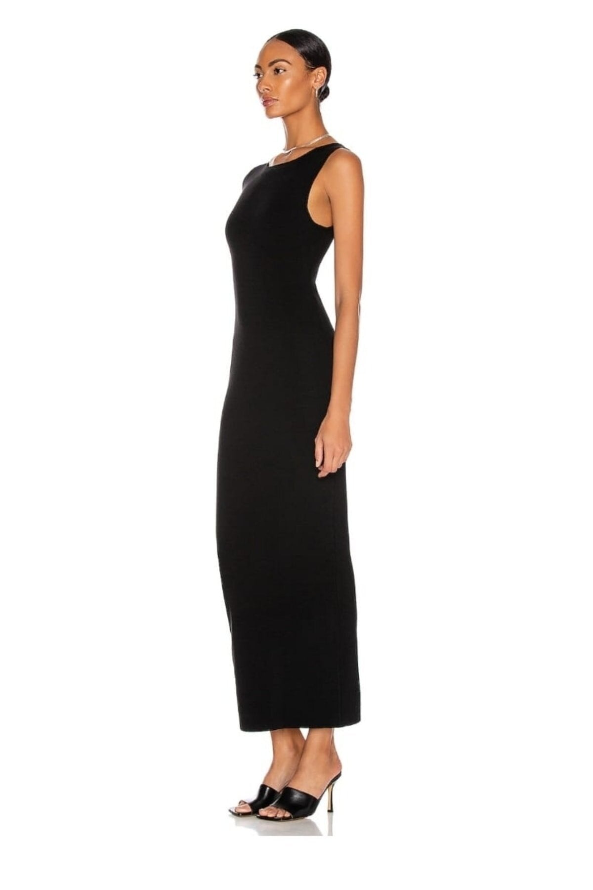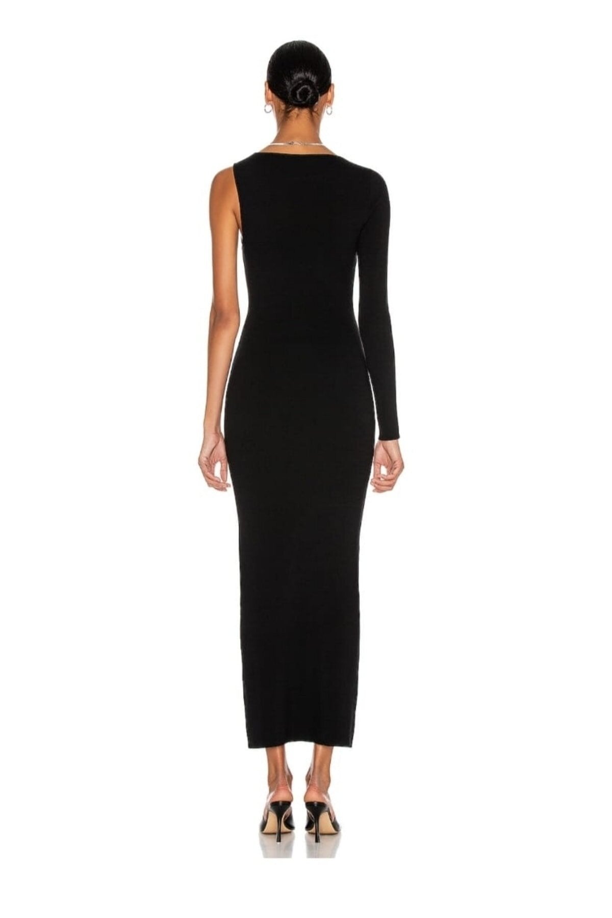 Long Silk Jersey Sleeve-Detail Dress - Black