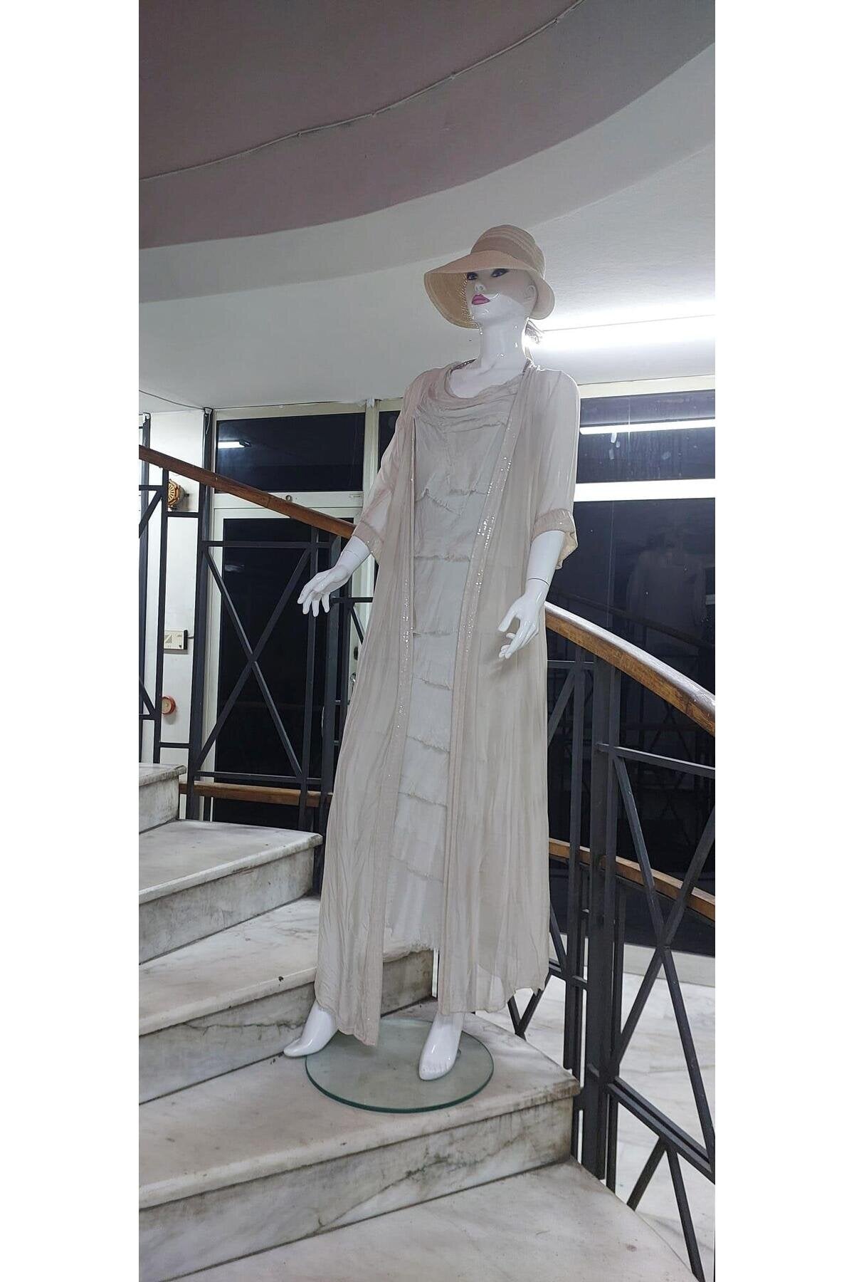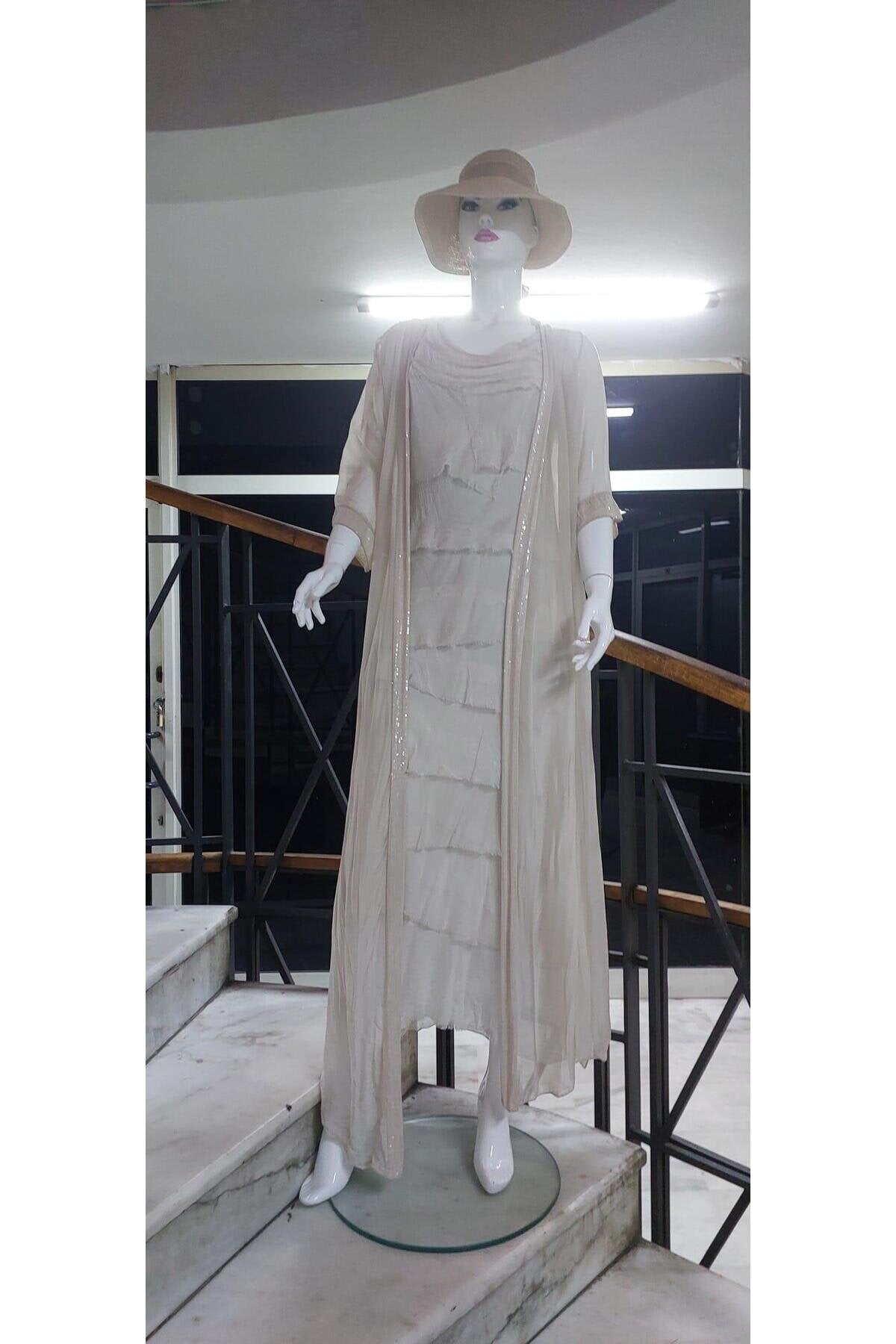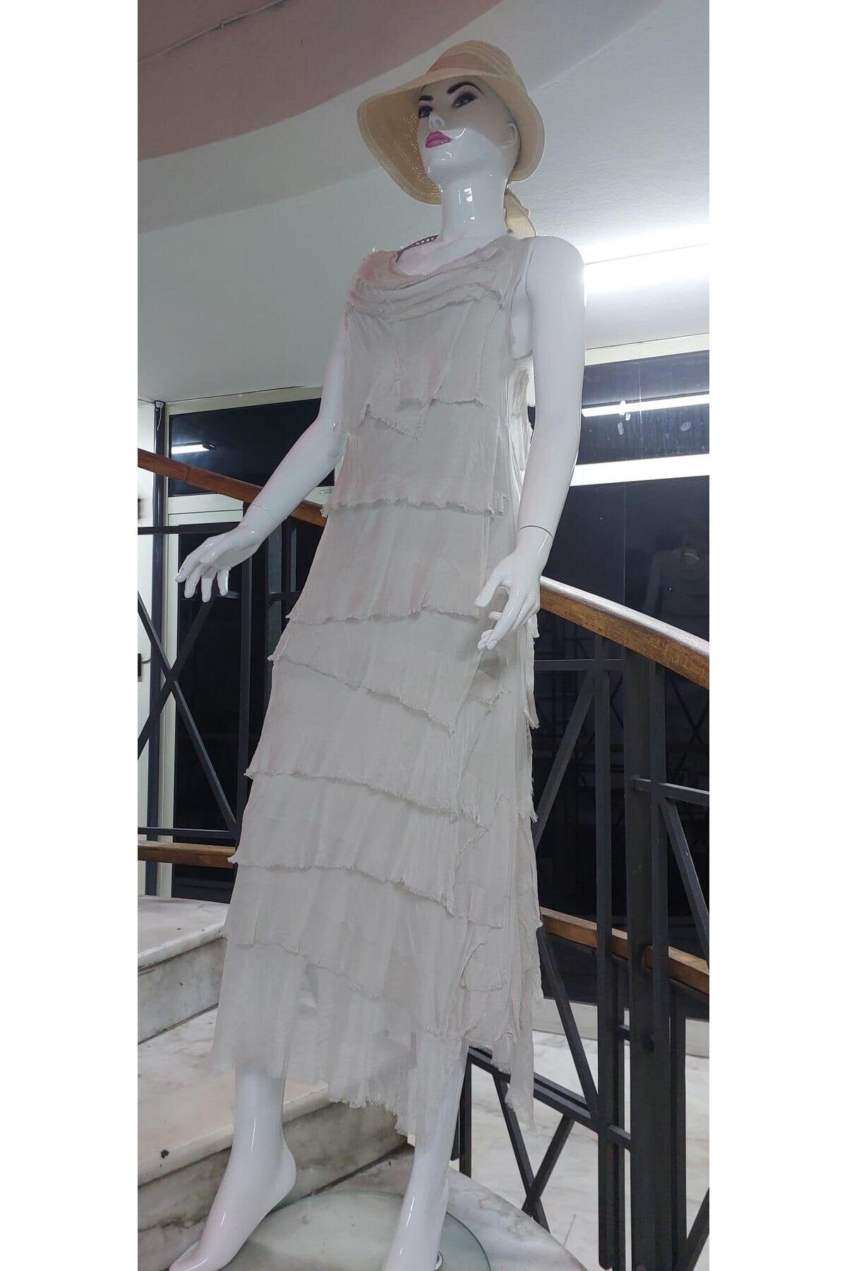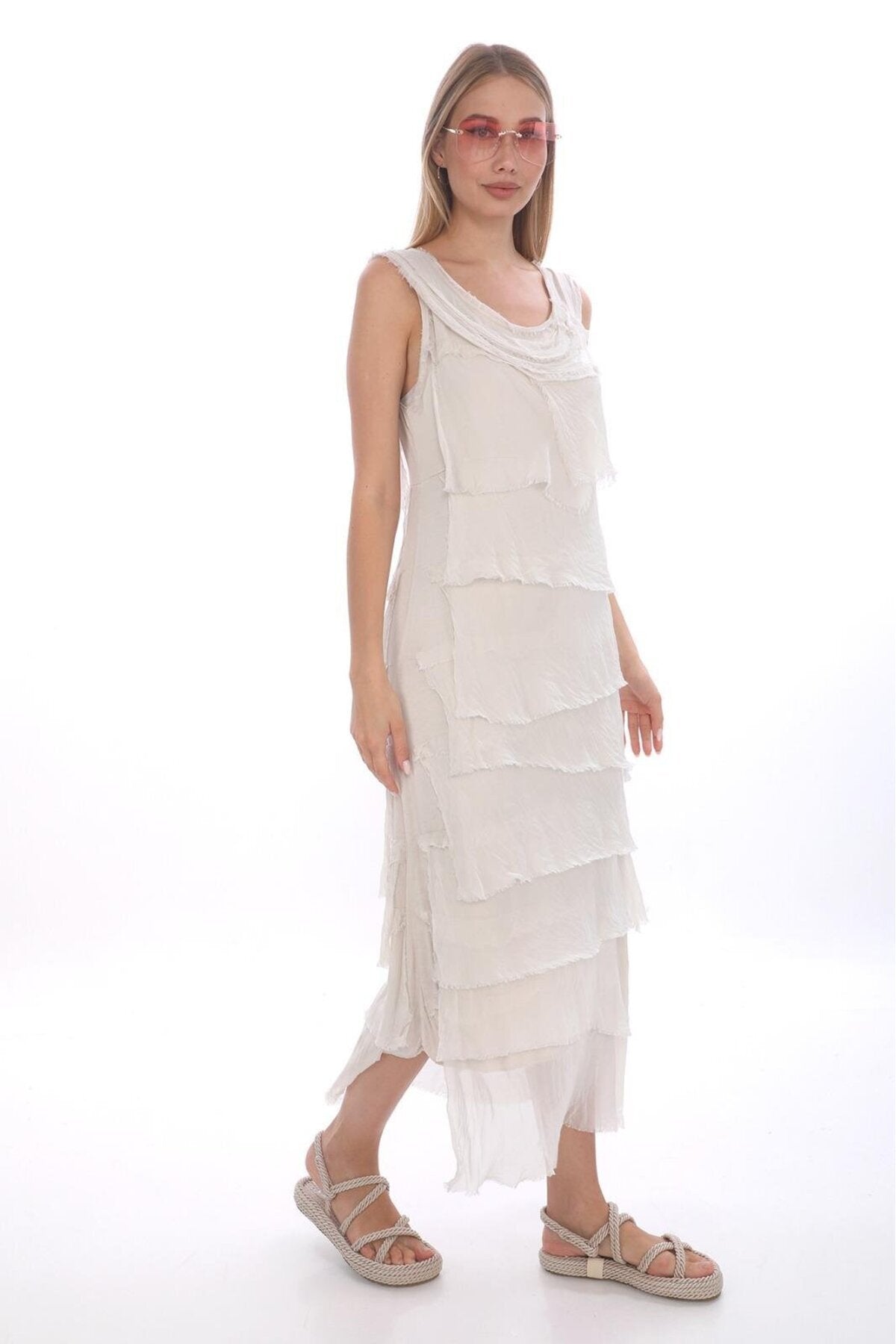 Long Slimming Italian Layered Silk Dress - Cream