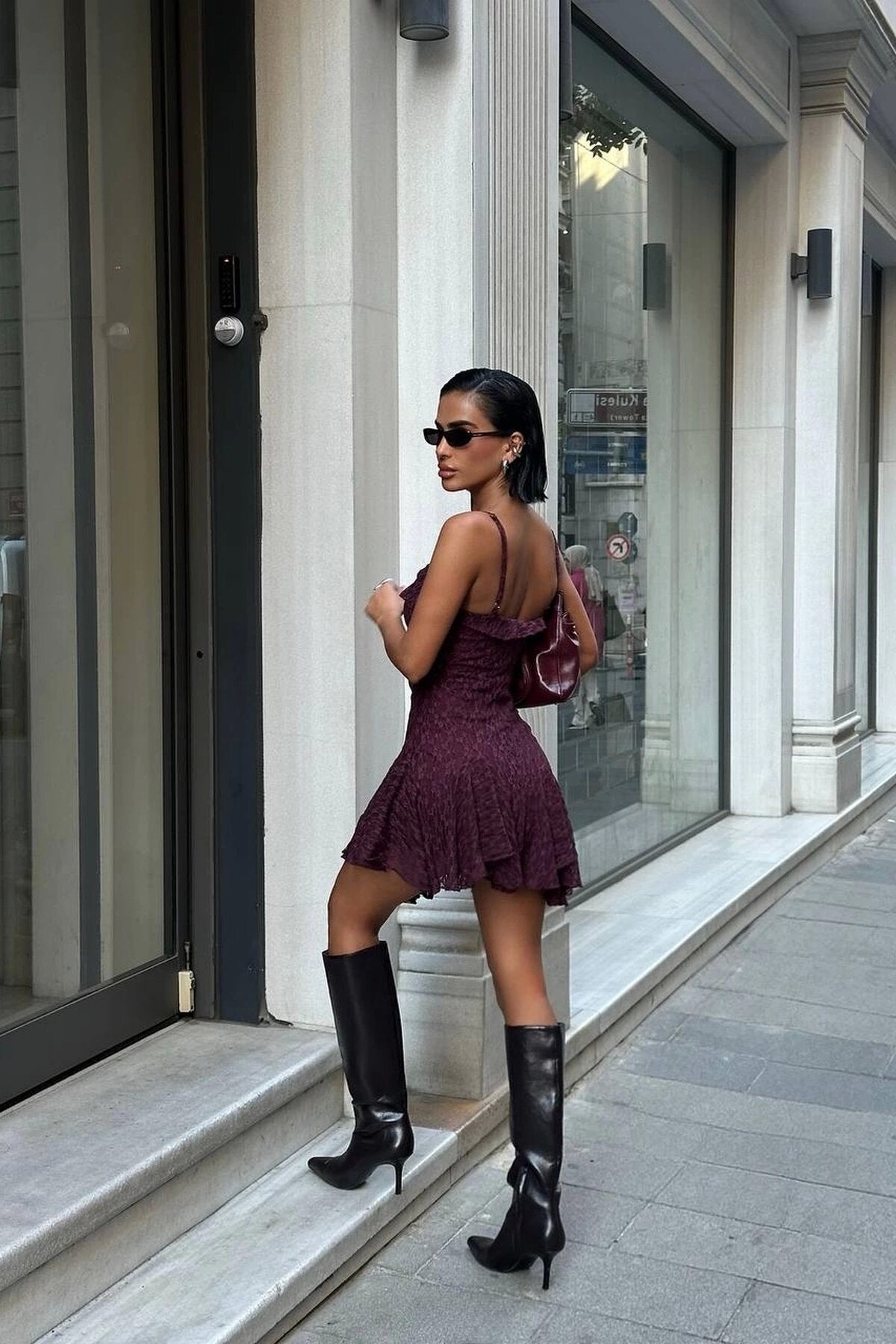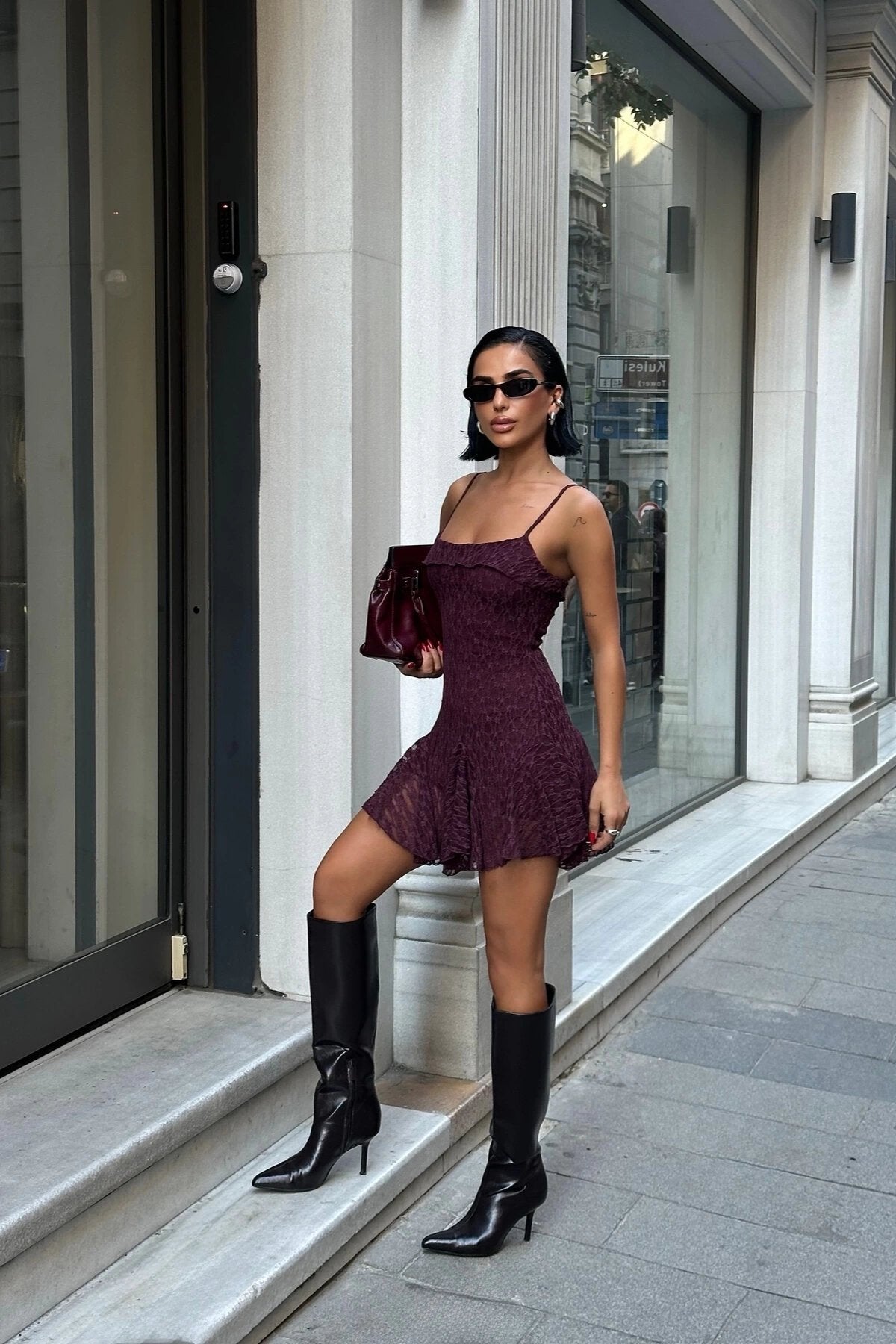 Fabric Type: Woven; Material: Lace; Sleeve Type: Thin Strap; Pattern: Plain; Fit: A-Line Fit; Color: Burgundy; Neckline Type: Strapless Neckline with Straps; Closure Type: No Closure; Sleeve Length: Strapped; Product Detail: Lace Detail; Pocket: No Pockets; Collection: Party; Thickness: Medium; Lining Status: Lined; Length: Mini; Persona: Cool & Comfort; Silhouette: Skater; Occasion: Casual/Daily; Weave Type: Lace; Additional Feature: Body-Hugging; Print/Embroidery Technique: No Print; Belt/Sash Status: No Belt; Sustainability Detail: No; Package Content: 1+; Cup: No Cups; Season: All Seasons; Origin: TR; Box Status: No Box