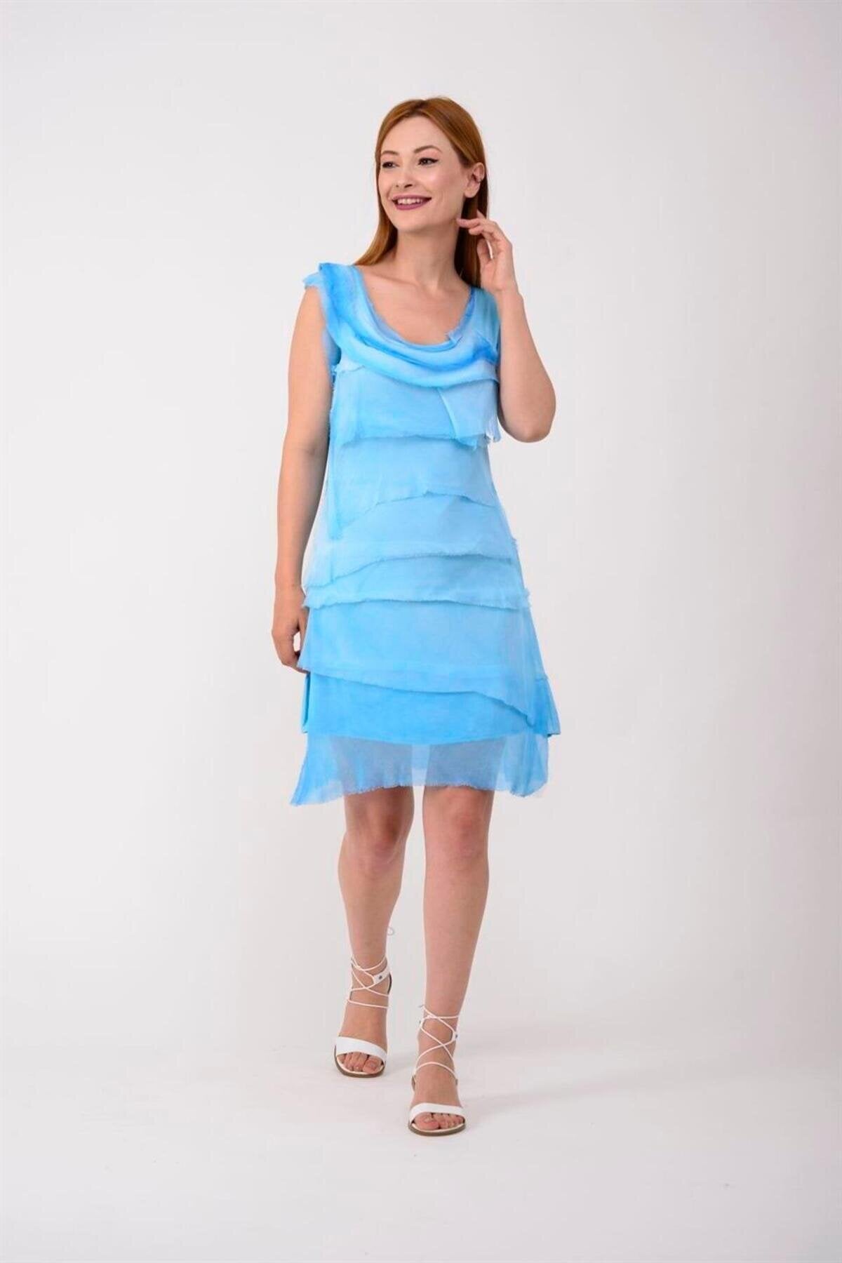 Mini Stone-Washed Silk Tiered Dress - Turquoise