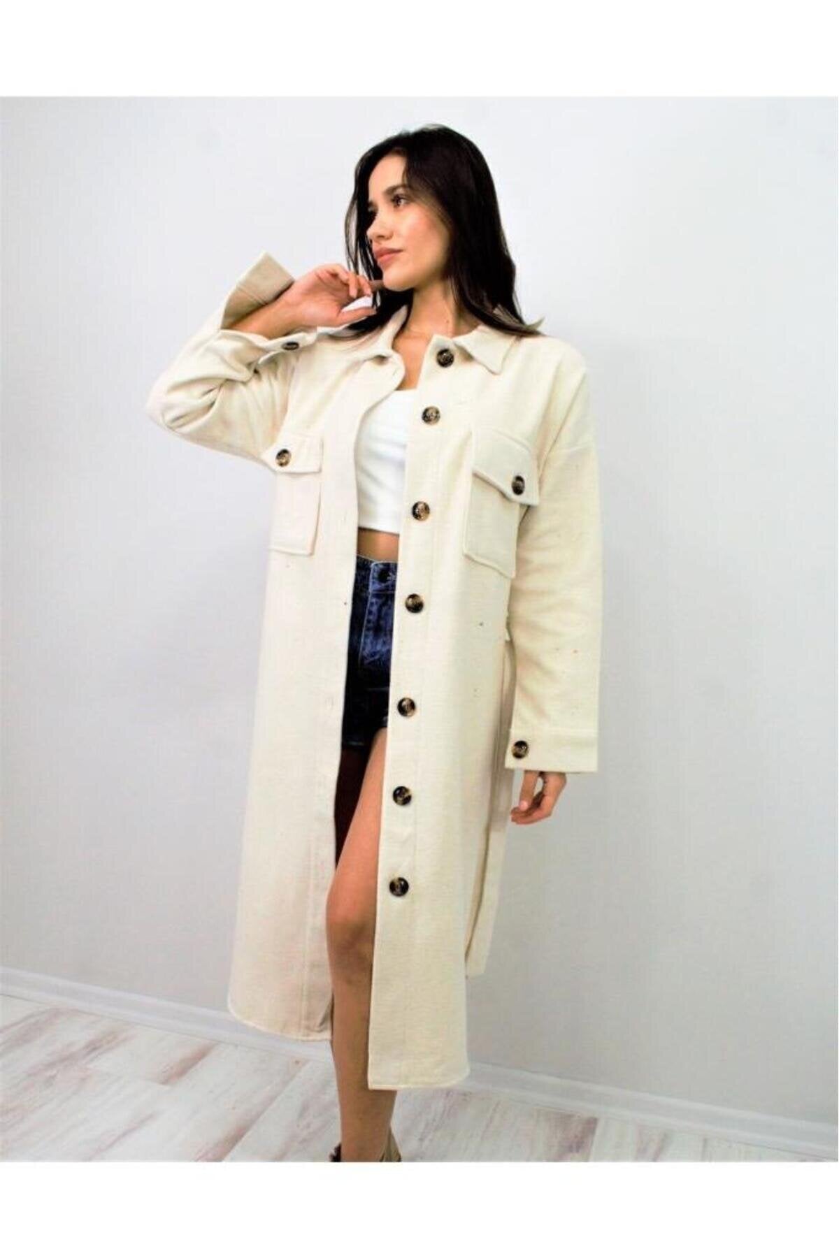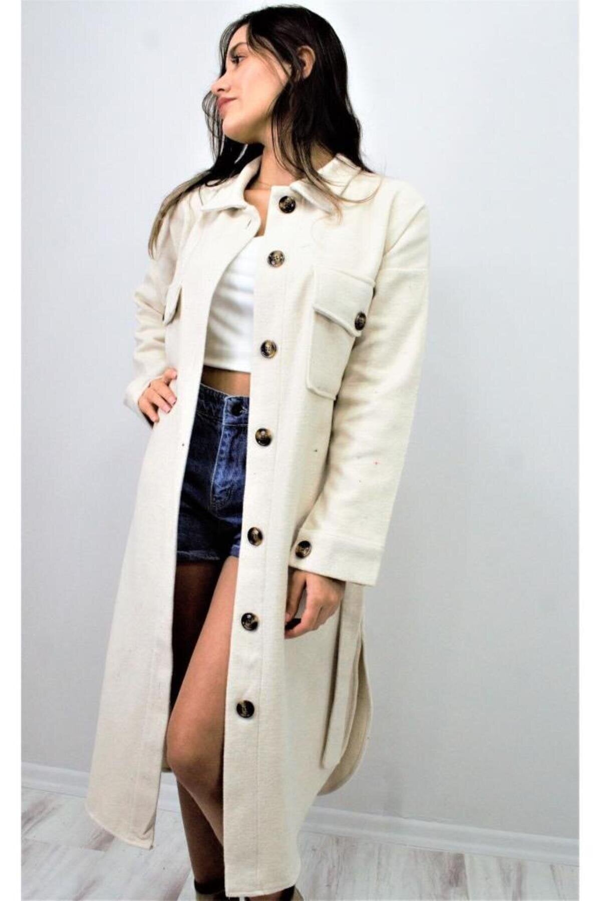 Oversize Midi Cachet Belted Double Pocket Shirt Dress - Ecru