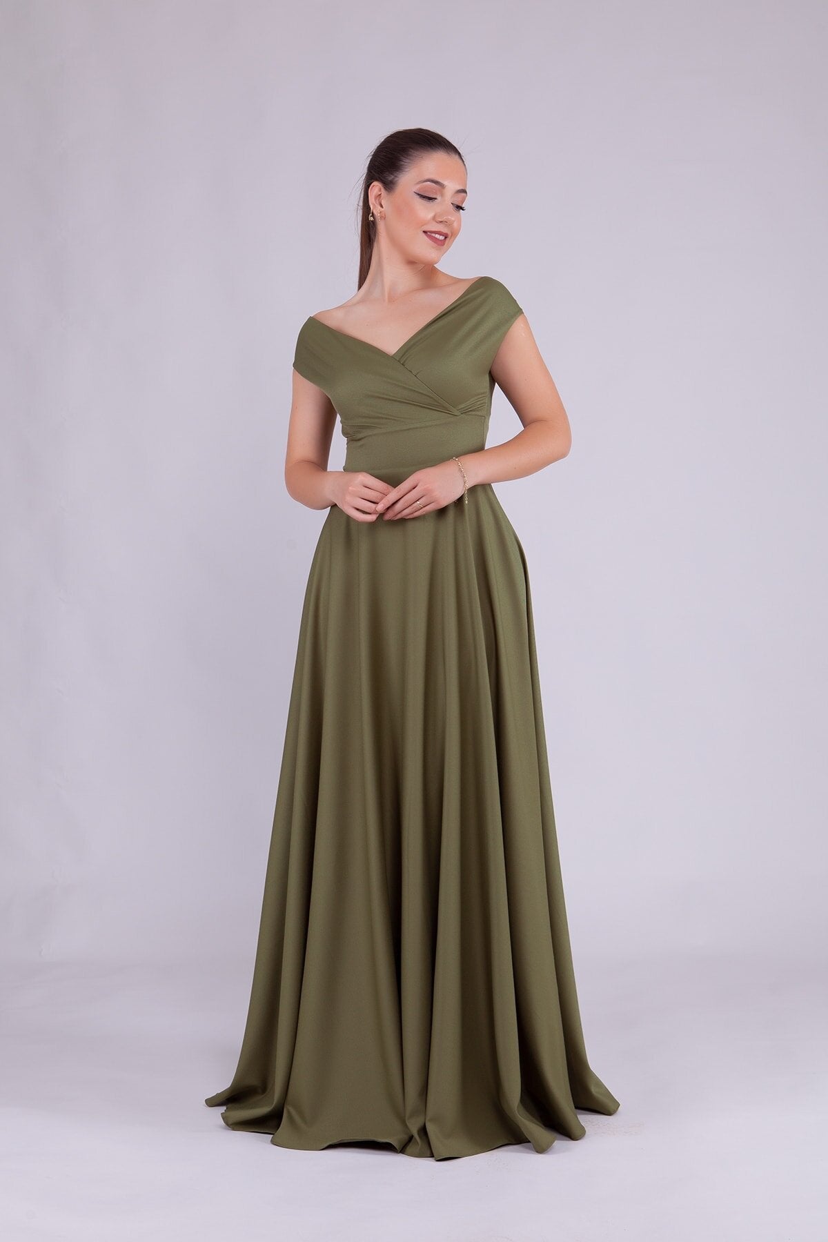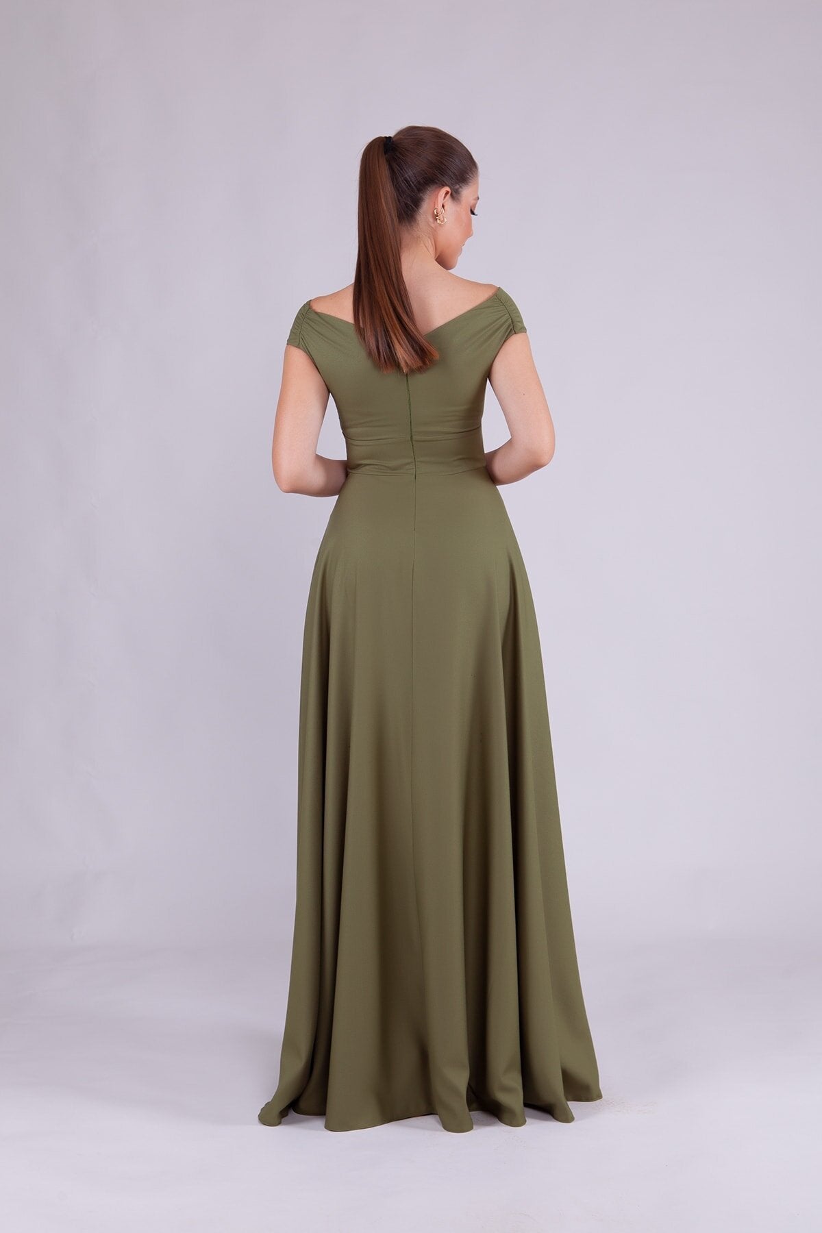 Material: Cotton Polyester; Fabric Type: Woven; Sleeve Type: Sleeveless; Fit: Slim Fit; Pattern: Solid; Neckline: Boat Neck; Color: Khaki; Product Detail: Zipper; Product Type: Plain; Sleeve Length: Sleeveless; Collection: Prom/Bridesmaid; Lining: Unlined; Length: Maxi; Occasion: Wedding; Silhouette: Mermaid; Weave Type: Crepe; Pockets: No Pockets; Additional Feature: No Additional Features; Belt: No Belt; Closure Type: Zipper Closure; Sustainability Detail: Yes; Persona: Fashion Forward; Origin: TR; Package Contents: Single Piece