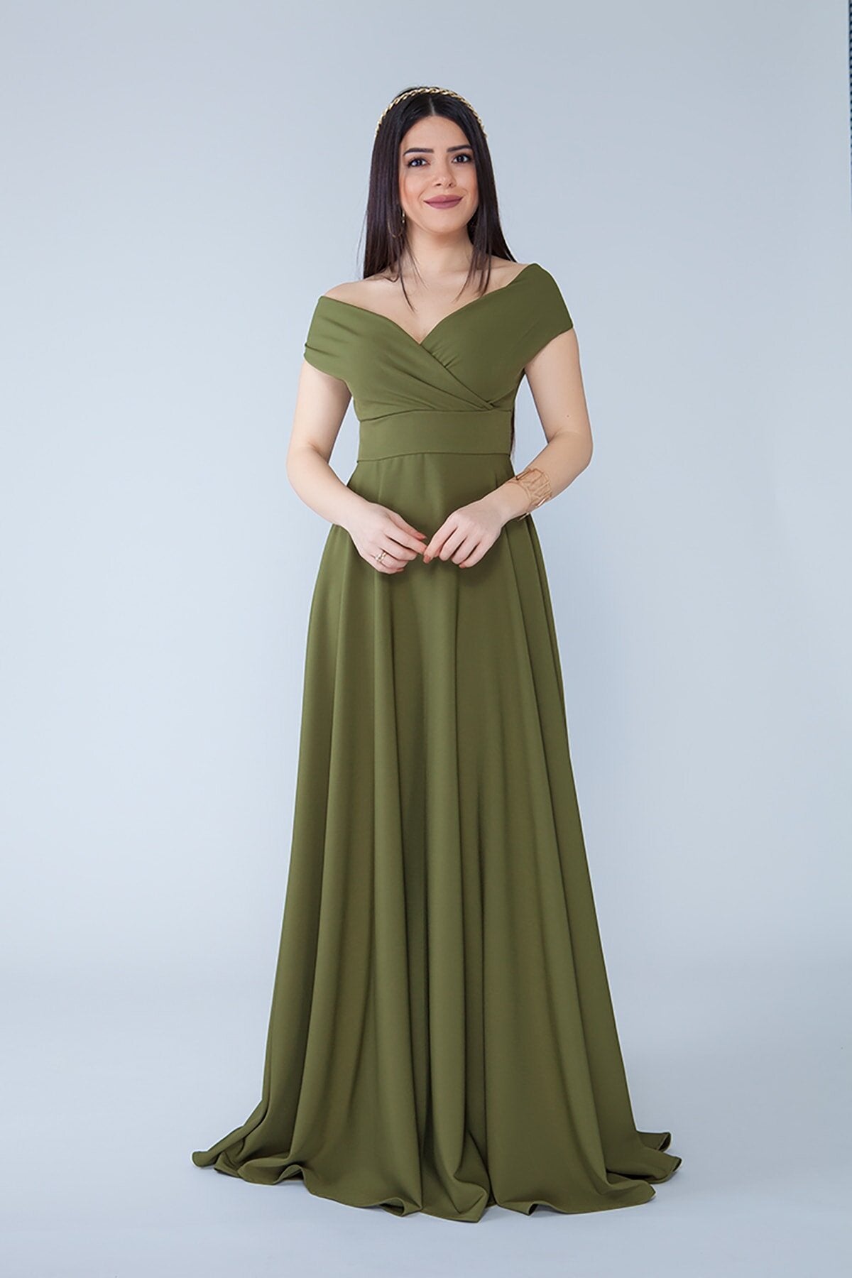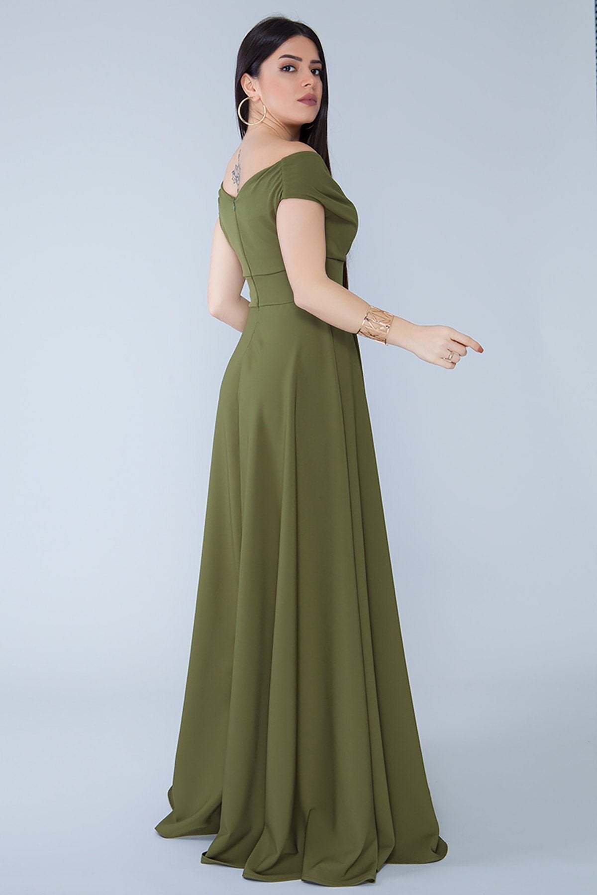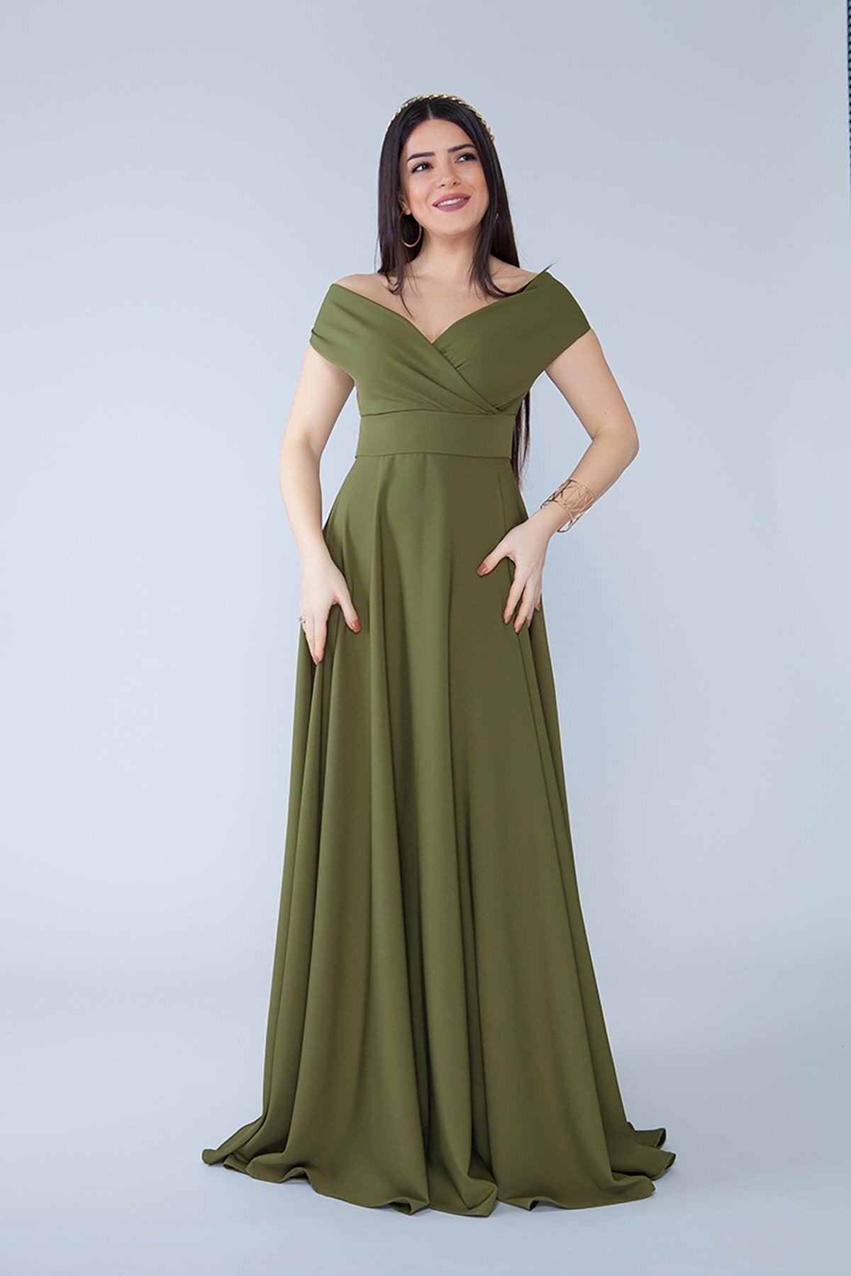 Material: Woven, Fabric Type: Woven, Sleeve Type: Drop Shoulder, Fit: Regular, Pattern: Solid, Neckline: Wrap, Color: Khaki, Product Detail: Zipper, Product Type: Solid, Sleeve Length: Sleeveless, Collection: Prom/Bridesmaid, Lining: Unlined, Length: Maxi, Occasion: Wedding, Silhouette: A-line, Weave Type: Tulle, Pockets: No Pockets, Additional Features: Not Available, Belt/Sash Status: No Belt/Sash, Closure Type: Zipper, Sustainability Detail: Yes, Persona: Fashion Forward, Origin: TR, Box Status: No Box