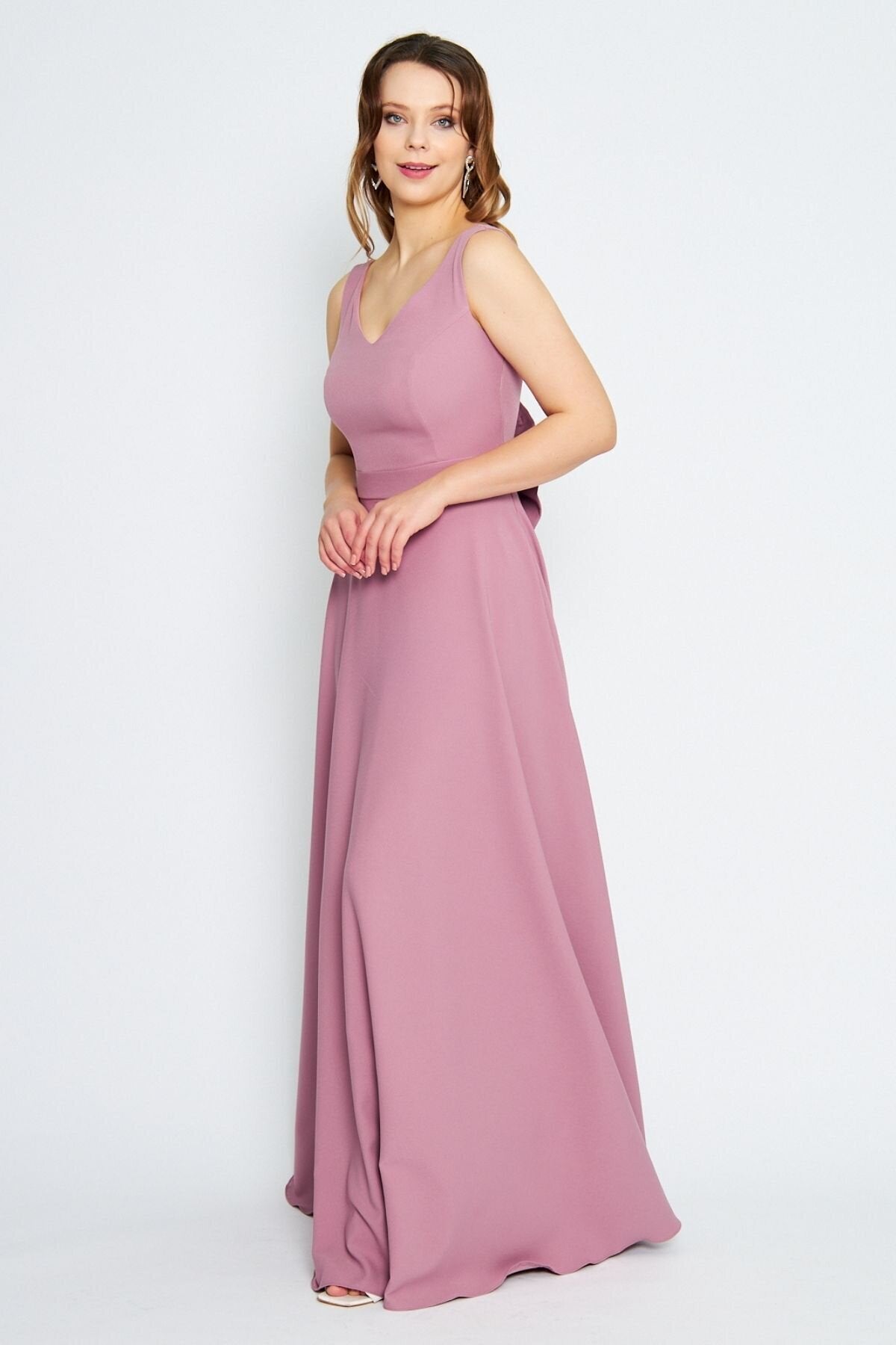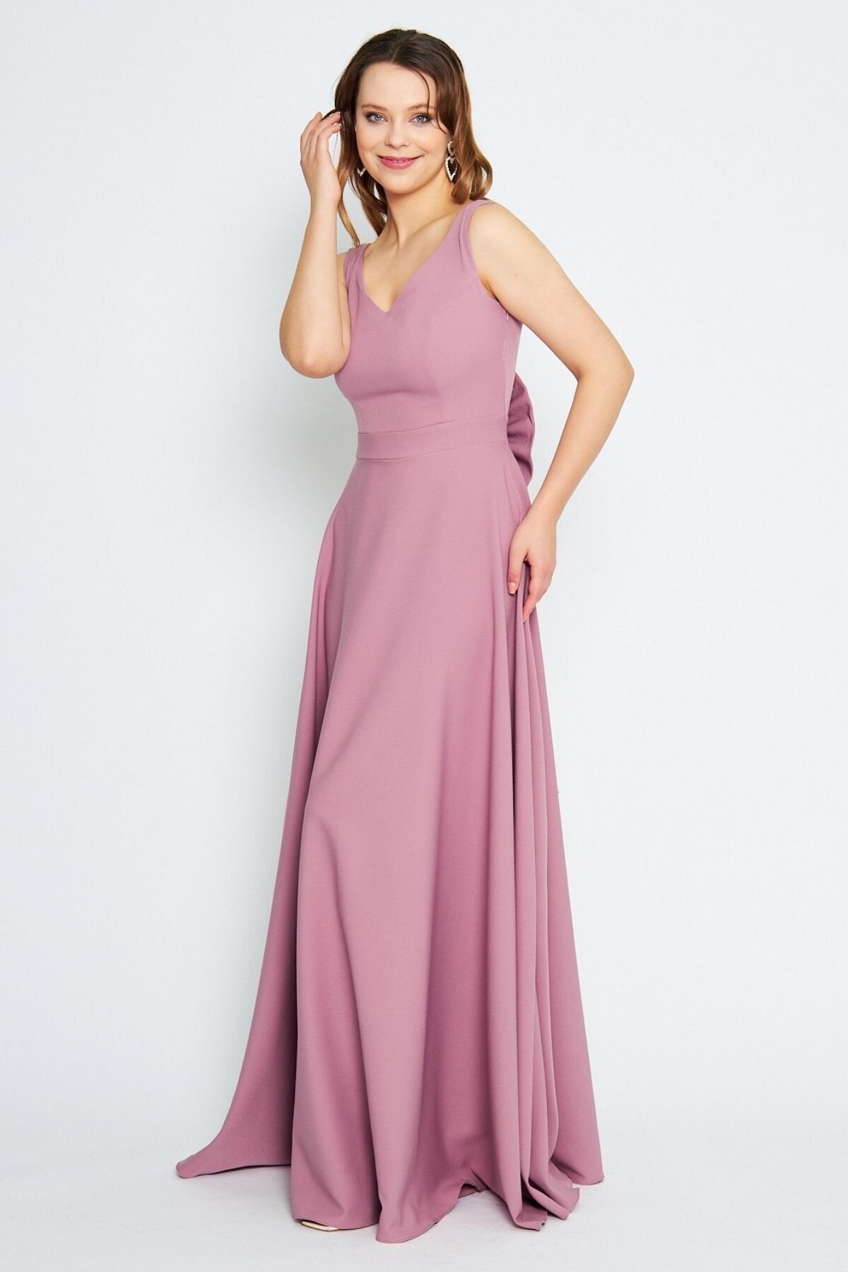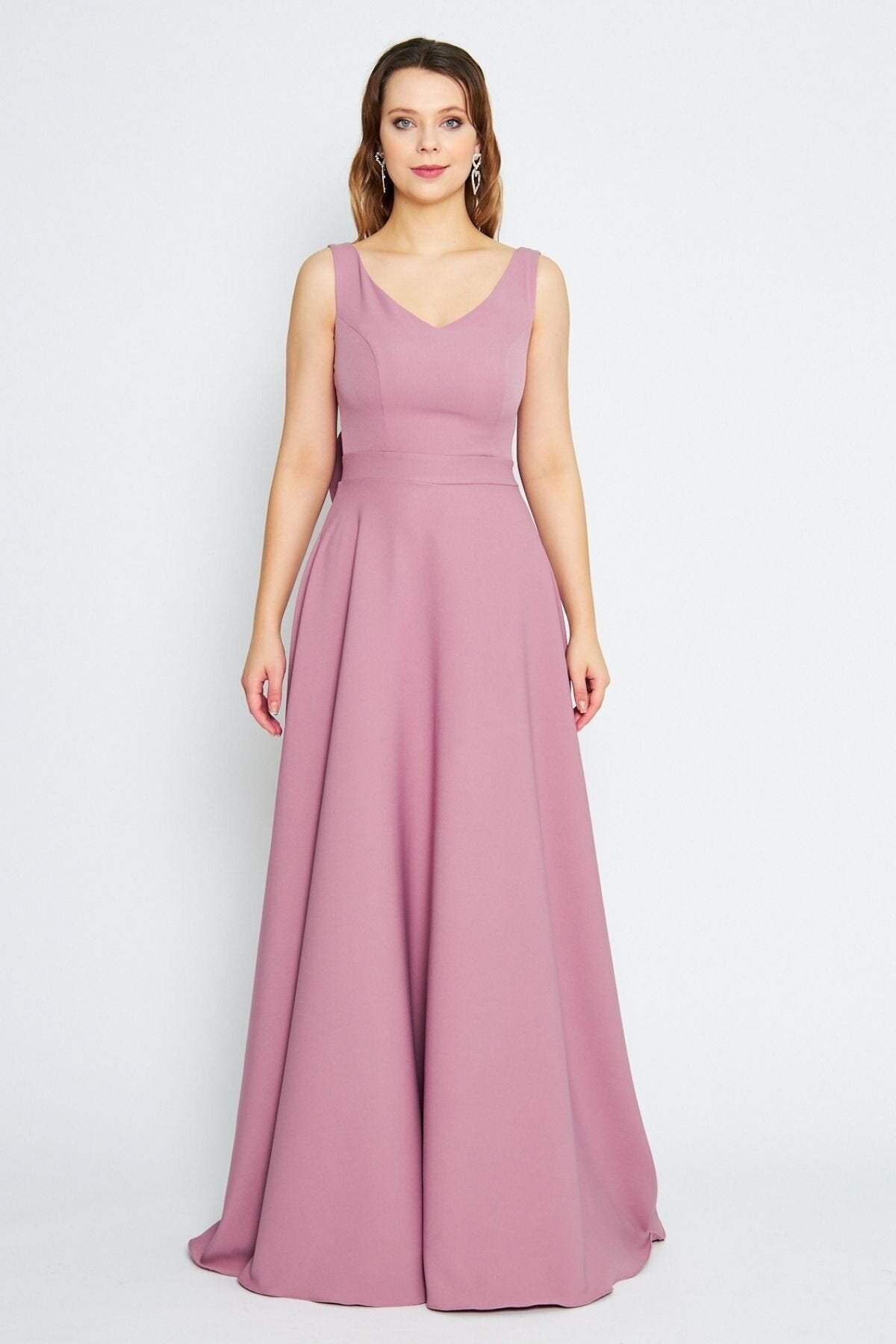 Long Flared Bow-Back Evening Dress - Dusty Rose