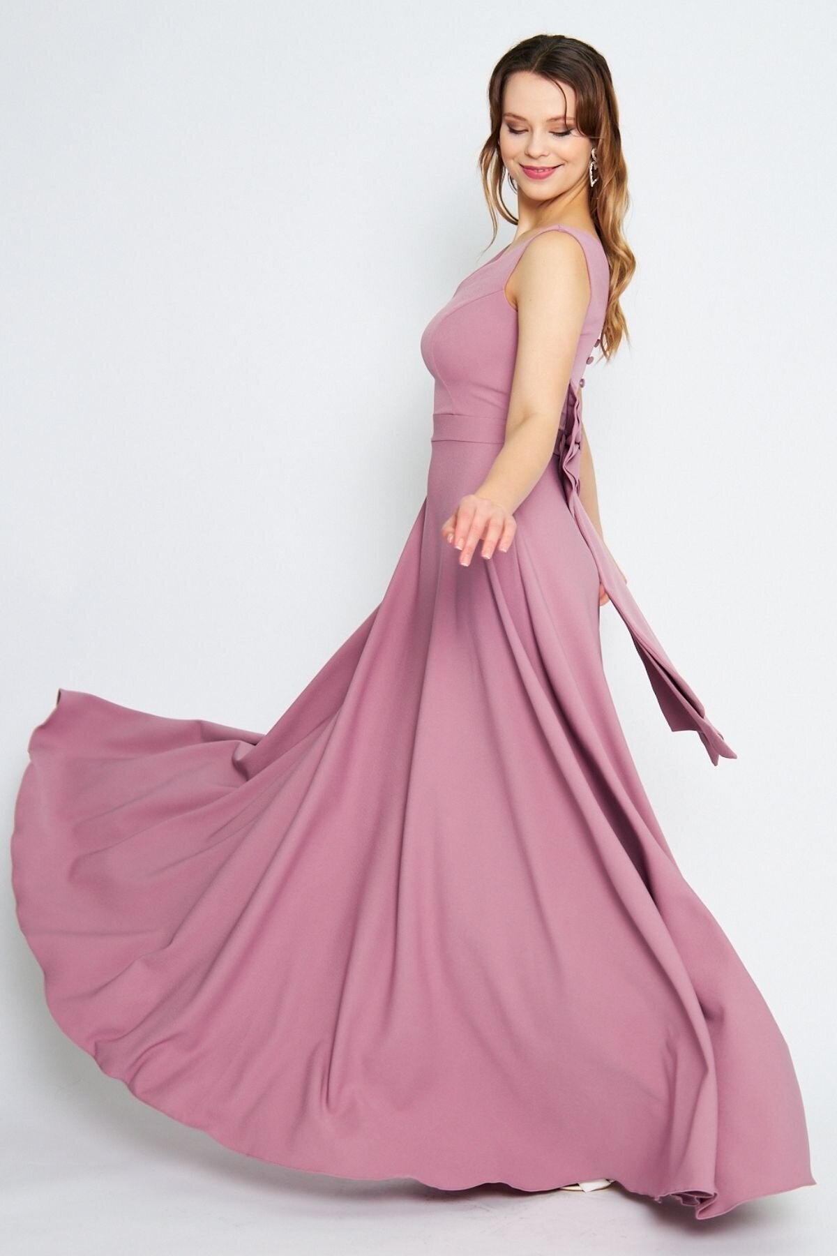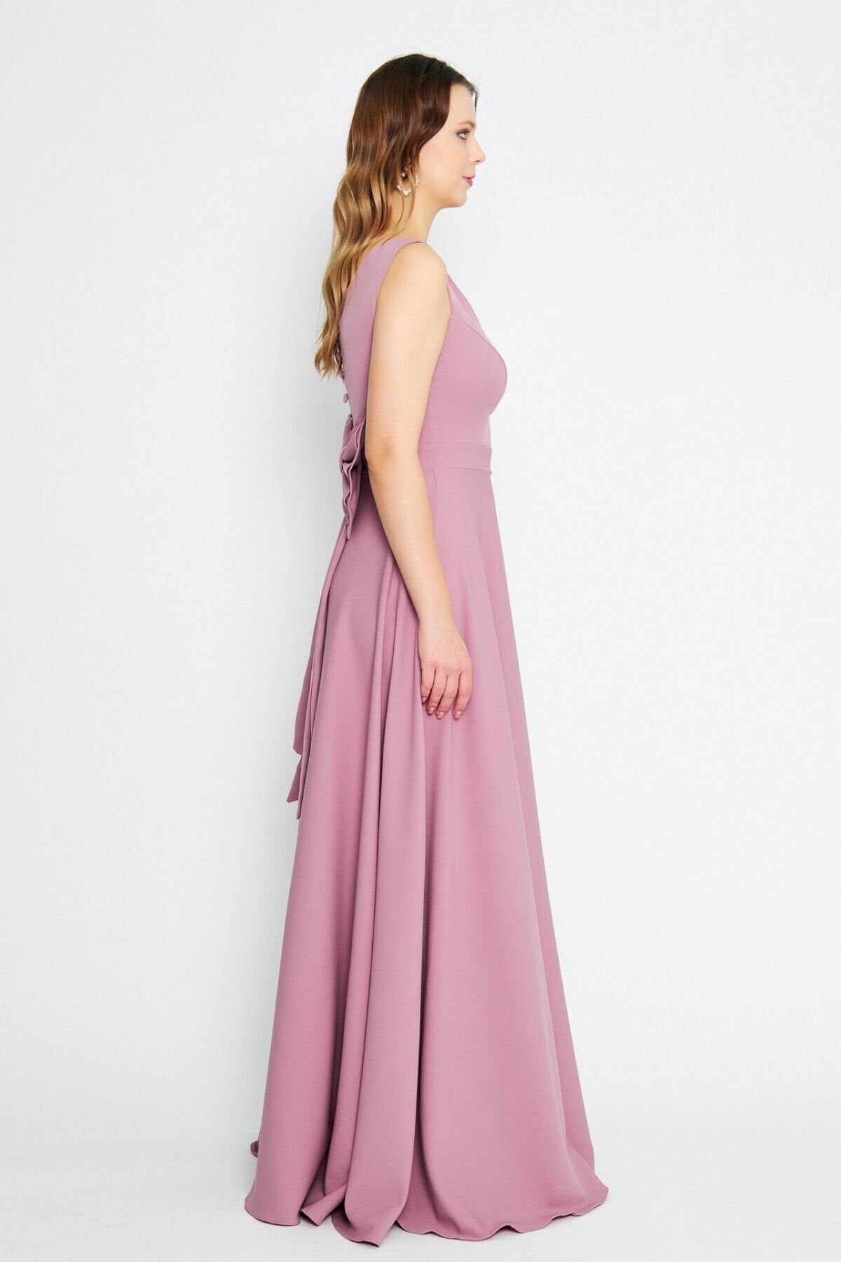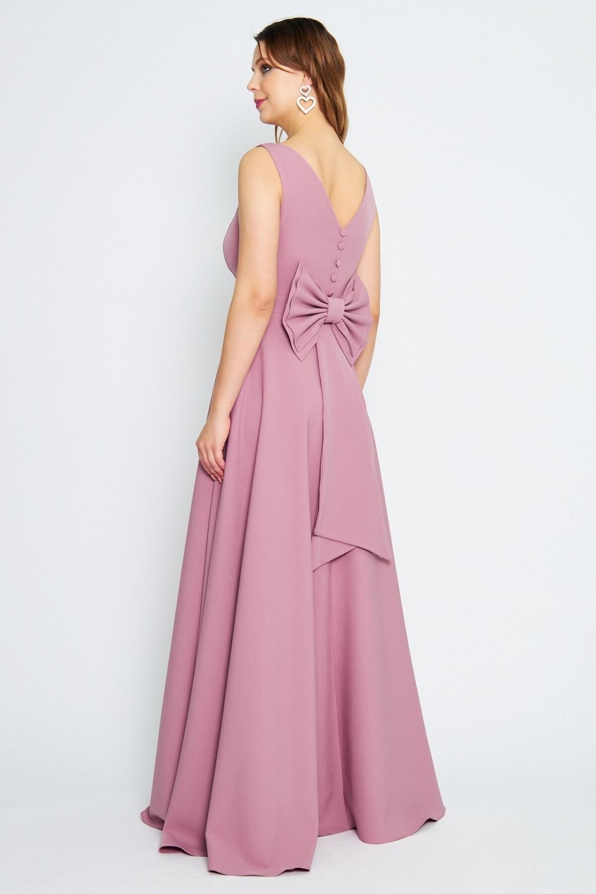 Long Flared Bow-Back Evening Dress - Dusty Rose