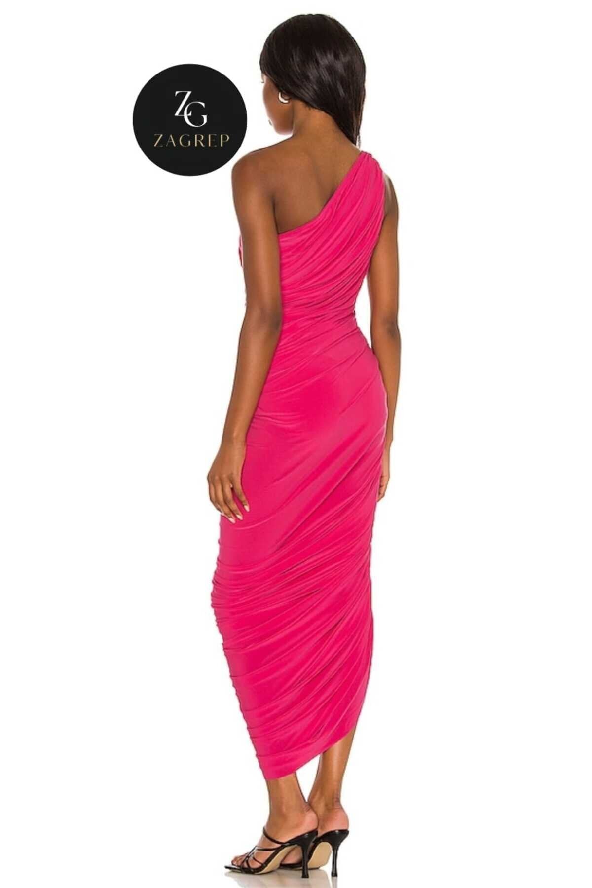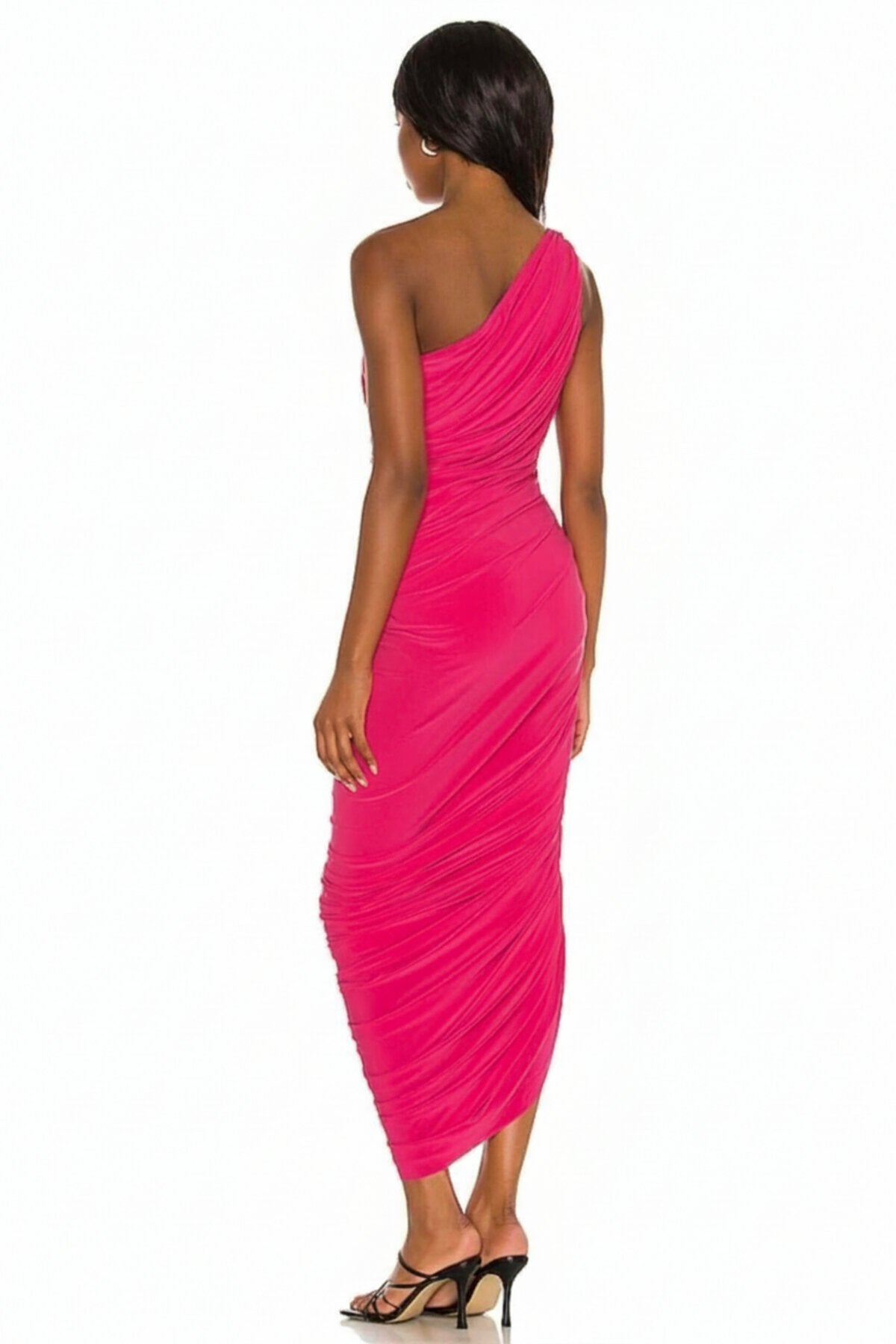 Material: Cotton Polyester, Fabric Type: Woven, Sleeve Type: Sleeveless, Fit: Slim Fit, Pattern: Plain, Collar Type: Asymmetrical Neck, Color: Pink, Product Detail: Lined, Product Type: Plain, Sleeve Length: Sleeveless, Collection: Design, Lining Status: Lined, Length: Midi, Occasion: Day / Night, Silhouette: Slim, Weave Type: Sandy, Pockets: No Pockets, Additional Feature: Non-Sheer, Belt/Sash Status: No Belt, Closure Type: Zippered, Sustainability Detail: Yes, Persona: Sexy, Origin: TR, Box Status: Boxed, Season: All Seasons, Package Contents: 1+