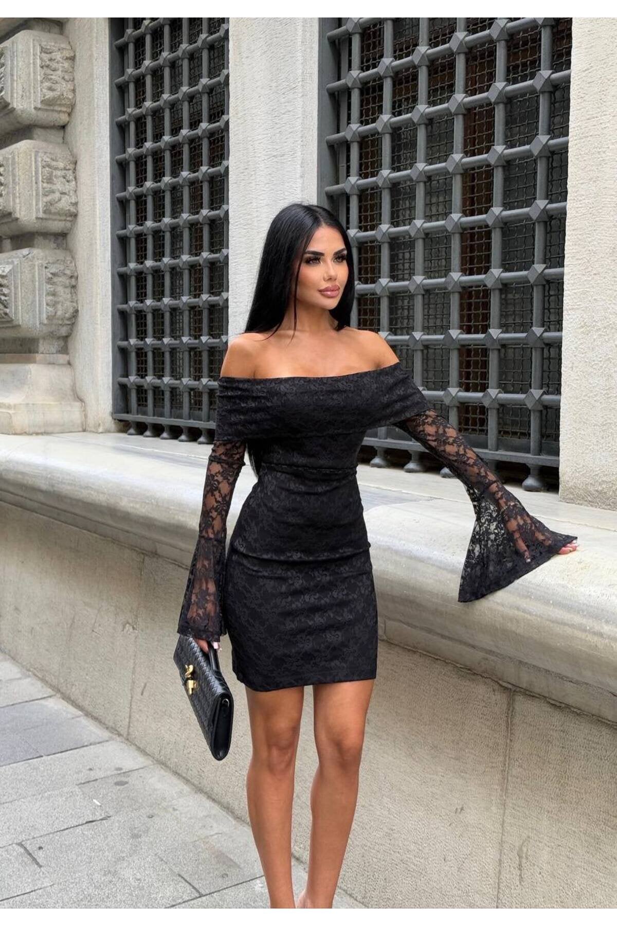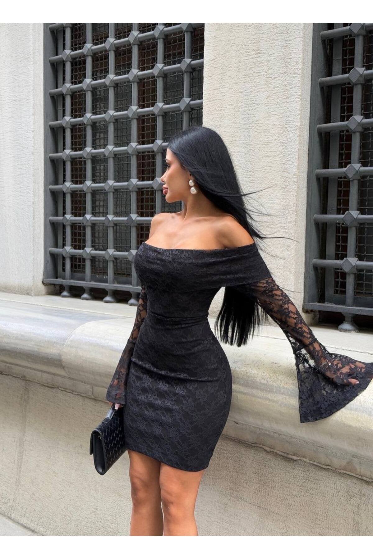Step into the spotlight with this stunning black mini dress, a masterpiece of elegant lace and a captivating silhouette. Designed to captivate, its intricate details promise a truly unforgettable look that perfectly blends modern allure with timeless grace.