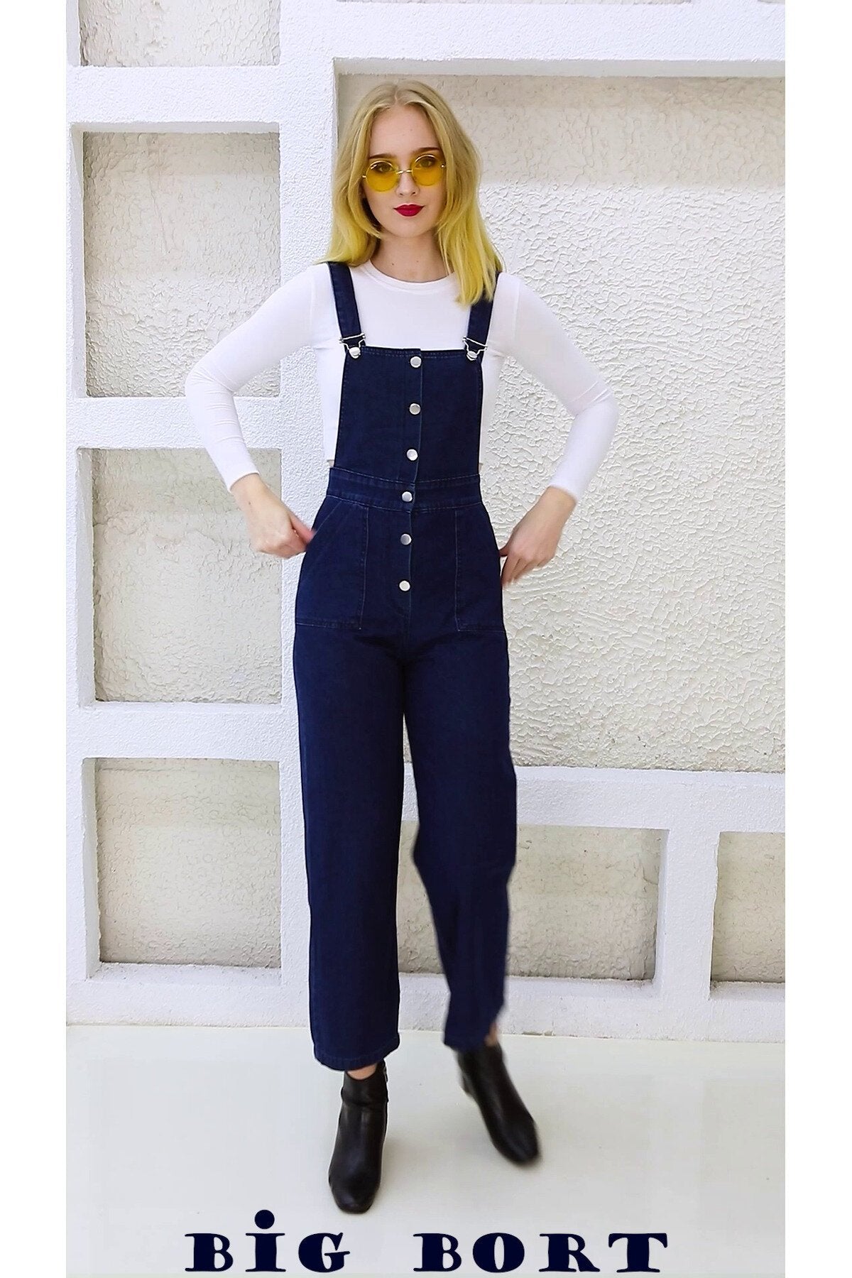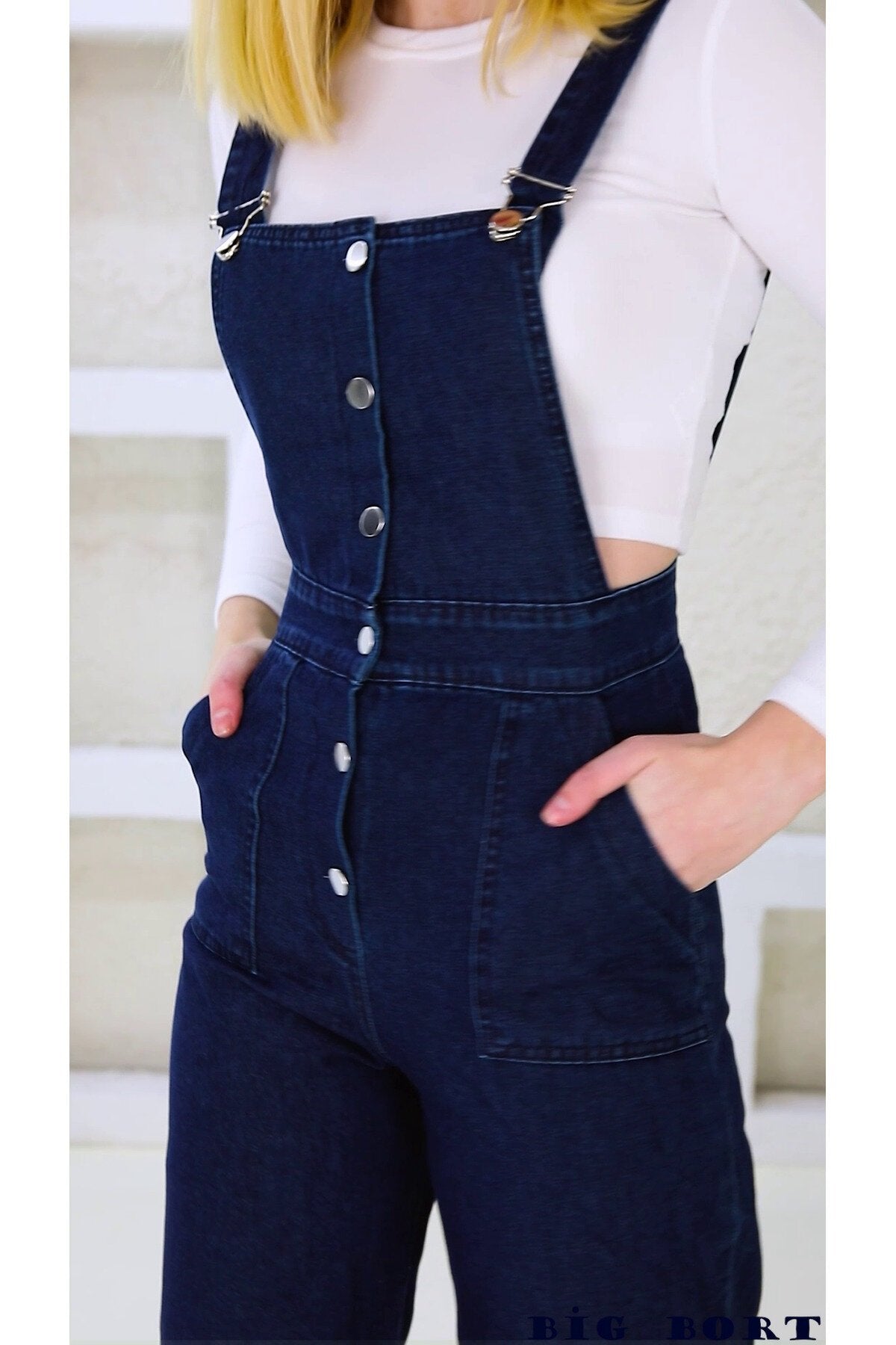 Closure Type: Buttoned; Sleeve Type: Sleeveless; Fit: Oversize; Fabric Type: Denim; Color: Navy Blue; Material: Fabric; Neckline Type: Square Neck; Product Detail: Buttoned; Pocket: Double-pocketed; Pattern: Plain; Sleeve Length: Sleeveless; Product Type: Plain; Belt/Sash Status: Beltless; Style: Trend; Sustainability Detail: Organic; Length: Standard; Leg Type: Straight Leg; Origin: TR;