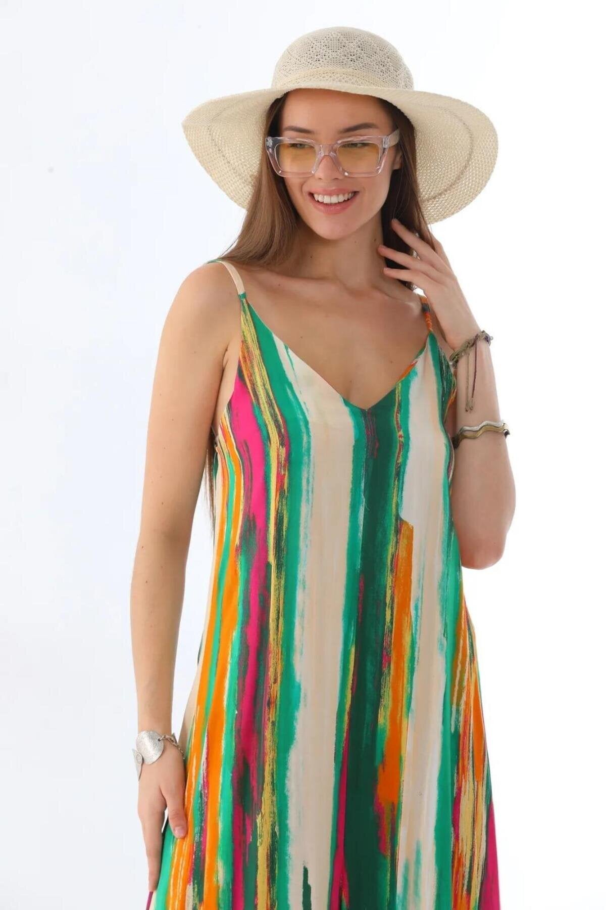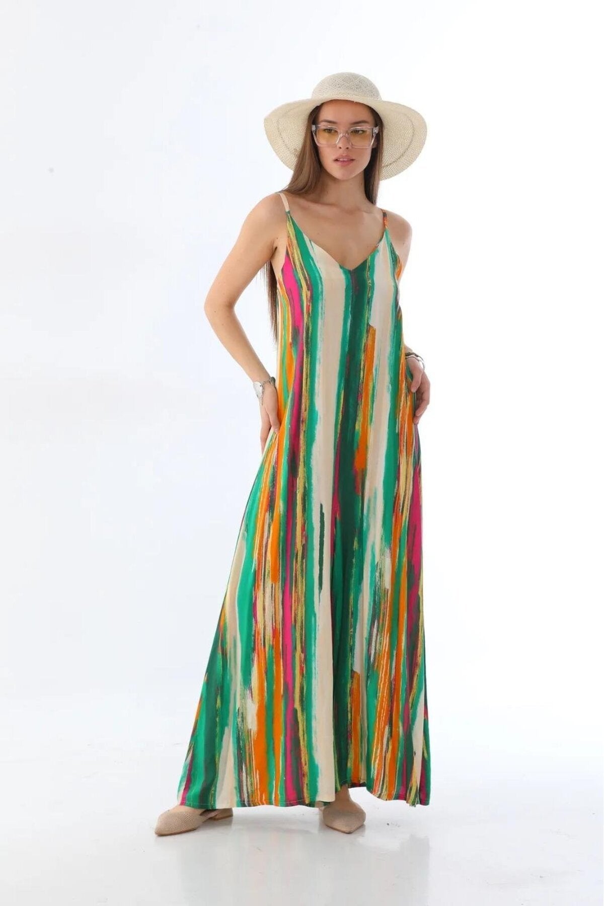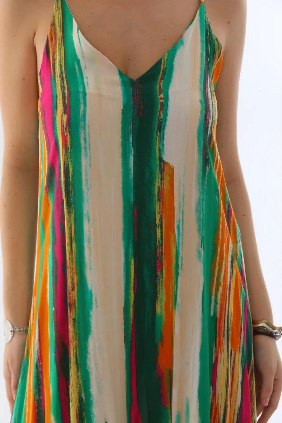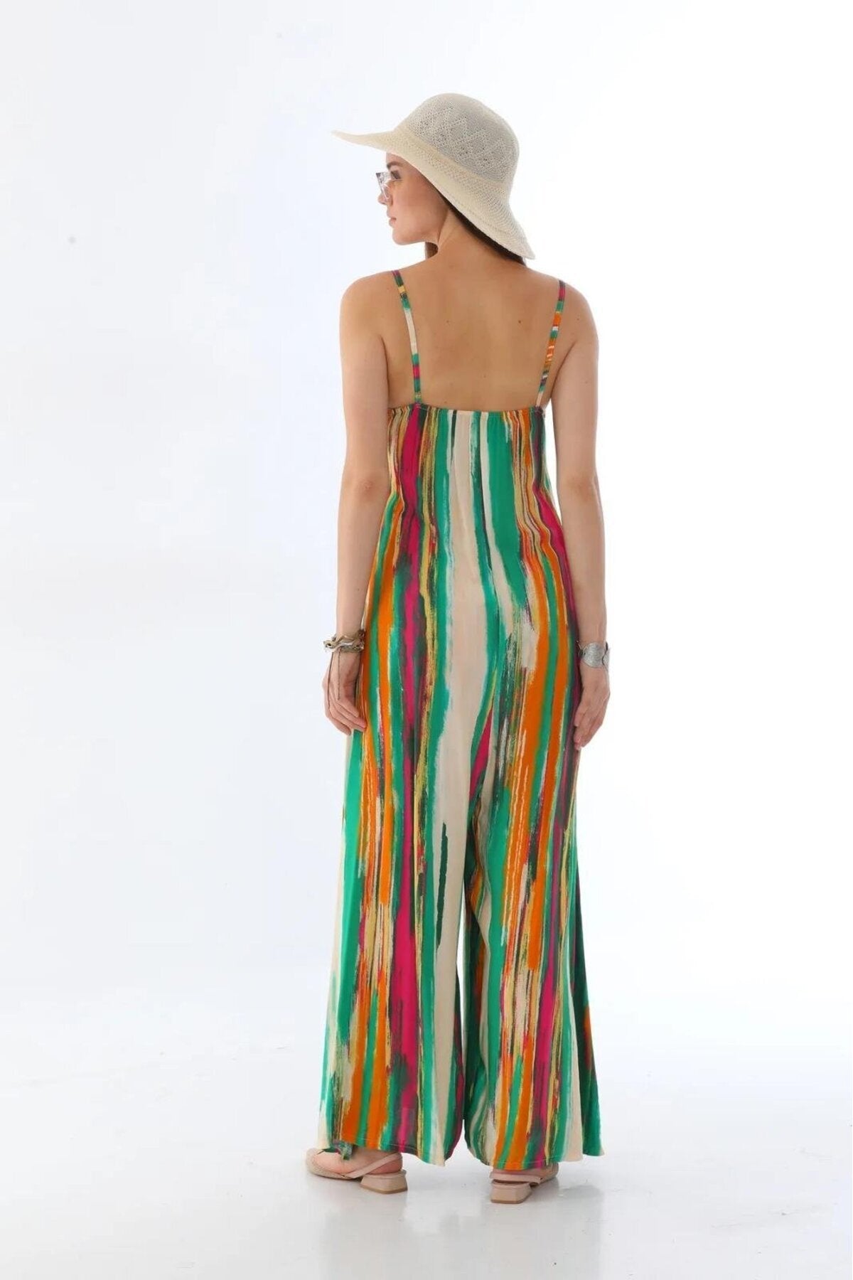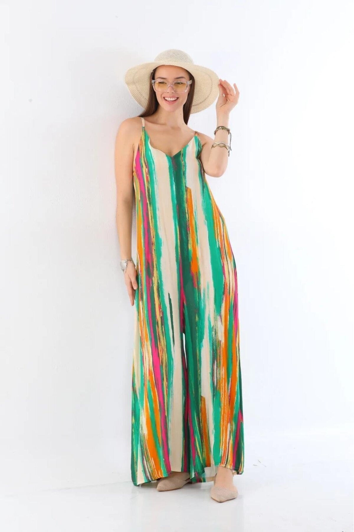 Italian Digital Splash Pattern V Neck Jumpsuit - Green