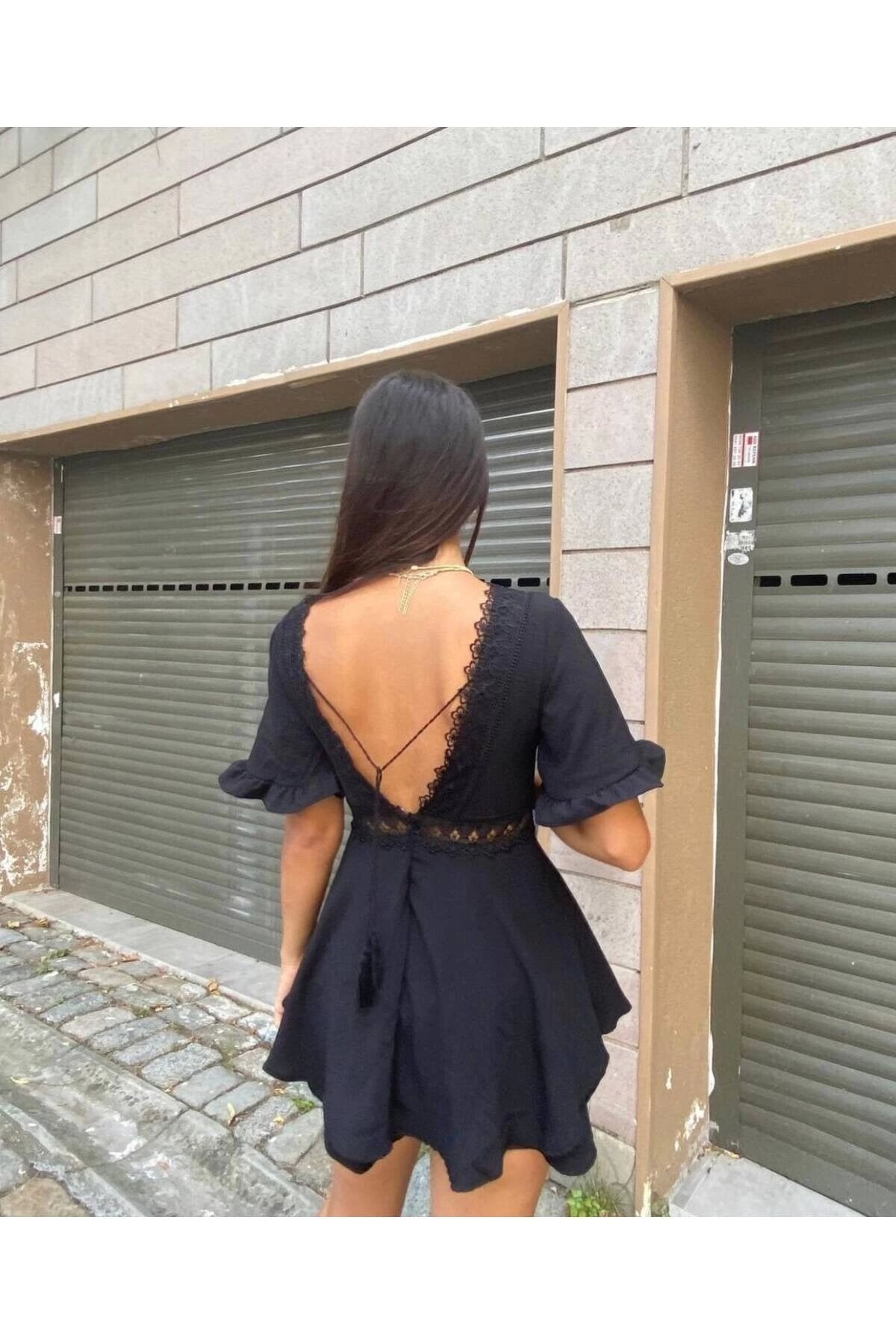 Sleeve Type: Short Sleeve, Closure Type: Zippered, Fit: Regular, Cup: Unpadded, Fabric Type: Woven, Color: Black, Material: Lace, Neckline: V-Neck, Pocket: Pocketless, Pattern: Plain, Sleeve Length: Short, Product Type: Plain, Weave Type: Aerobin, Belt/Sash Status: Beltless, Occasion: Evening, Persona: Sexy, Sustainability Detail: No, Length: Mini, Hem Type: Straight Hem, Additional Feature: Non-sheer, Silhouette: Relaxed, Season: Summer, Origin: TR, Box Status: No Box, Package Content: Single