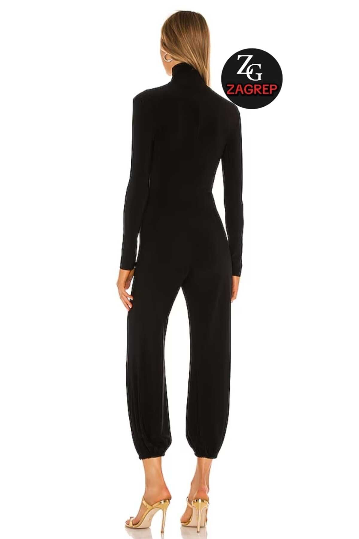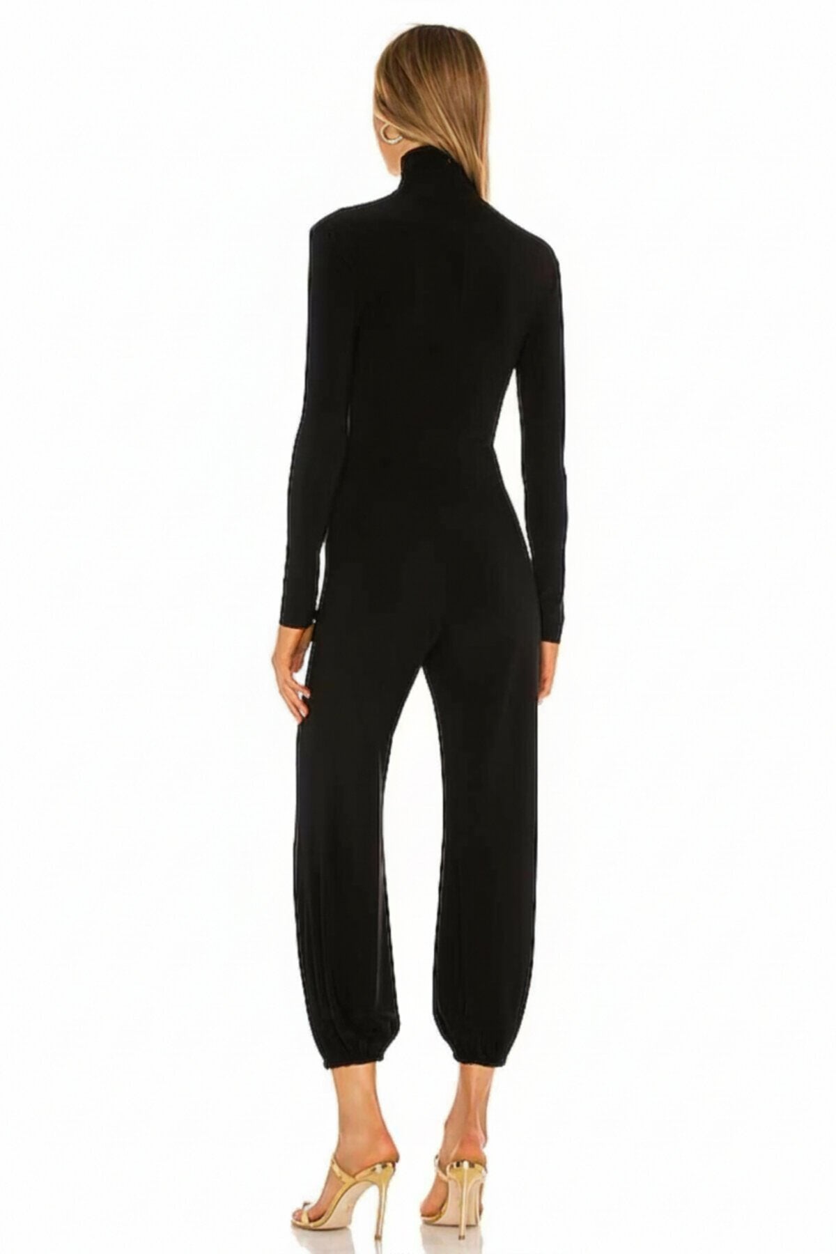 Silk Jersey Mock Neck Zippered Jumpsuit - Black
