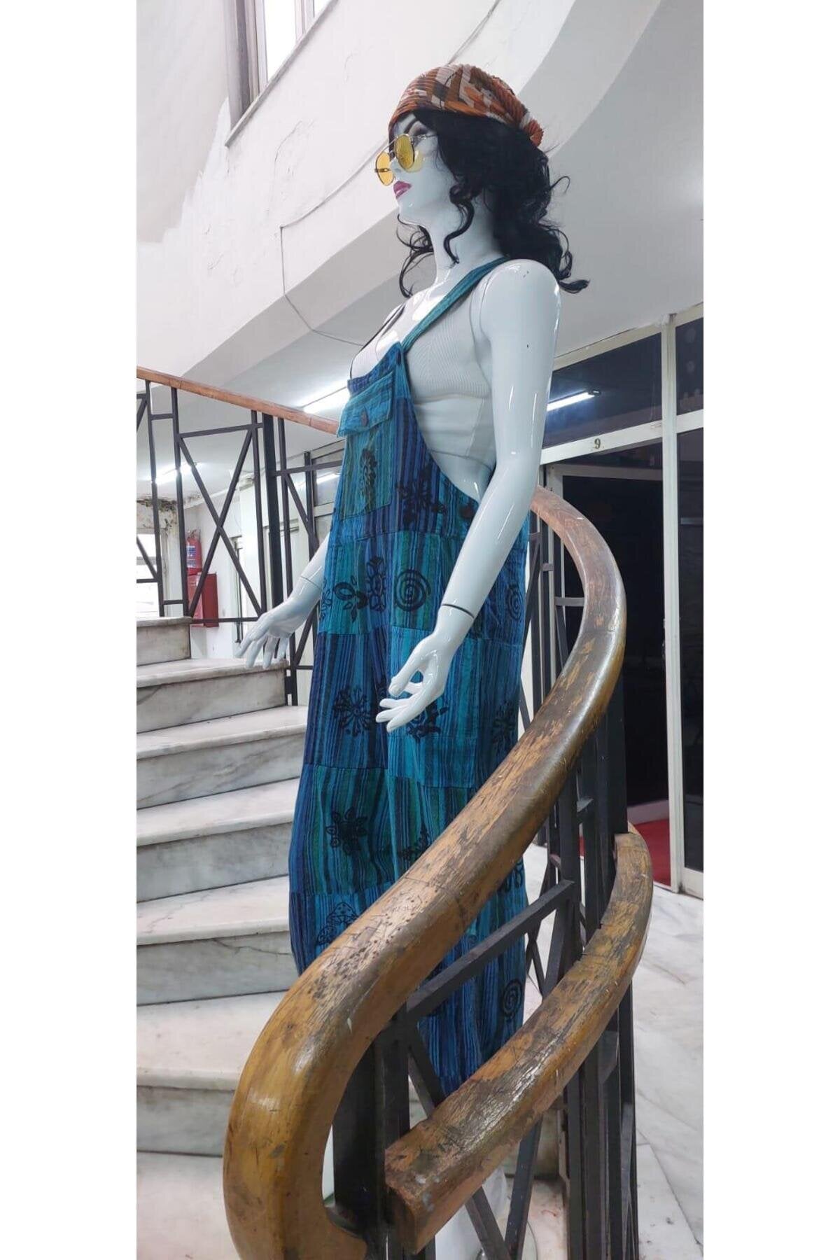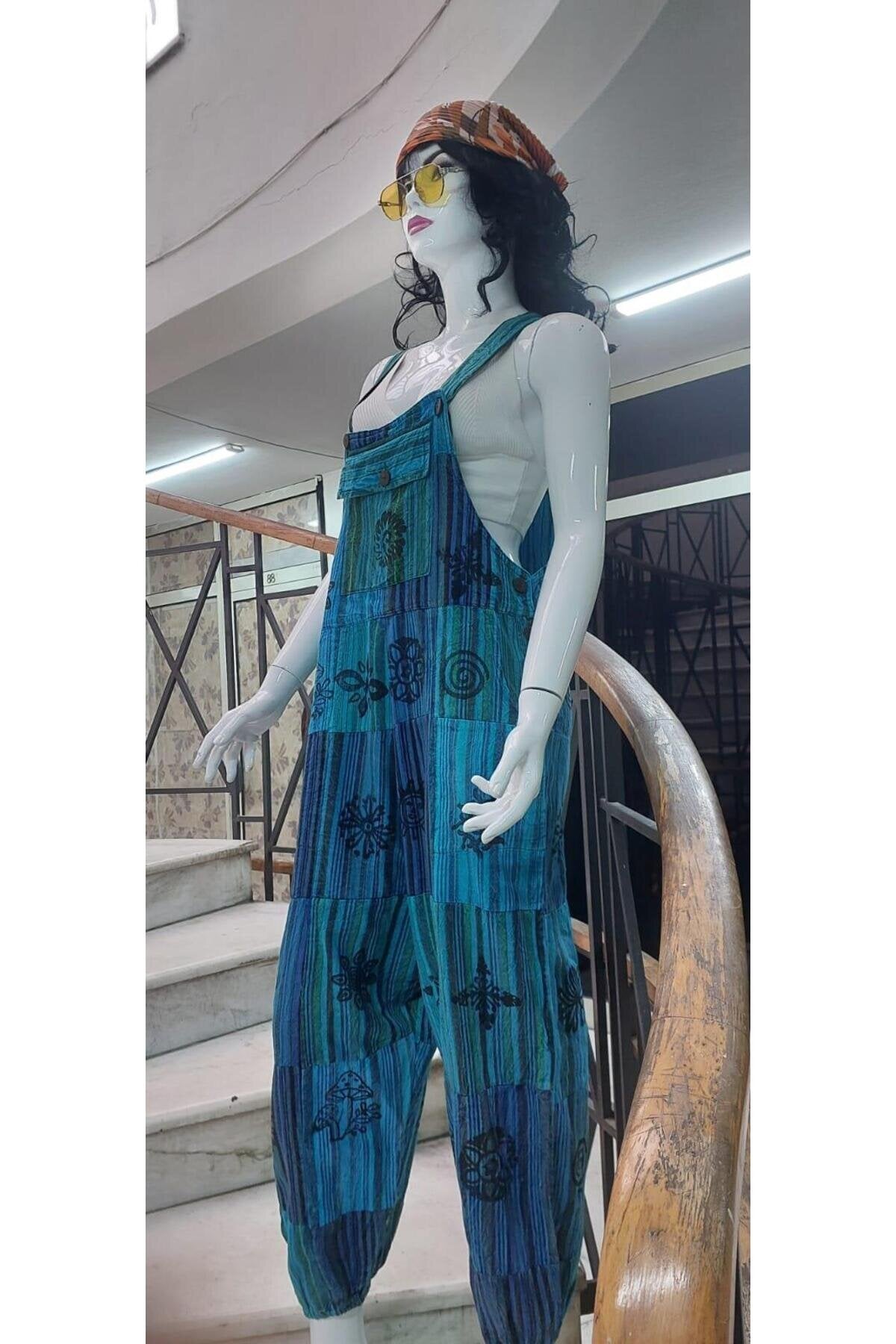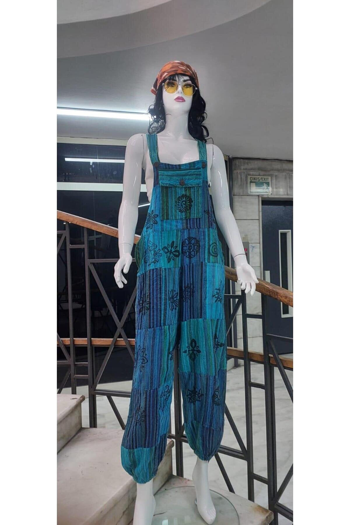Closure Type: No Closure, Sleeve Type: Strappy, Fit: Oversize, Fabric Type: Denim, Color: Multicolor, Material: Cotton, Neckline: Square Neck, Pocket: Two Pockets, Pattern: Patterned, Sleeve Length: Sleeveless, Product Type: Printed, Belt/Sash Status: No Belt, Style: Trend, Sustainability Detail: Yes, Length: Standard, Leg Type: Wide Leg, Additional Feature: Washed, Origin: TR