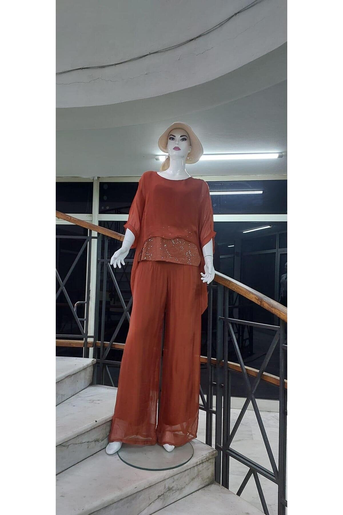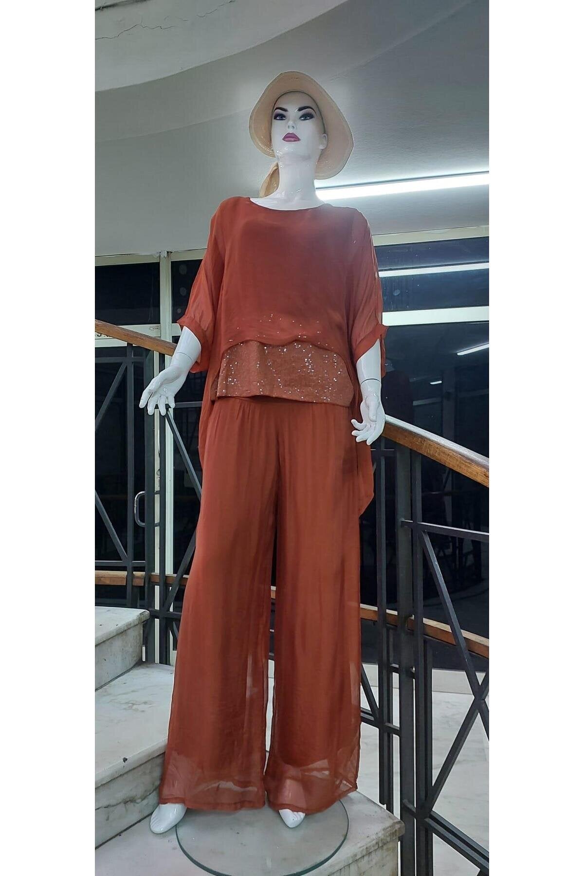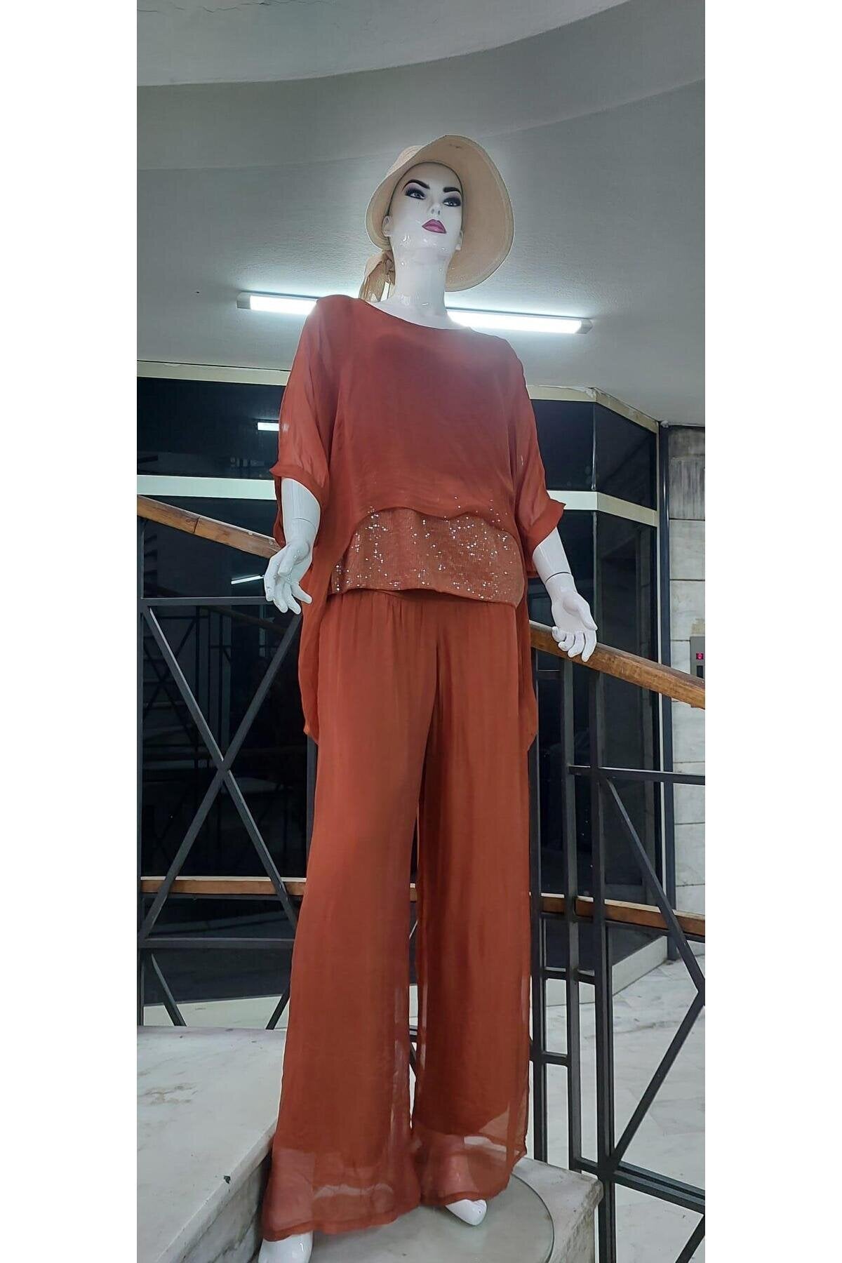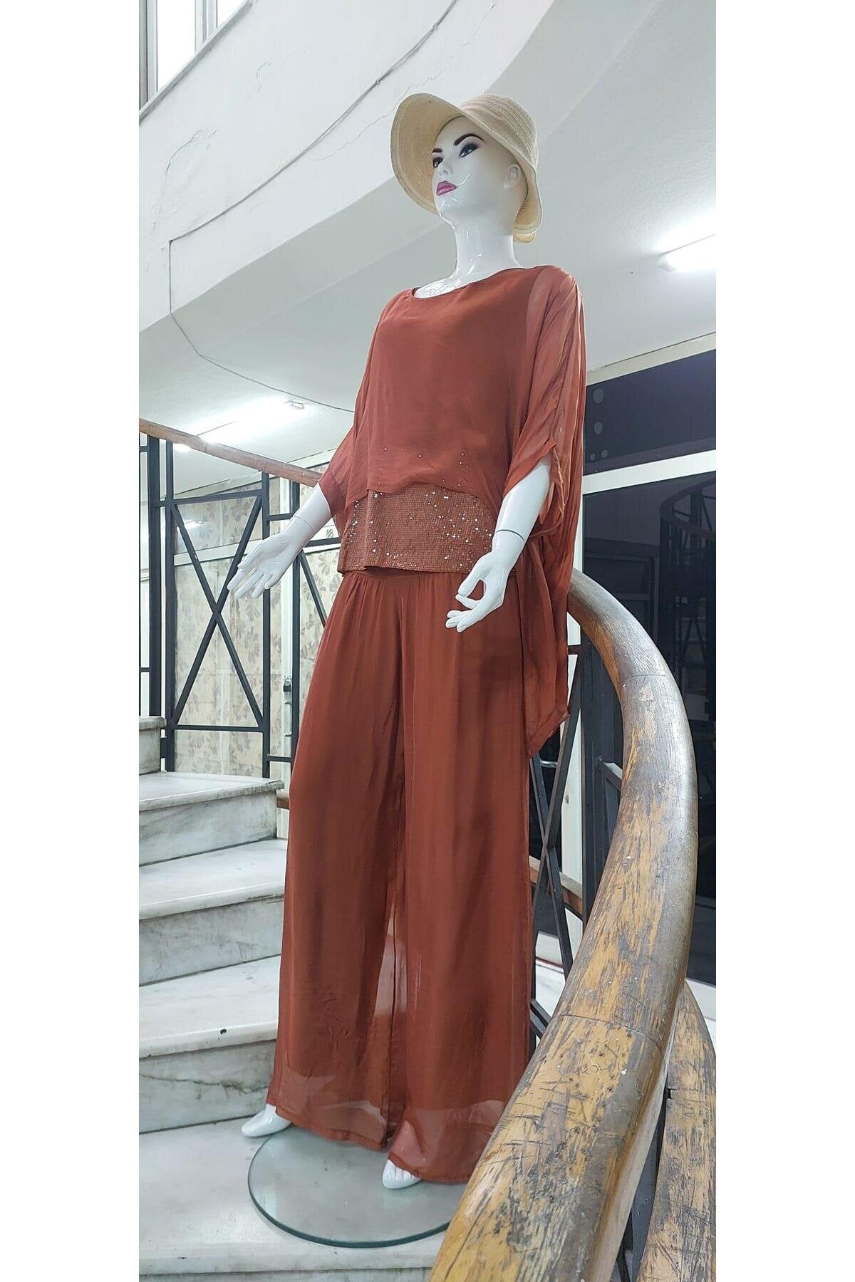 Italian Batwing Sequined Two-Piece Set - Cinnamon