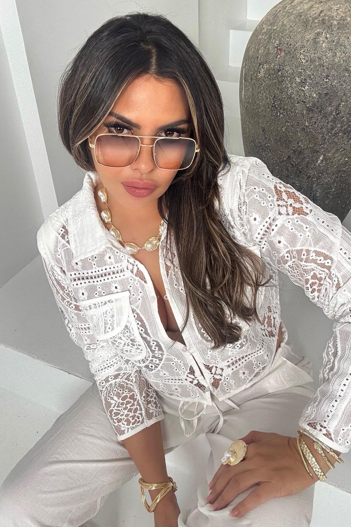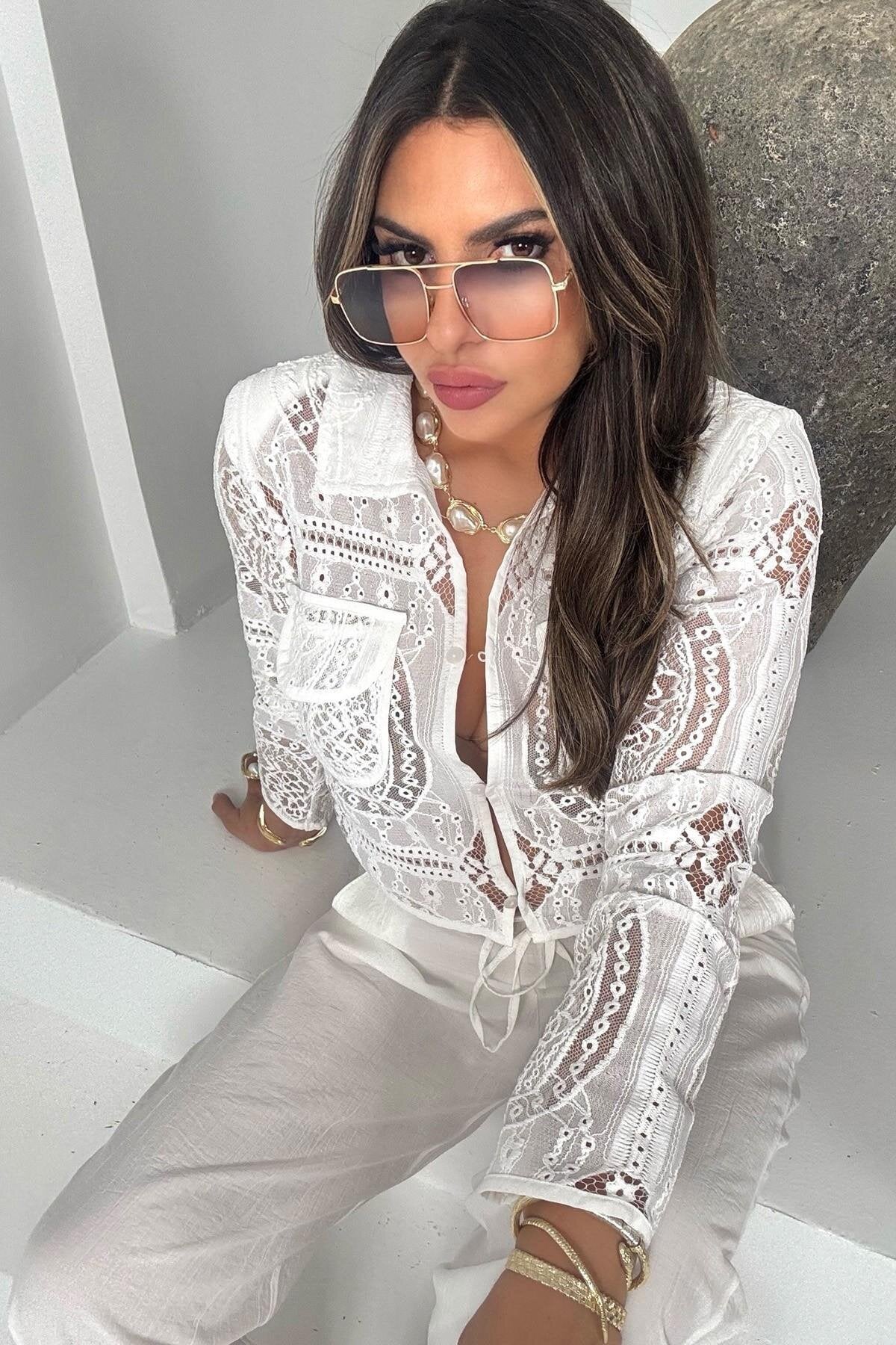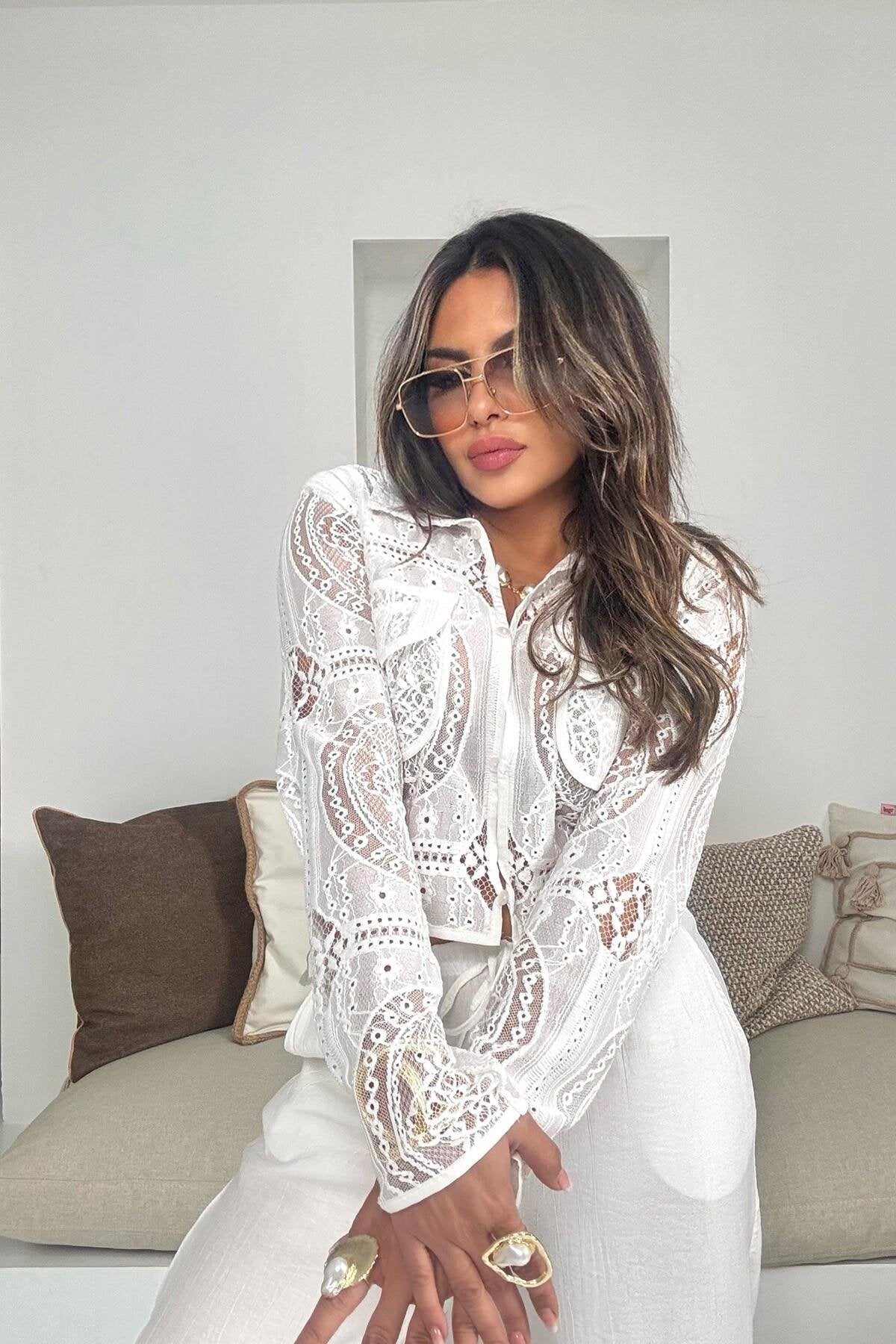 Crinkle Shirred Elastic Waist Pants - Ecru