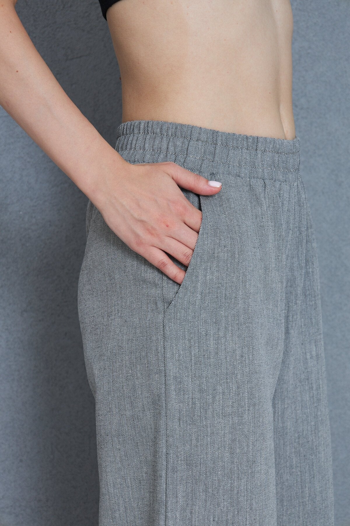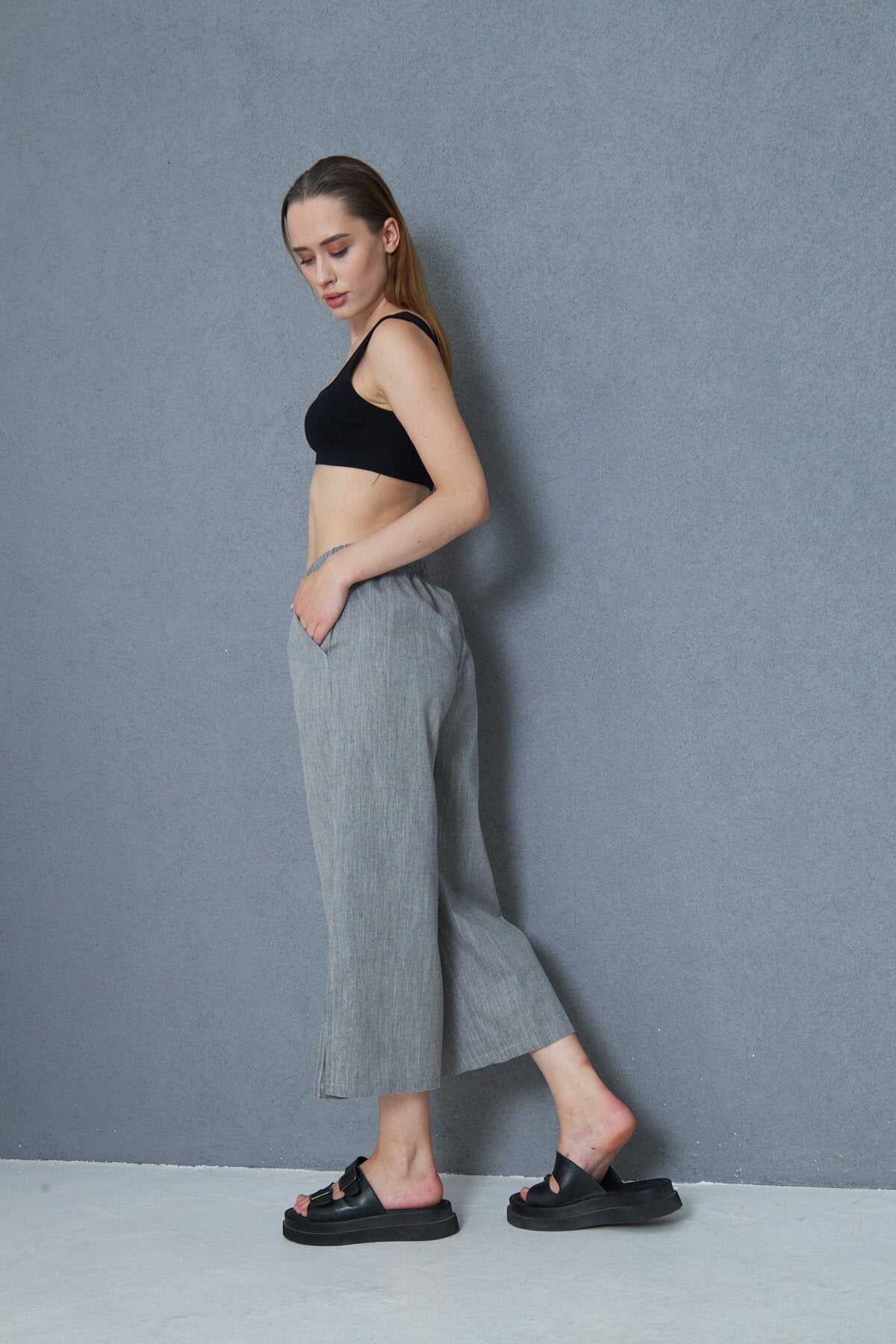 Relaxed Linen Capri Bermuda Pants - Black