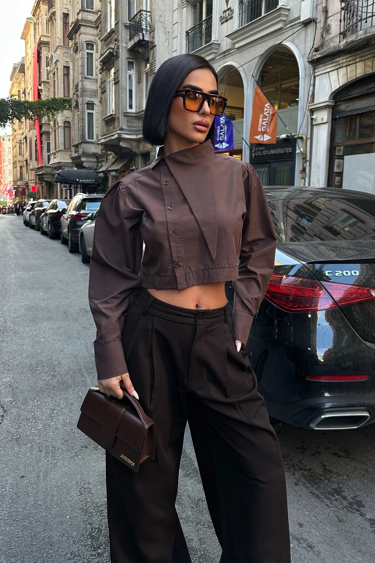 - Perfect for stylish urban adventures, weekend brunches, or coffee dates, pairing seamlessly with high-waisted jeans or tailored trousers for an elevated casual aesthetic.