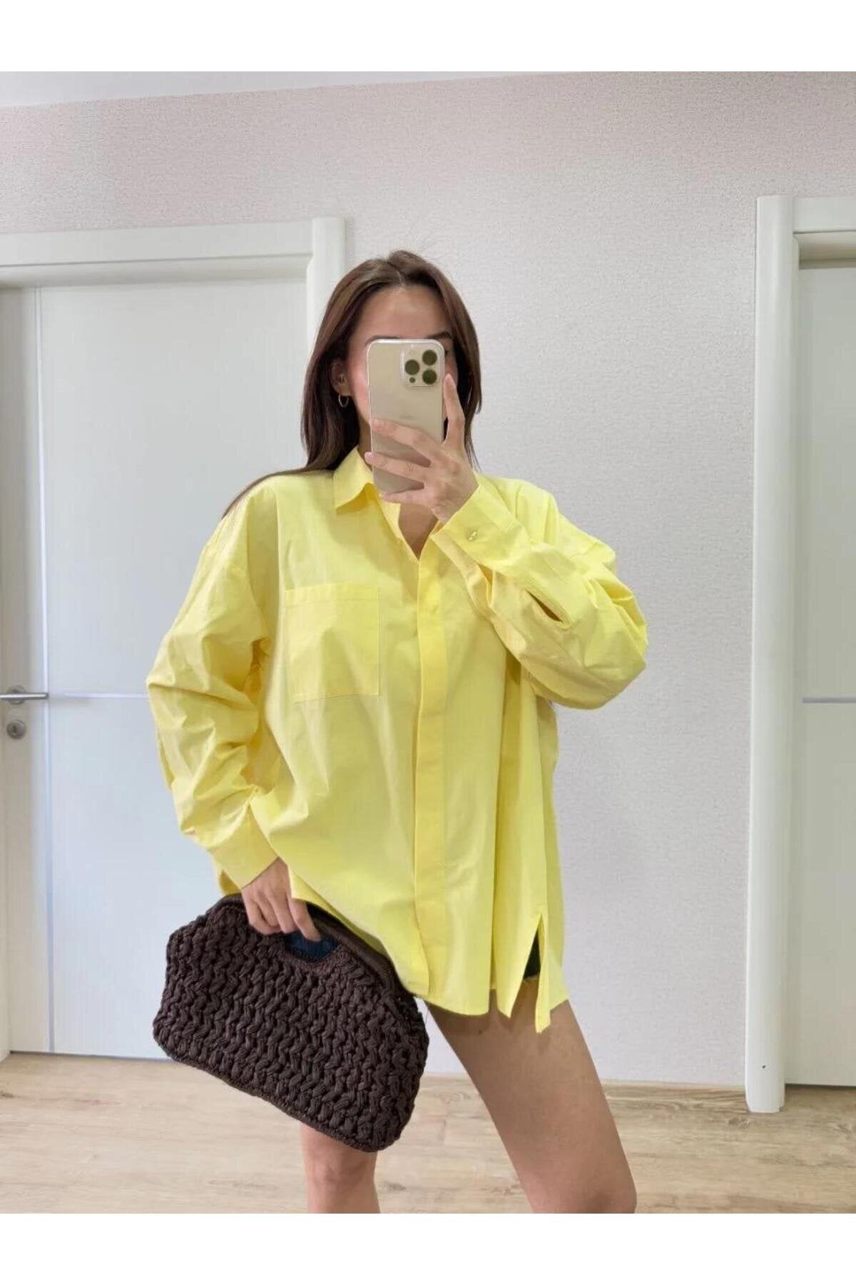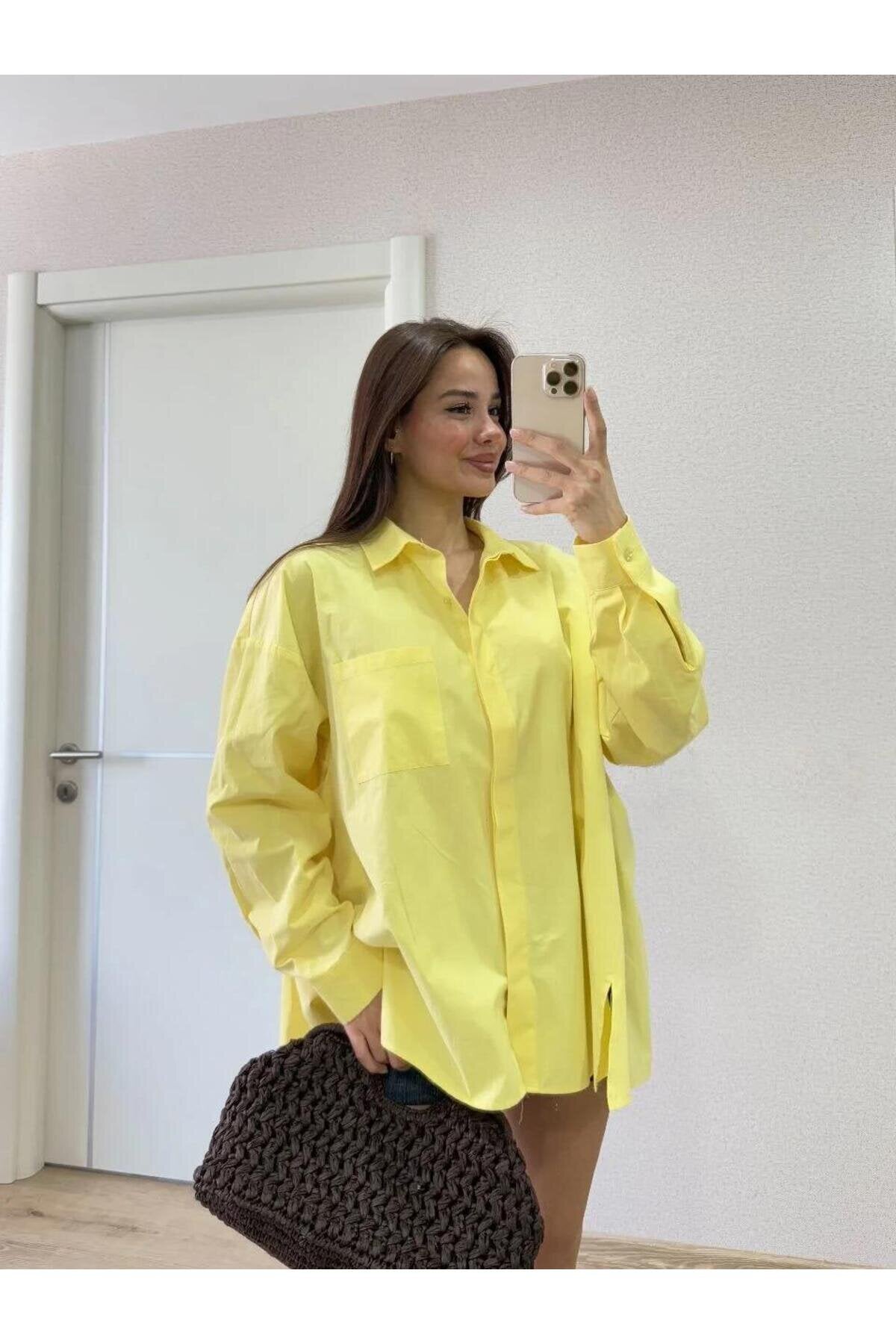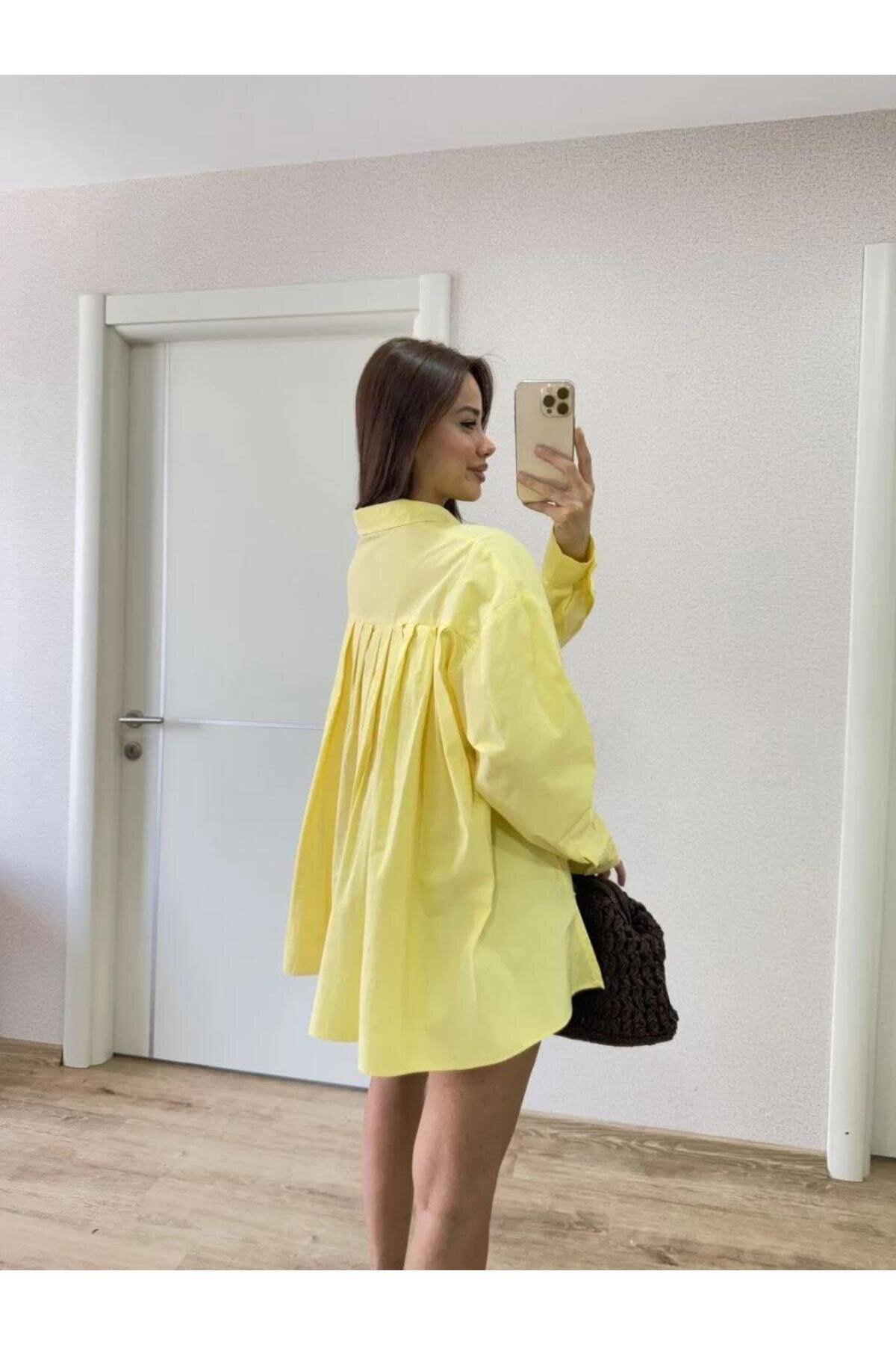 Poplin Collared Side Slit Back Dart Detail Shirt - Yellow