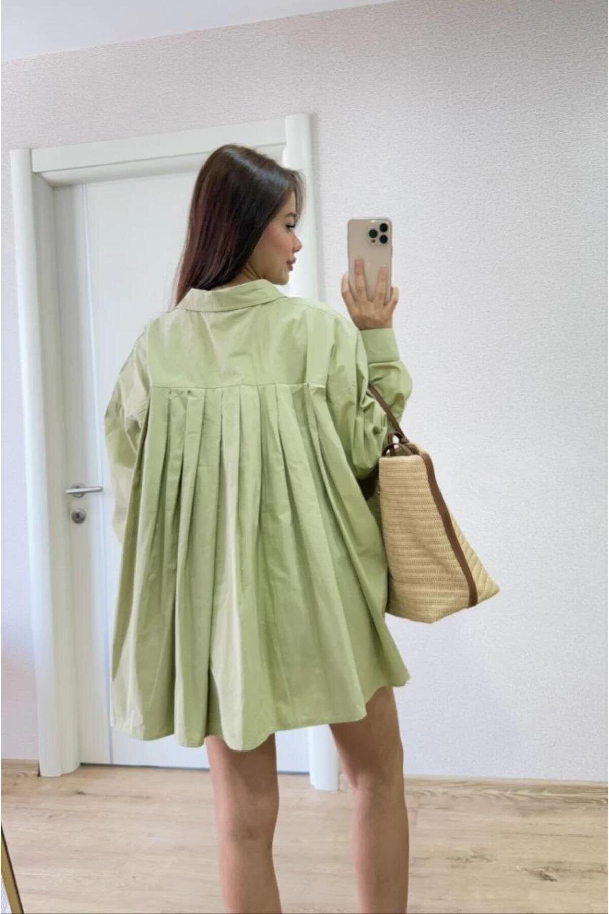 Poplin Collared Side-Slit Back-Dart Shirt - Green
