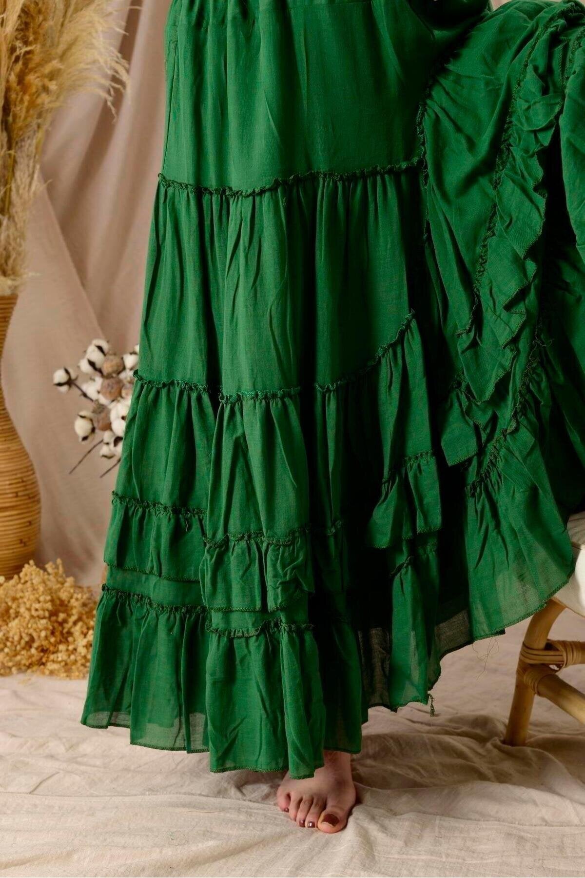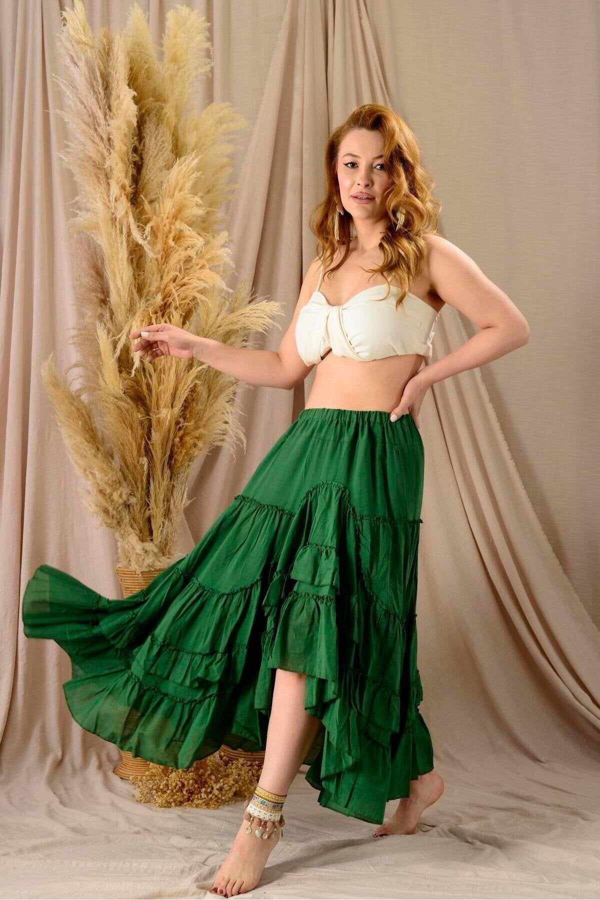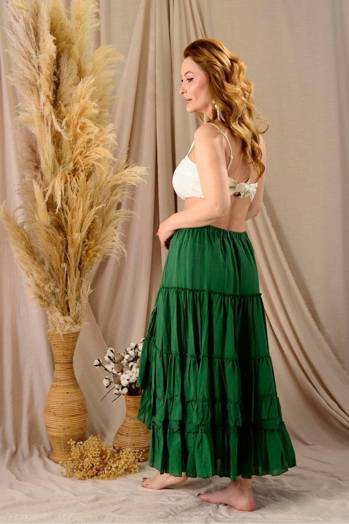 Long Authentic Raw Linen Lined Skirt - Emerald Green