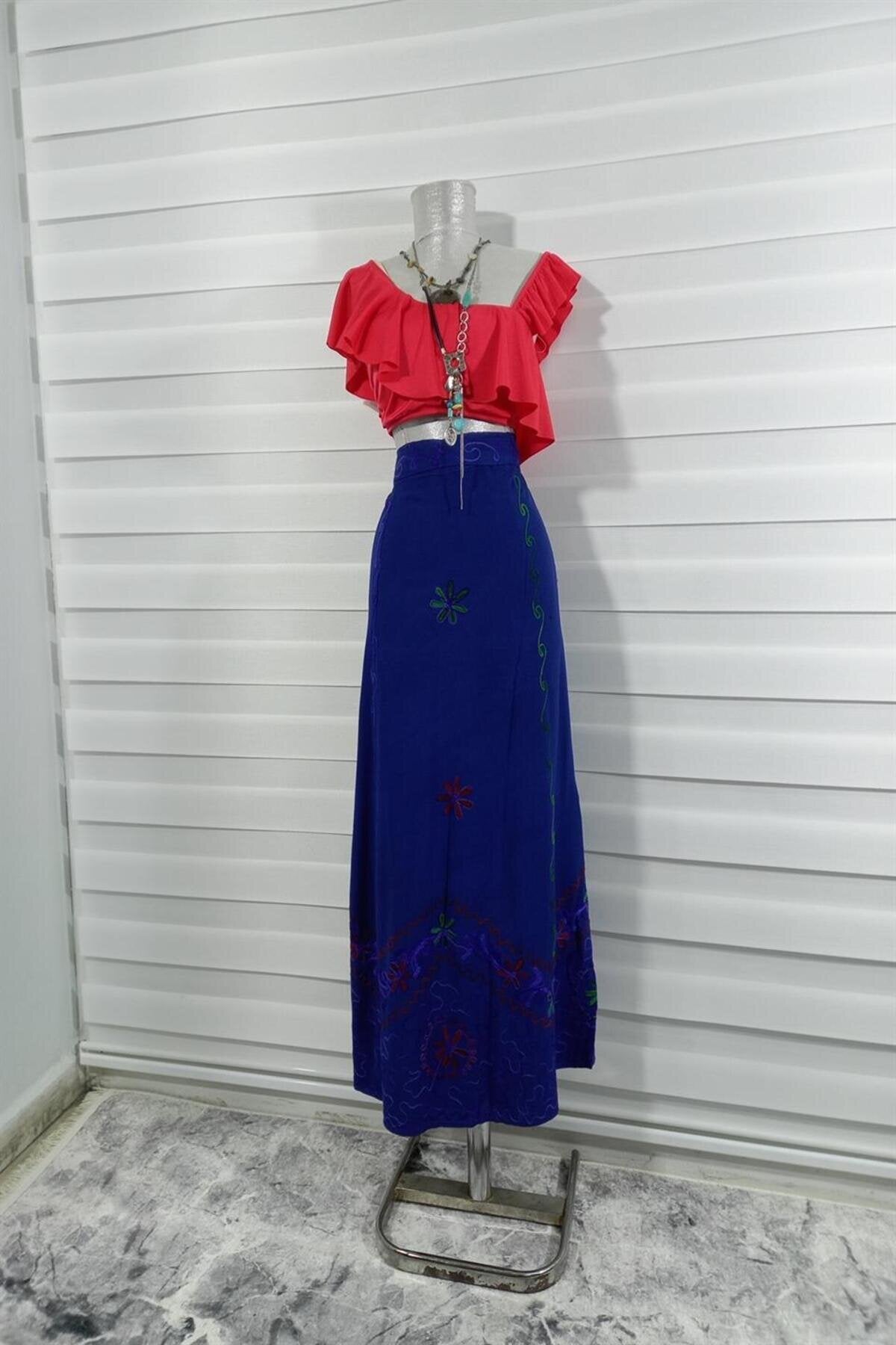Long Wrap Floral Indian Embroidered Skirt - Blue